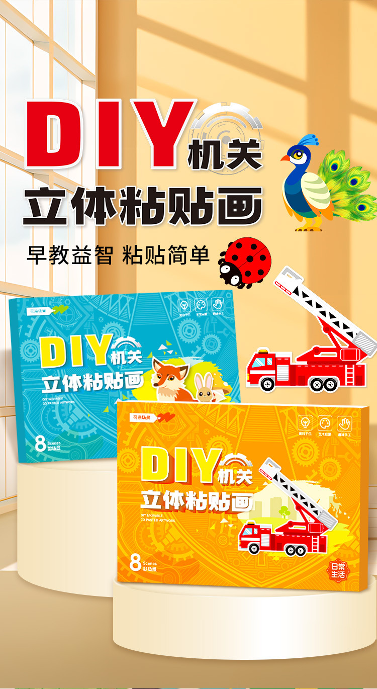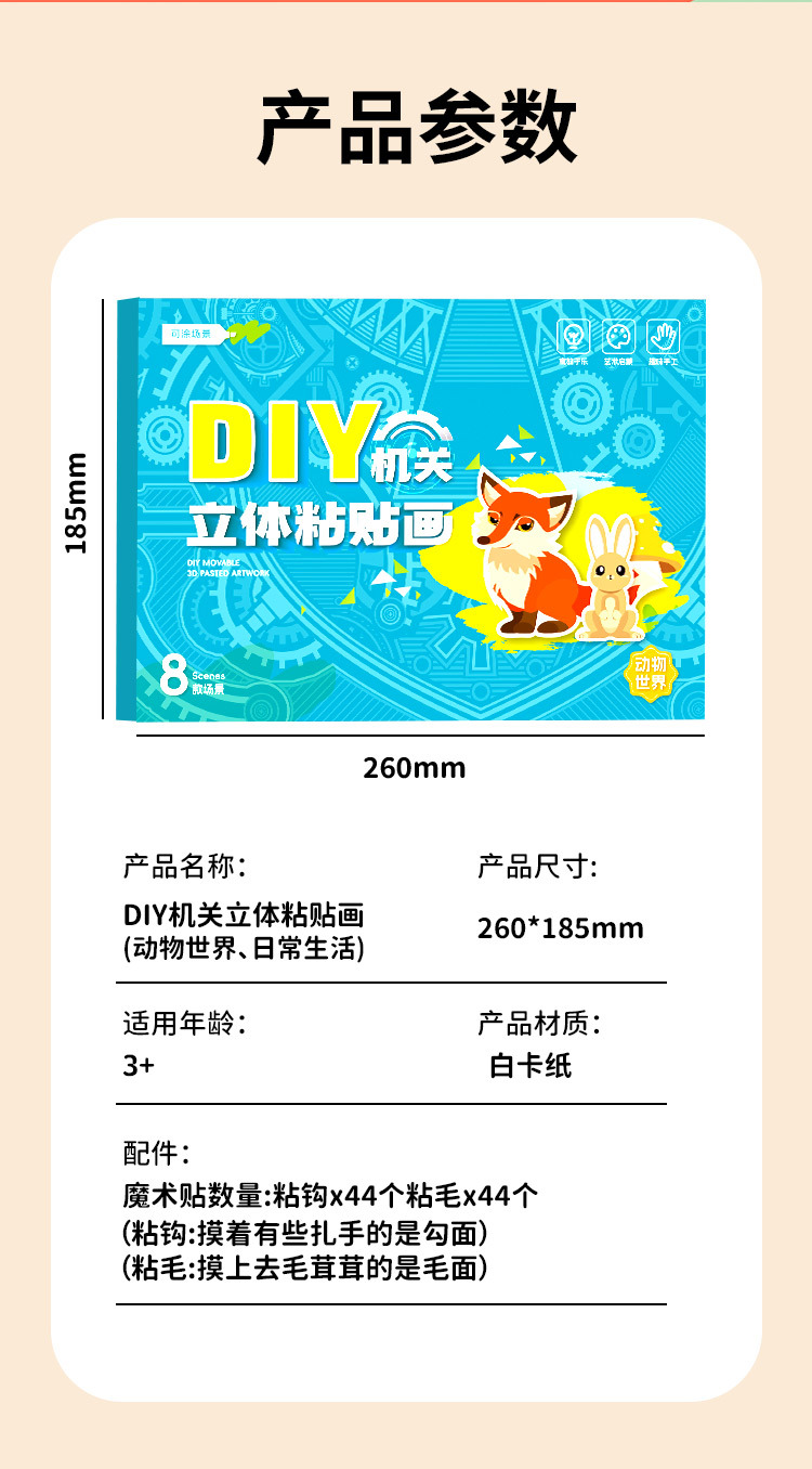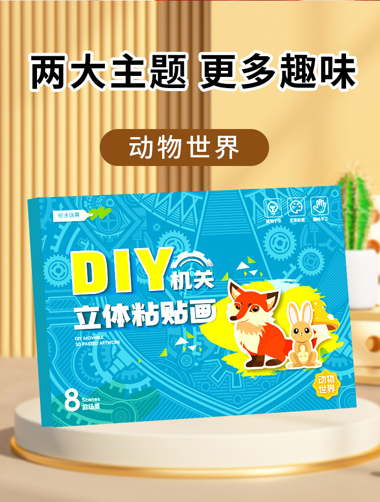 儿童手工DIY机关立体粘贴画幼儿园材料包画册趣味益智玩具批发