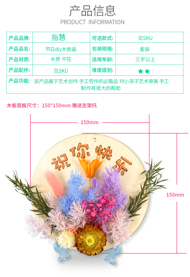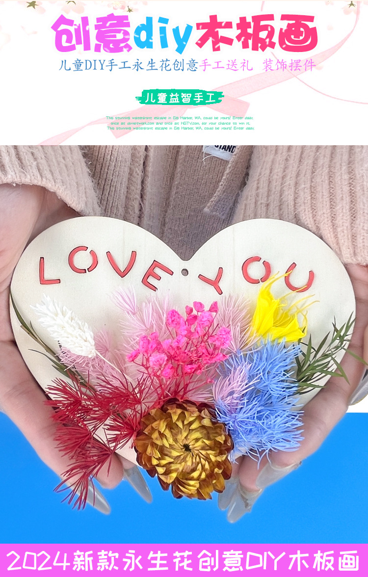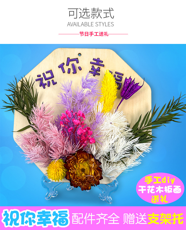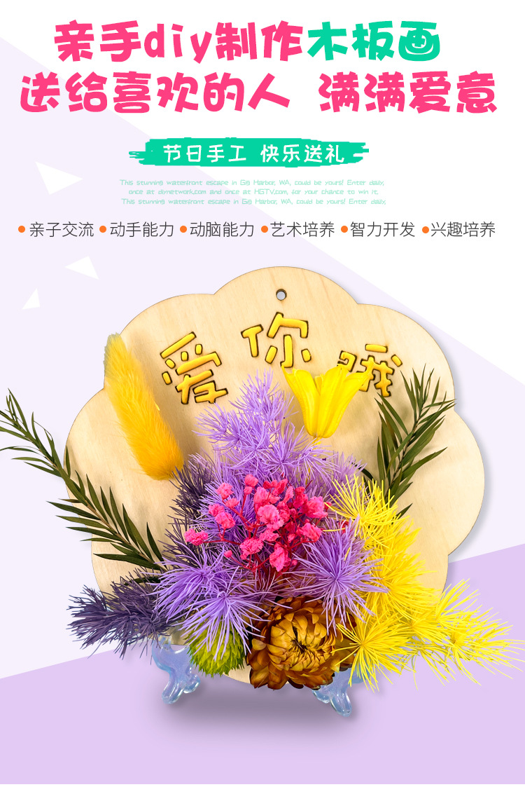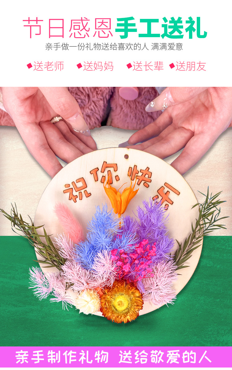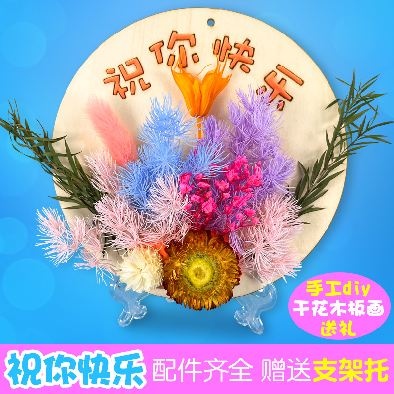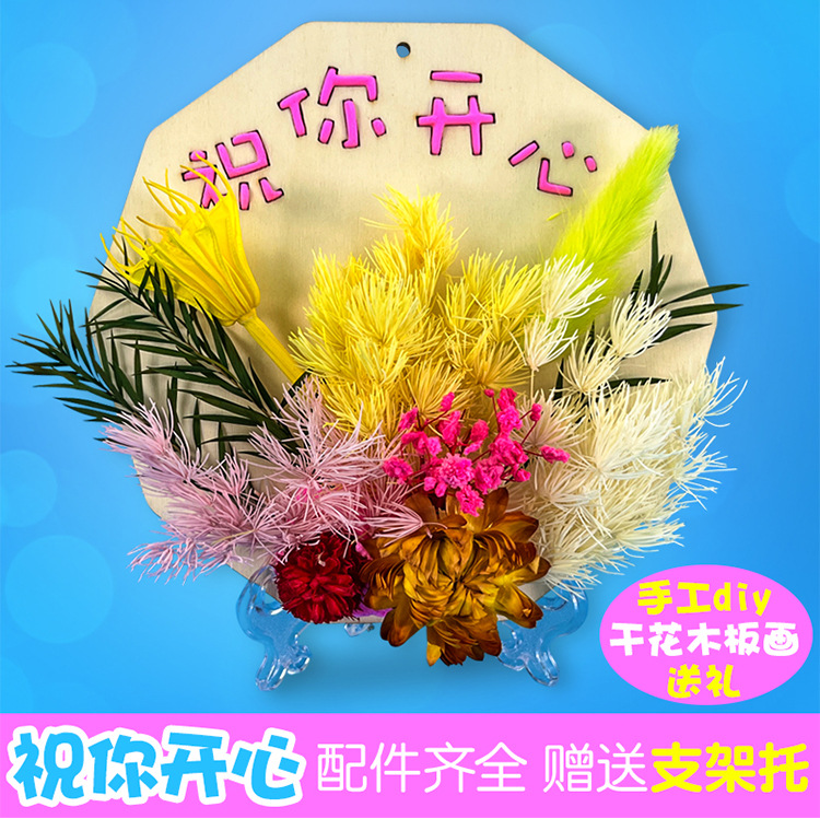 母亲节儿童手工diy制作花束亲子材料包干花摆件永生花木板画礼物