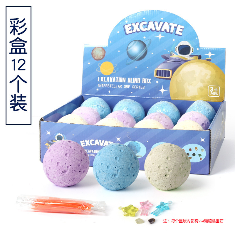 考古挖掘宝石玩具跨境星球益智儿童挖宝手工星球石膏diy盲盒批发