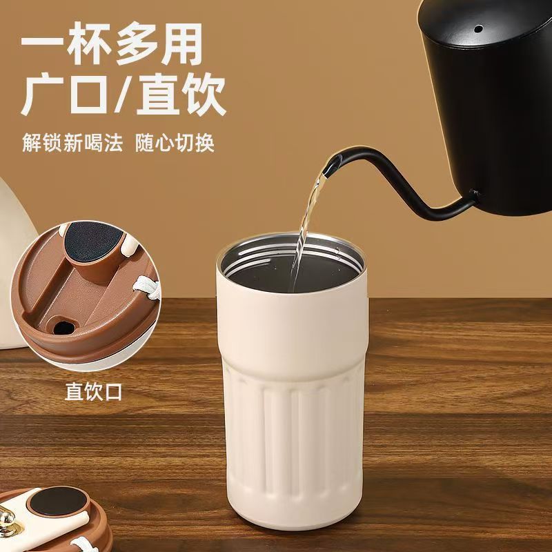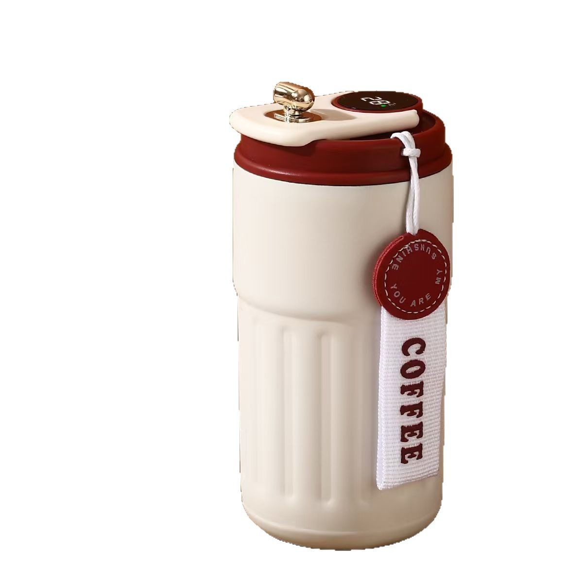 简约智能显温咖啡杯316不锈钢真空保温杯提绳便携测温数显水杯