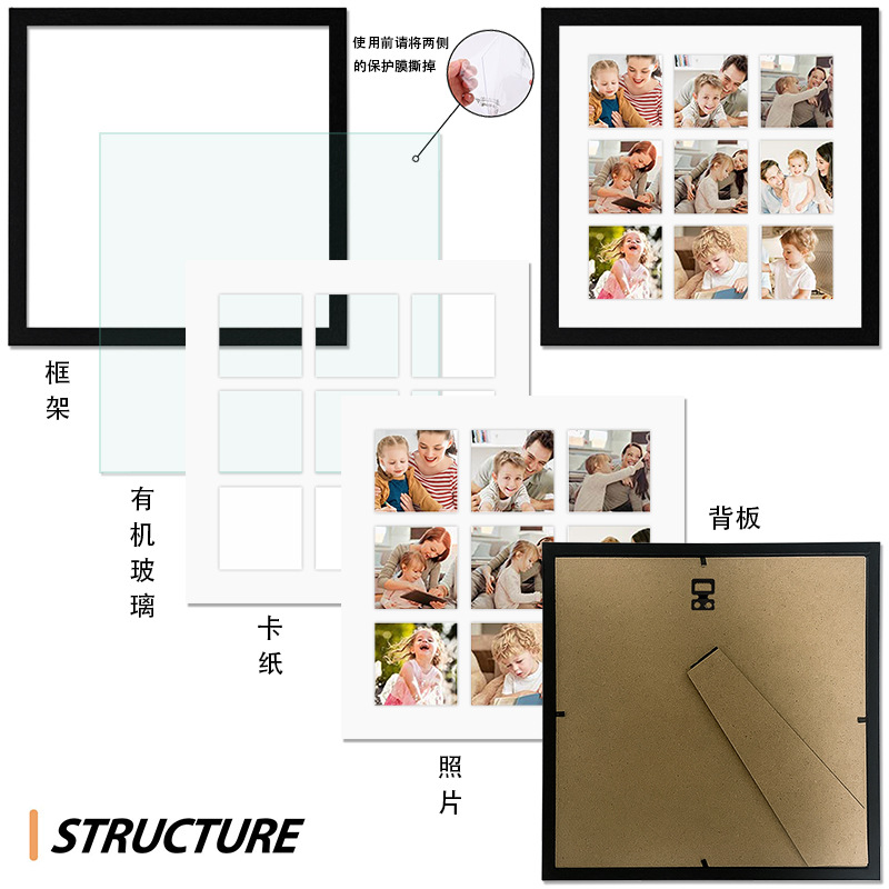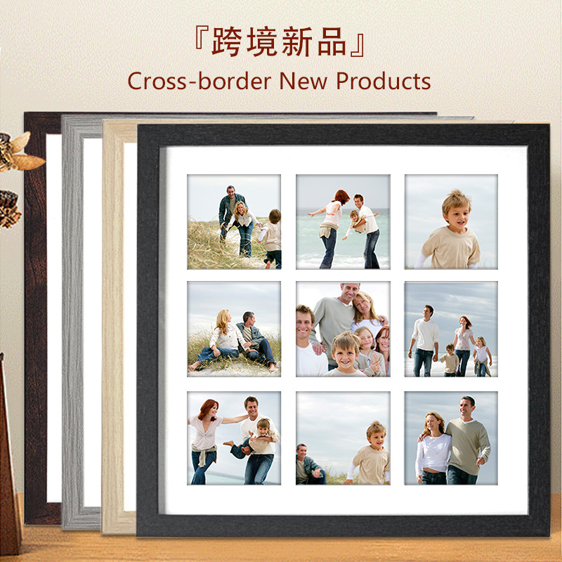 厂家新款跨境挂墙摆台照片墙手工多格画框相框拍立得木质相框批发