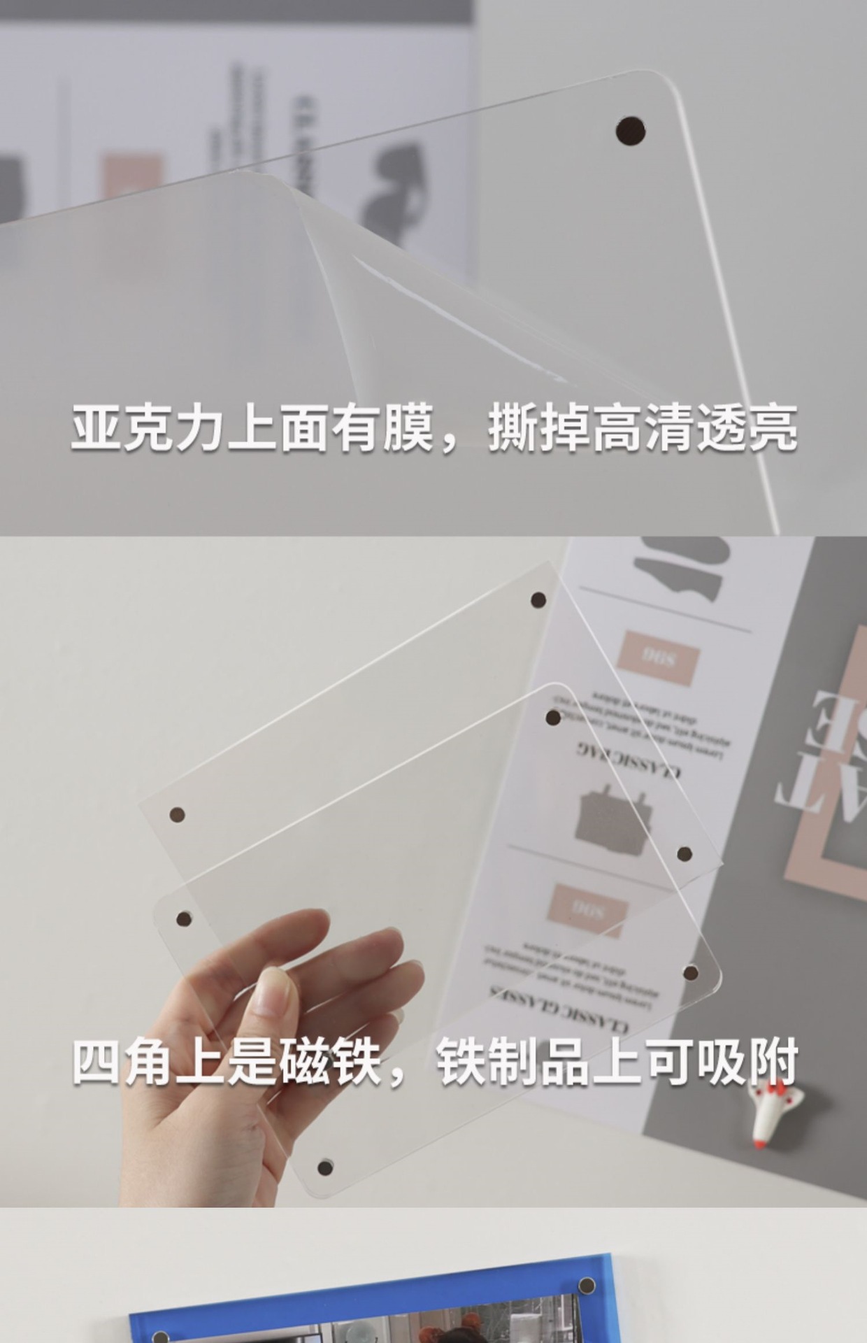 亚克力相框拍立得透明磁吸冰箱贴照片墙情侣相片小卡创意展示框架