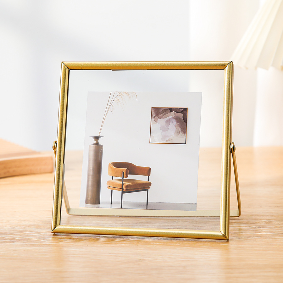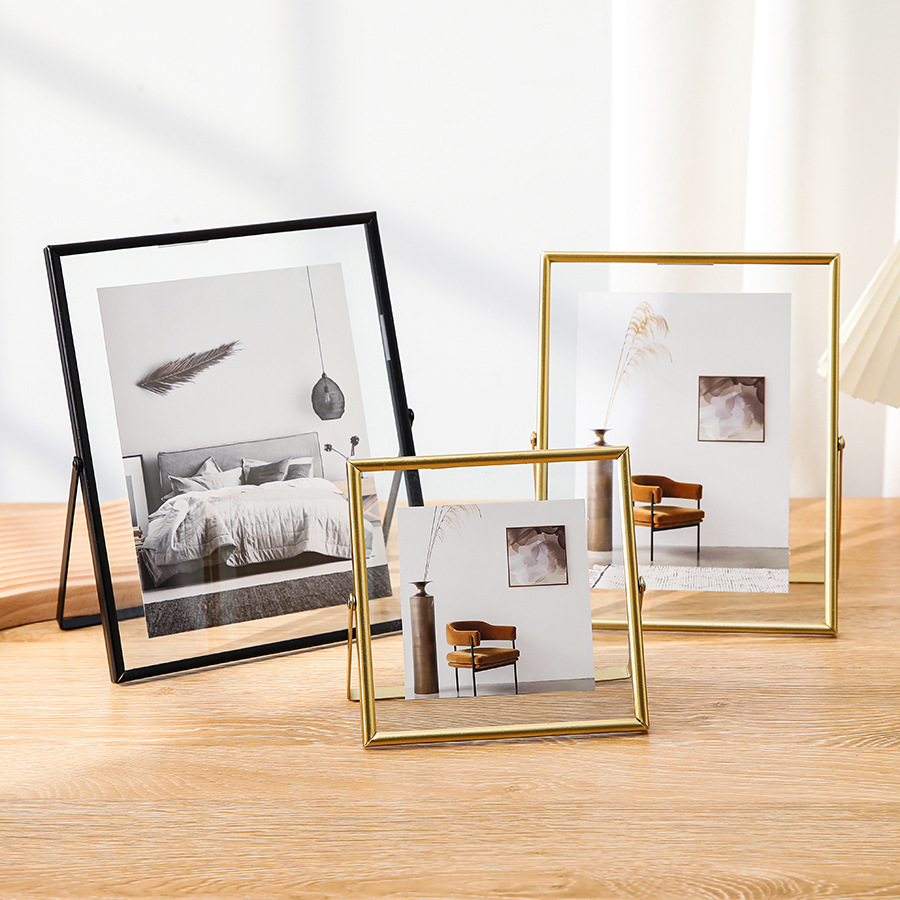 跨境金属玻璃相框拍立得照片摆台6寸78寸书法字画框干花桌面装饰
