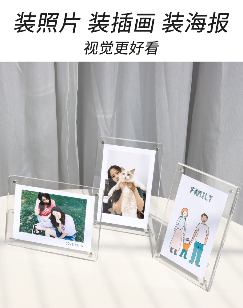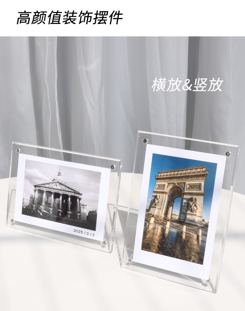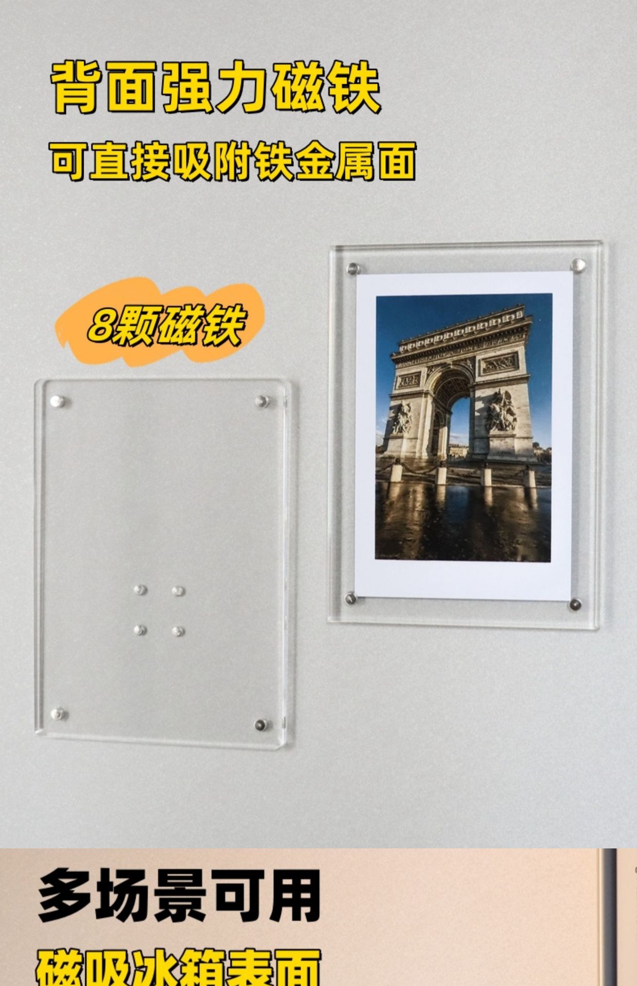 亚克力拍立得照片磁吸相框强磁透明小卡展示框架67寸横竖照片摆台