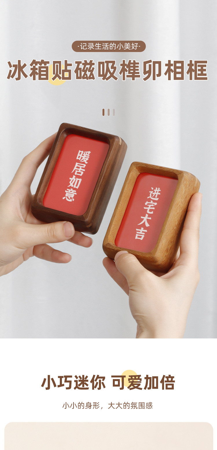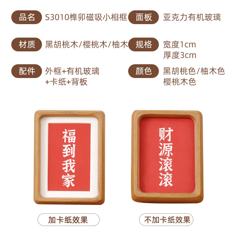 黑胡桃拍立得磁吸榫卯相框摆台3寸4寸5寸冰箱贴结婚登记证件画框
