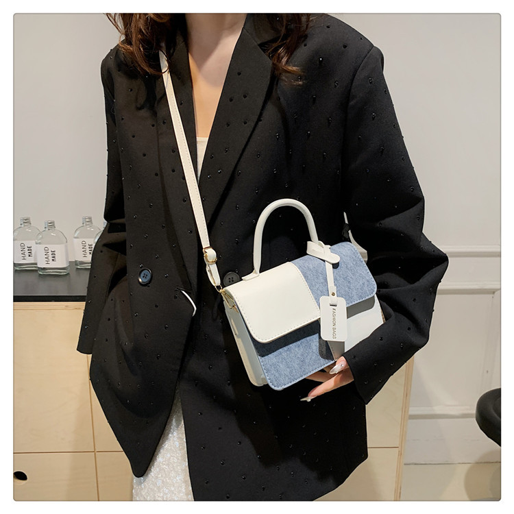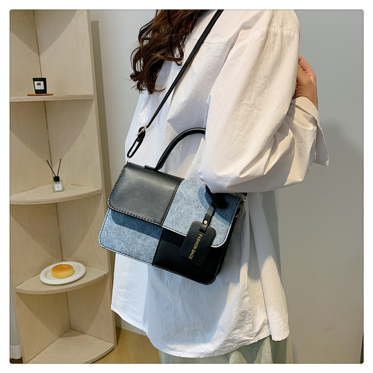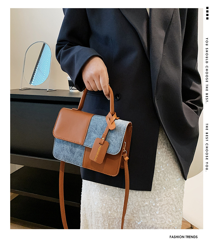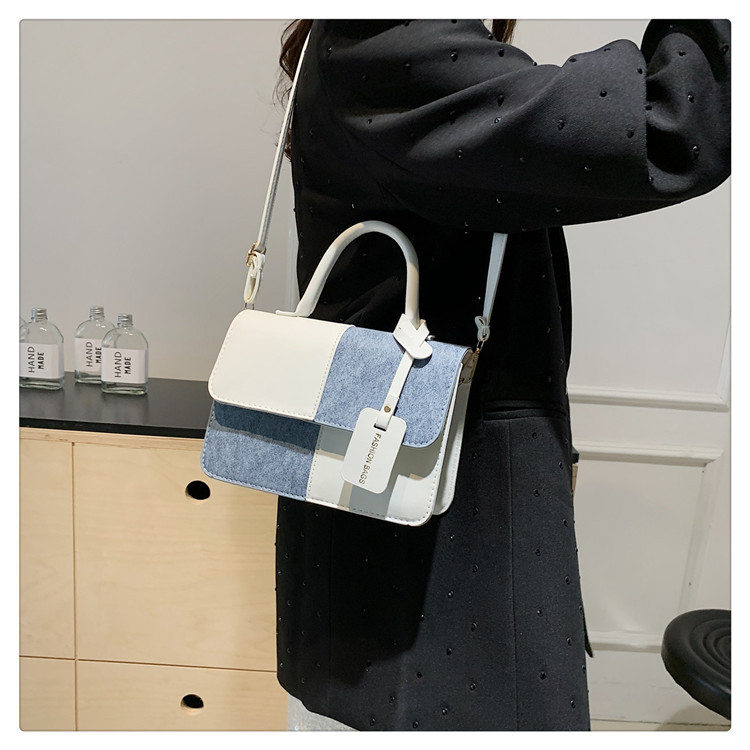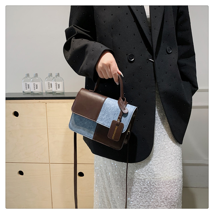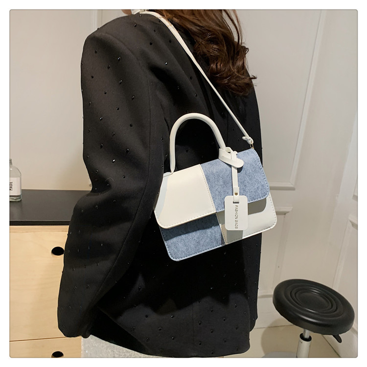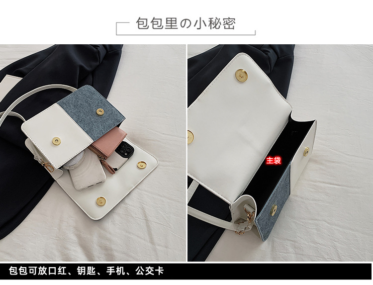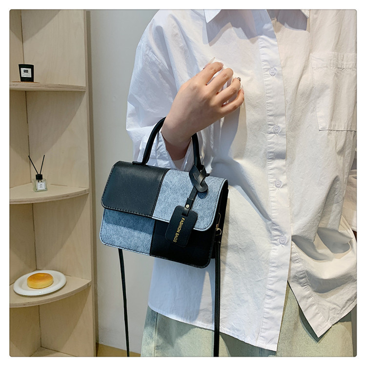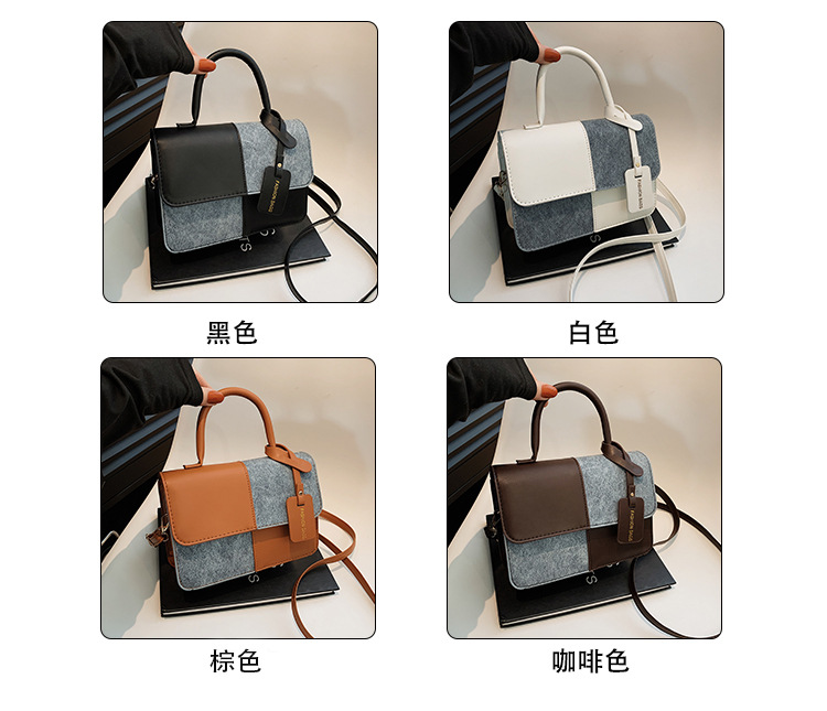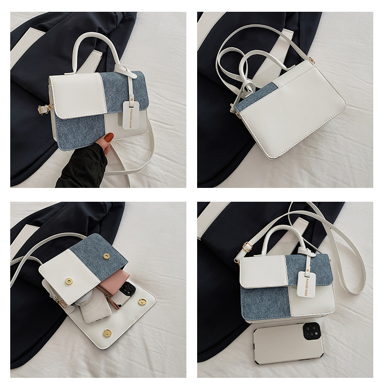 小众设计拼接撞色小方包包女2023新款质感简约斜挎包时尚单肩包包