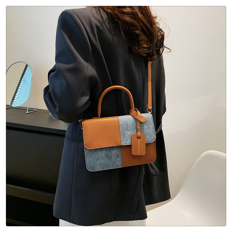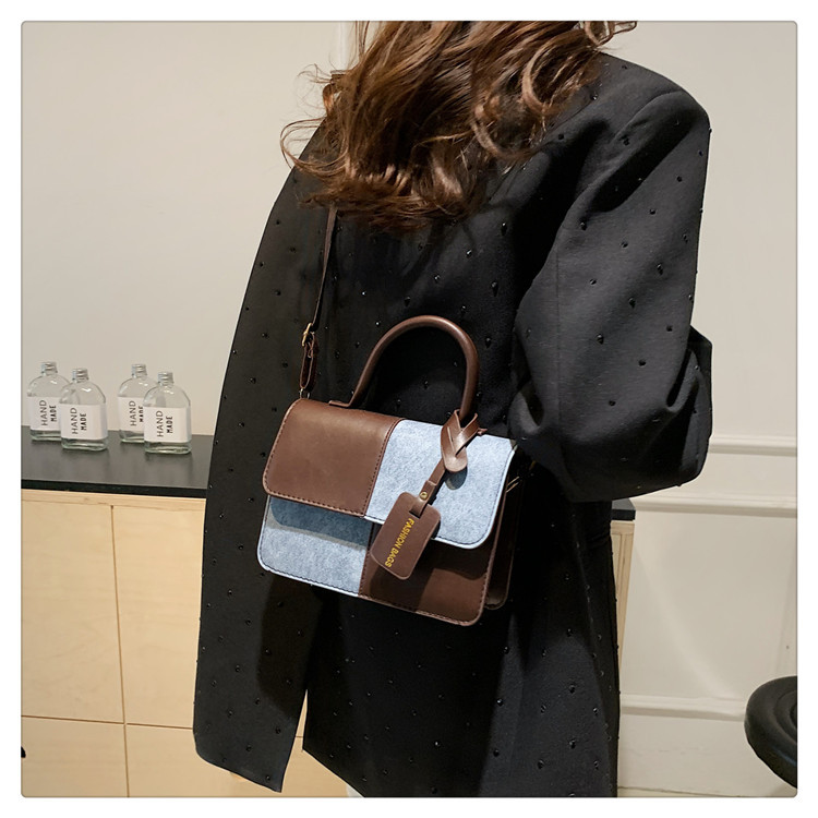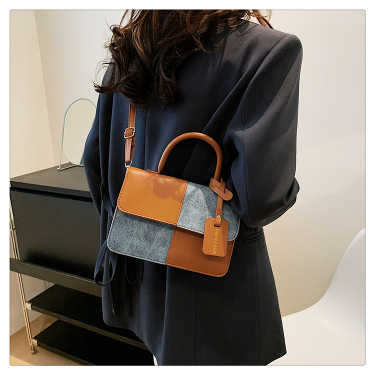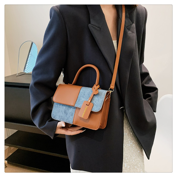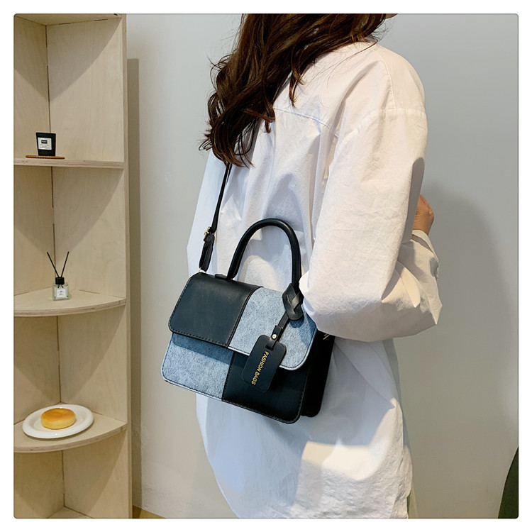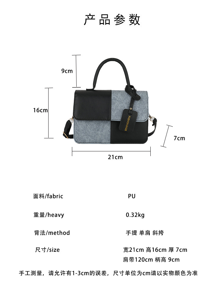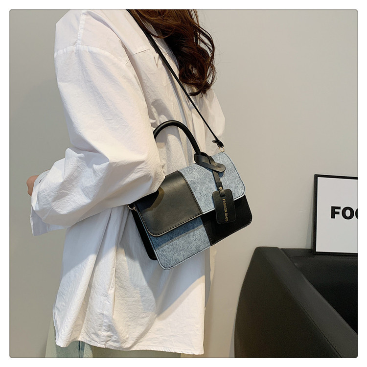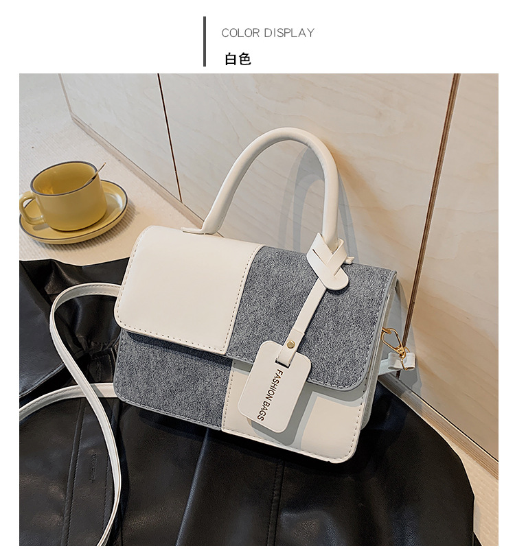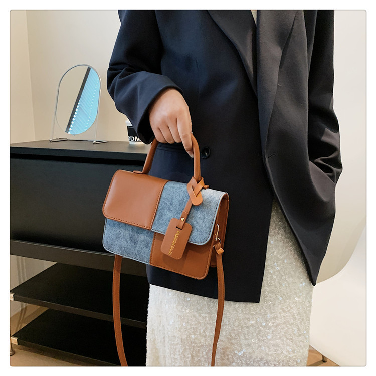 小众设计拼接撞色小方包包女2023新款质感简约斜挎包时尚单肩包包