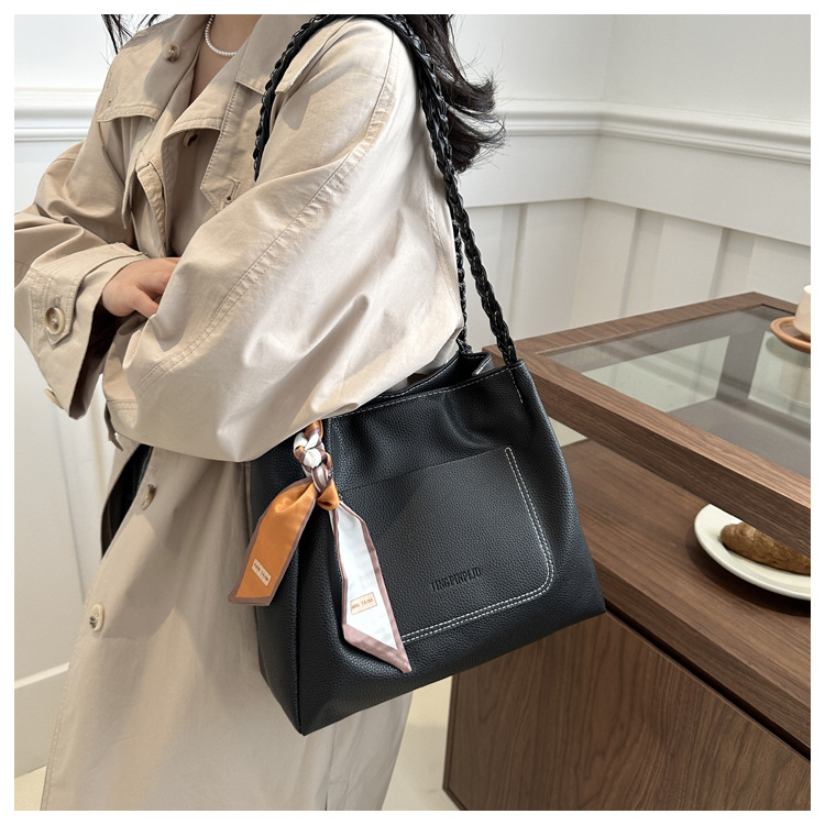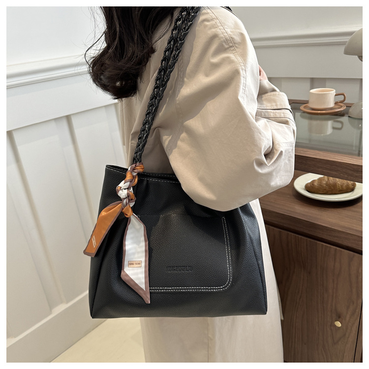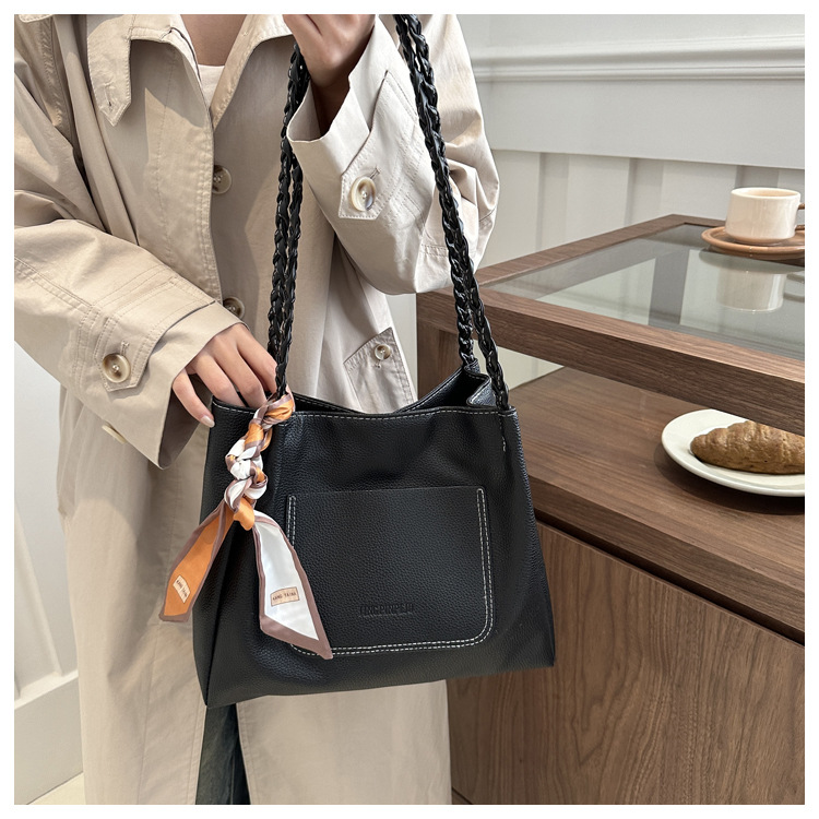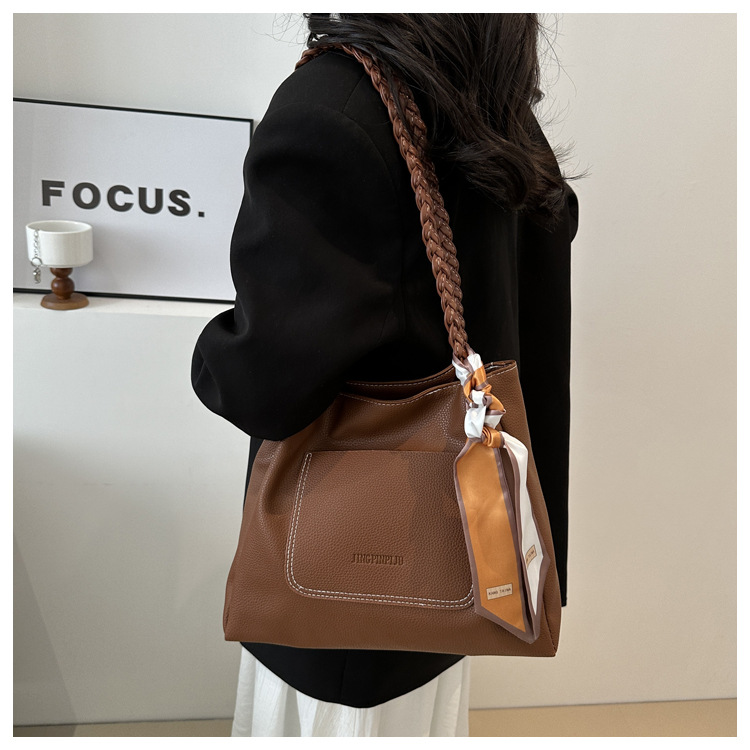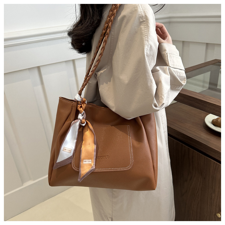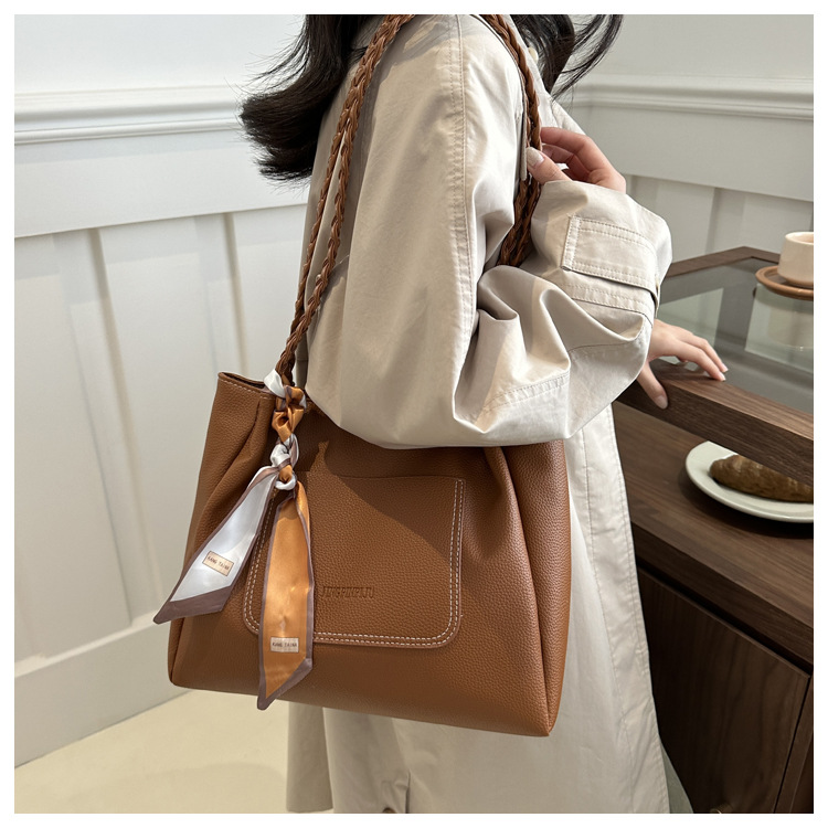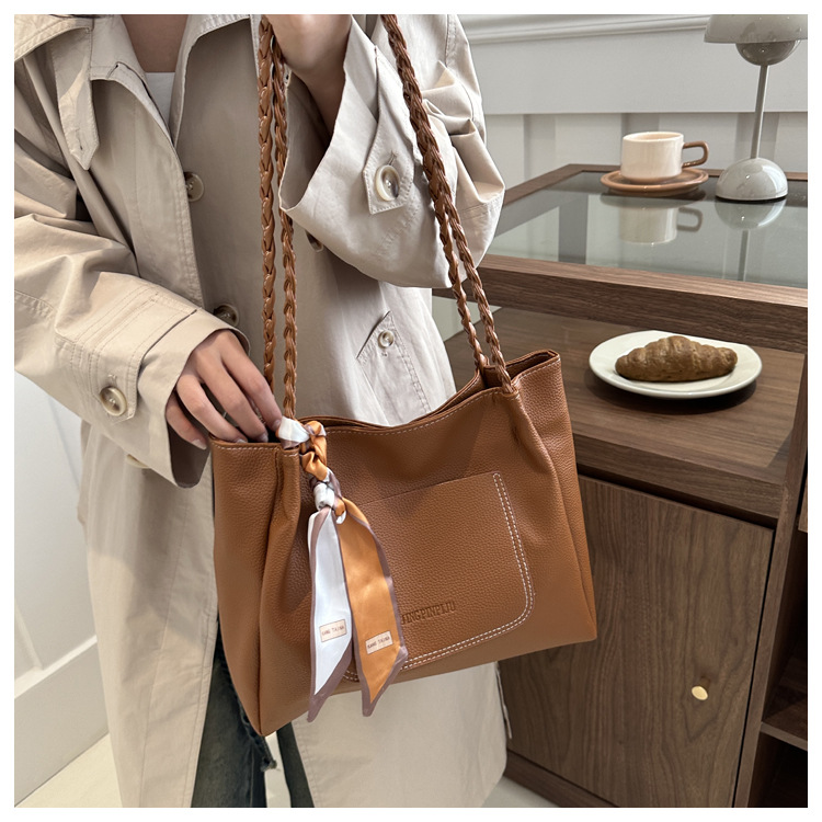 丝巾手提包2024早春新款百搭通勤质感复古单肩腋下包韩版托特包潮