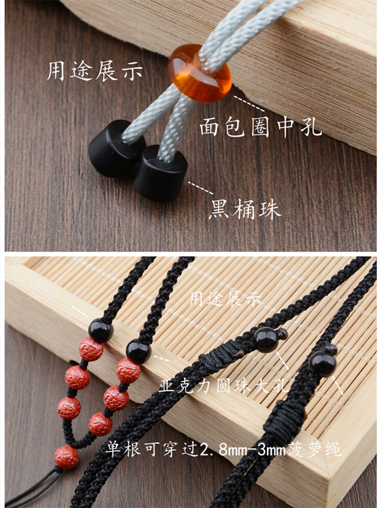 手绳项链绳配件黑珠亚克力diy小饰品吊坠绳尾珠隔珠面包圈调节扣