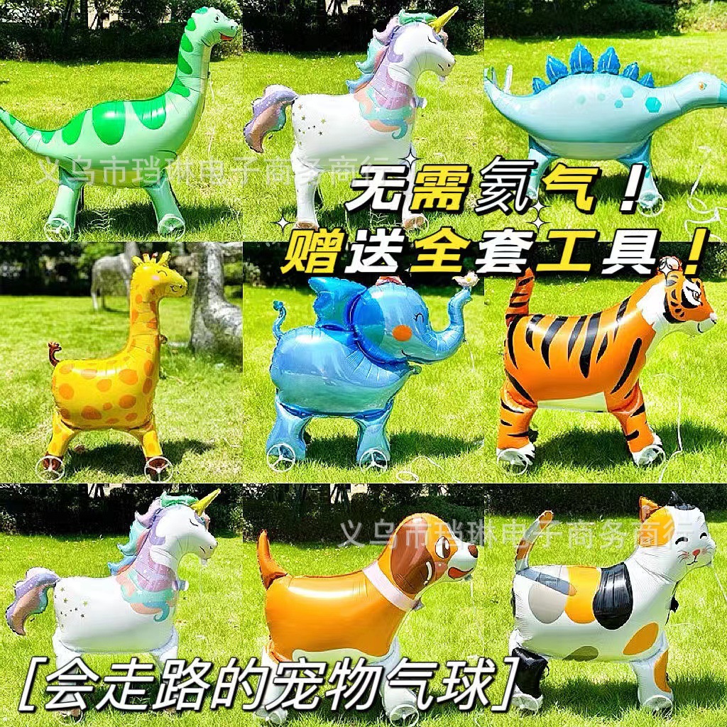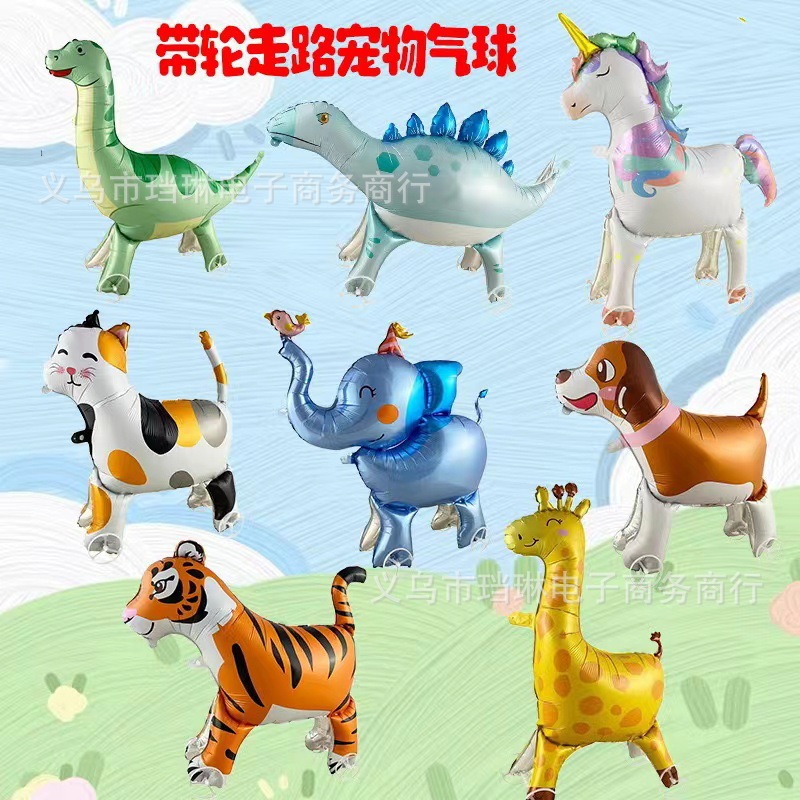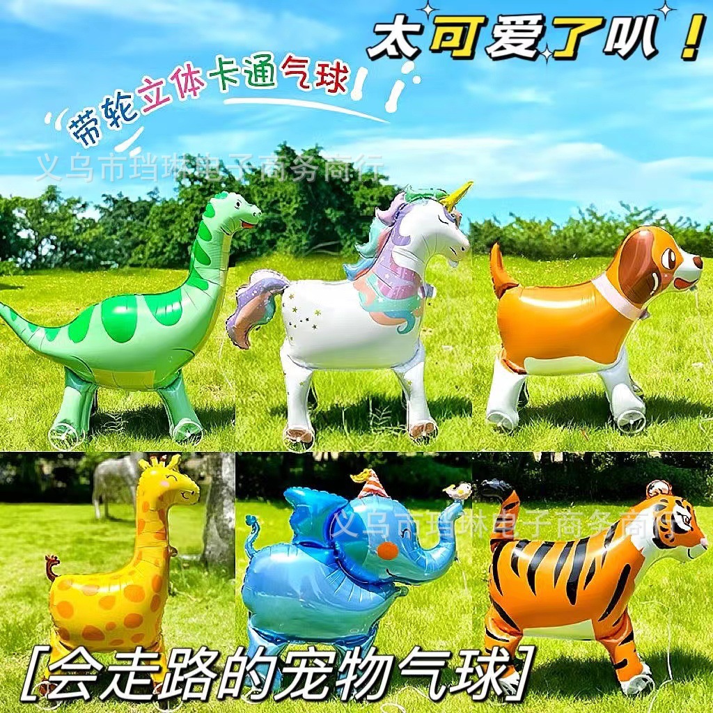 儿童新款卡通走路带轮动物铝膜气球幼儿园商场活动道具摆摊礼品