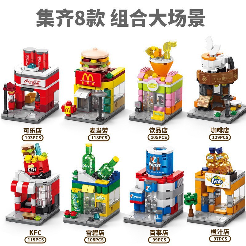 儿童小颗粒百变街景拼装积木兼容乐高拼插城市建筑模型玩具批发