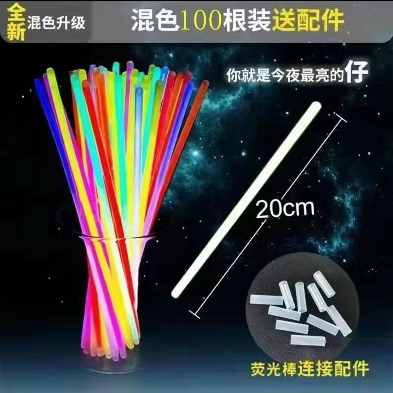 七彩荧光棒50支\筒银光棒发光荧光棒爆款网红儿童发光玩具摆地摊