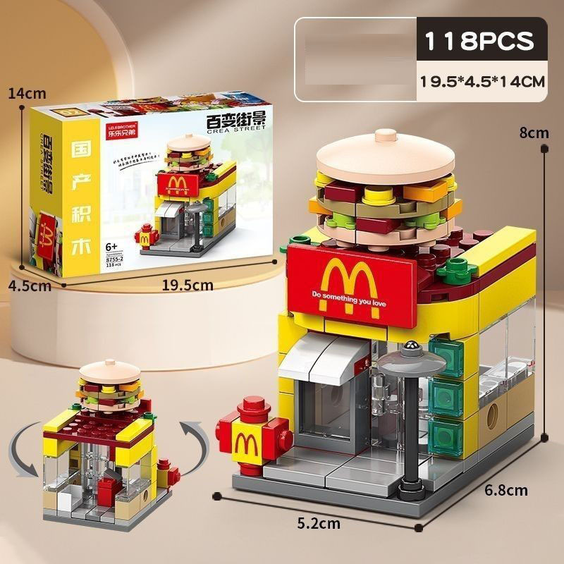 兼容乐高快餐饮品街室内场景迷你城市街景积木益智拼装地摊玩具