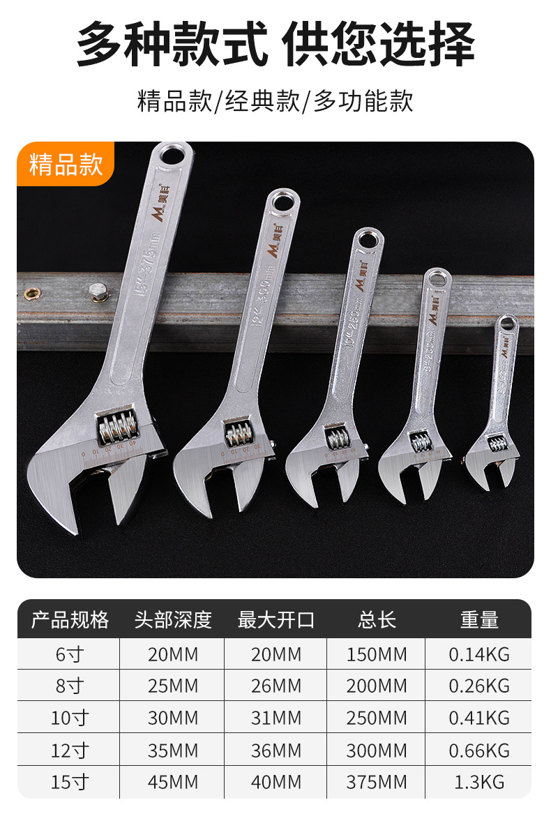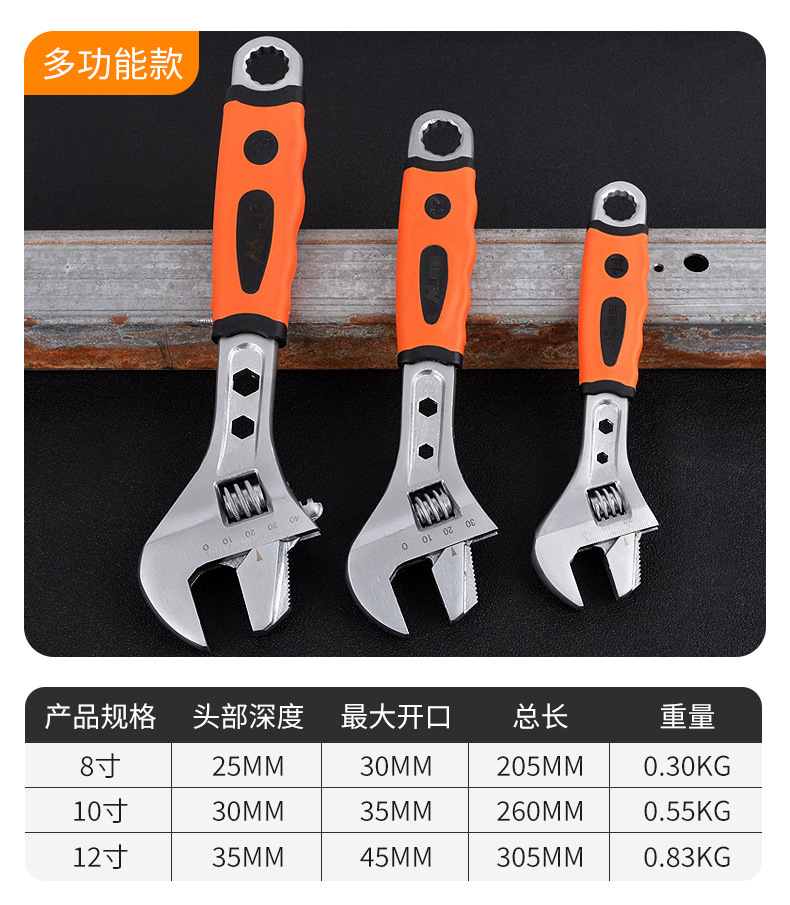 活动扳手开口8寸活扳手万能活口板手12寸开口钣手套装全套活扳手