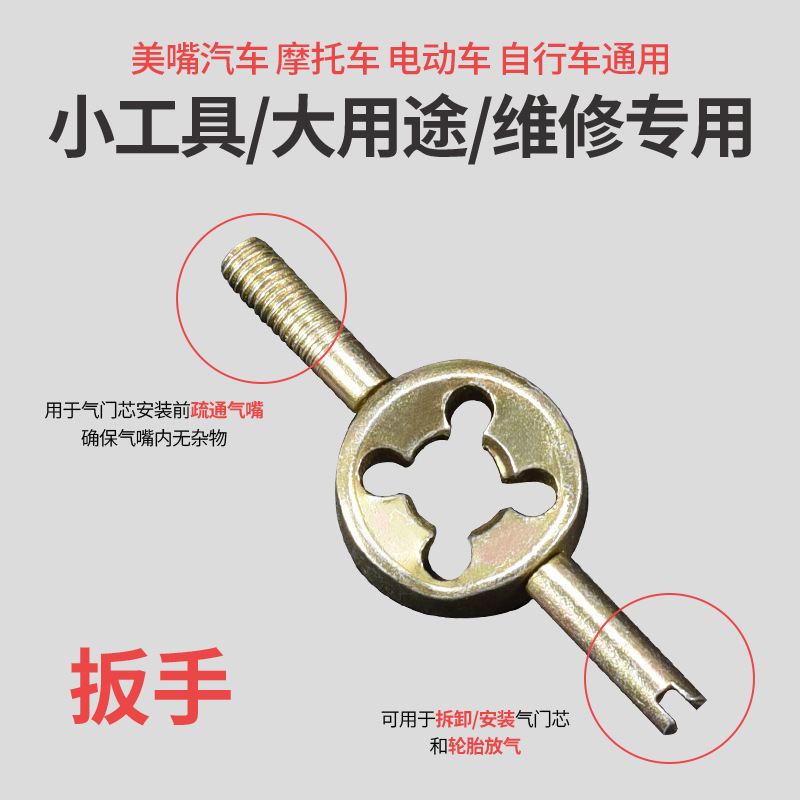 气门扳手自行车气门芯钥匙美式气嘴扳手内胎扳手调节放气工具