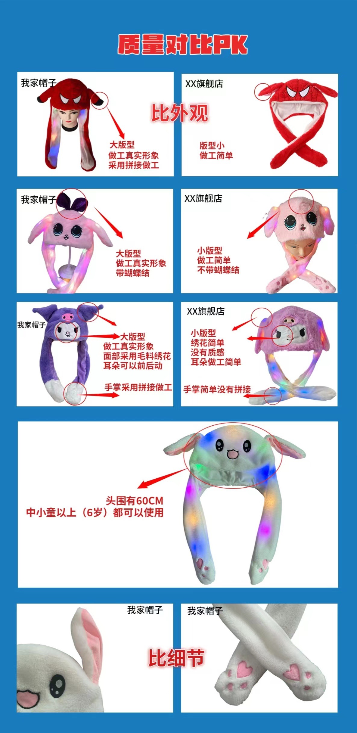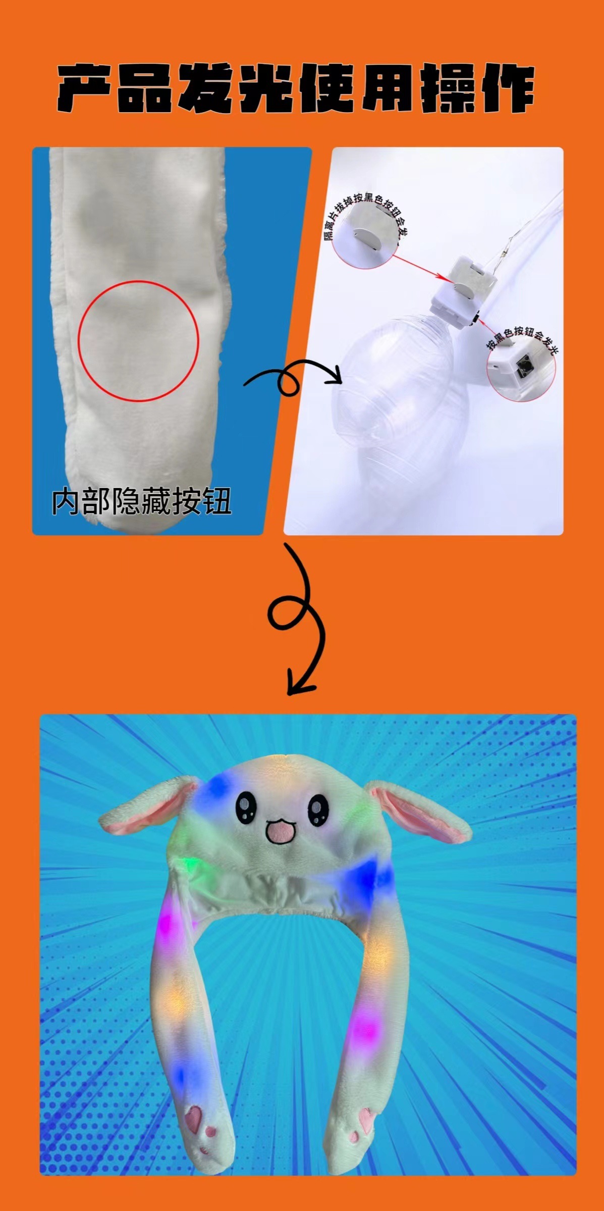 2024抖音跨境爆款一捏耳朵会动的气囊帽多种动物发光玩具拍摄道具