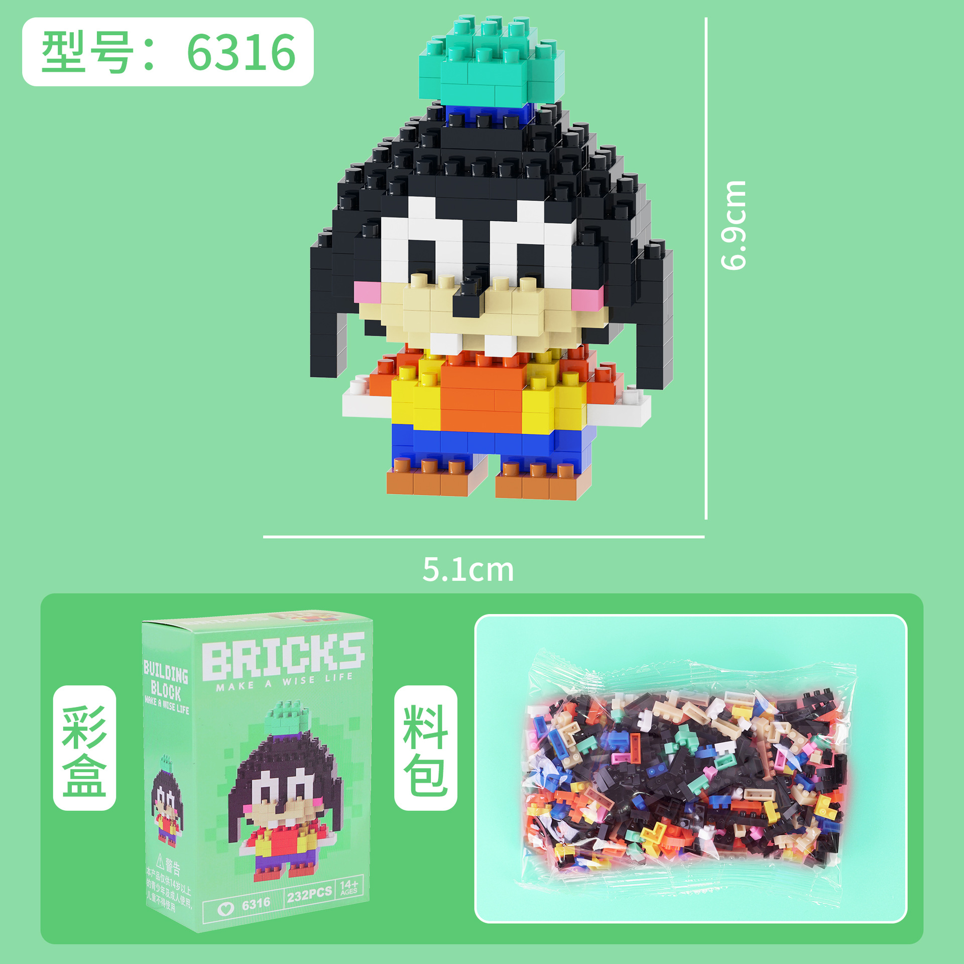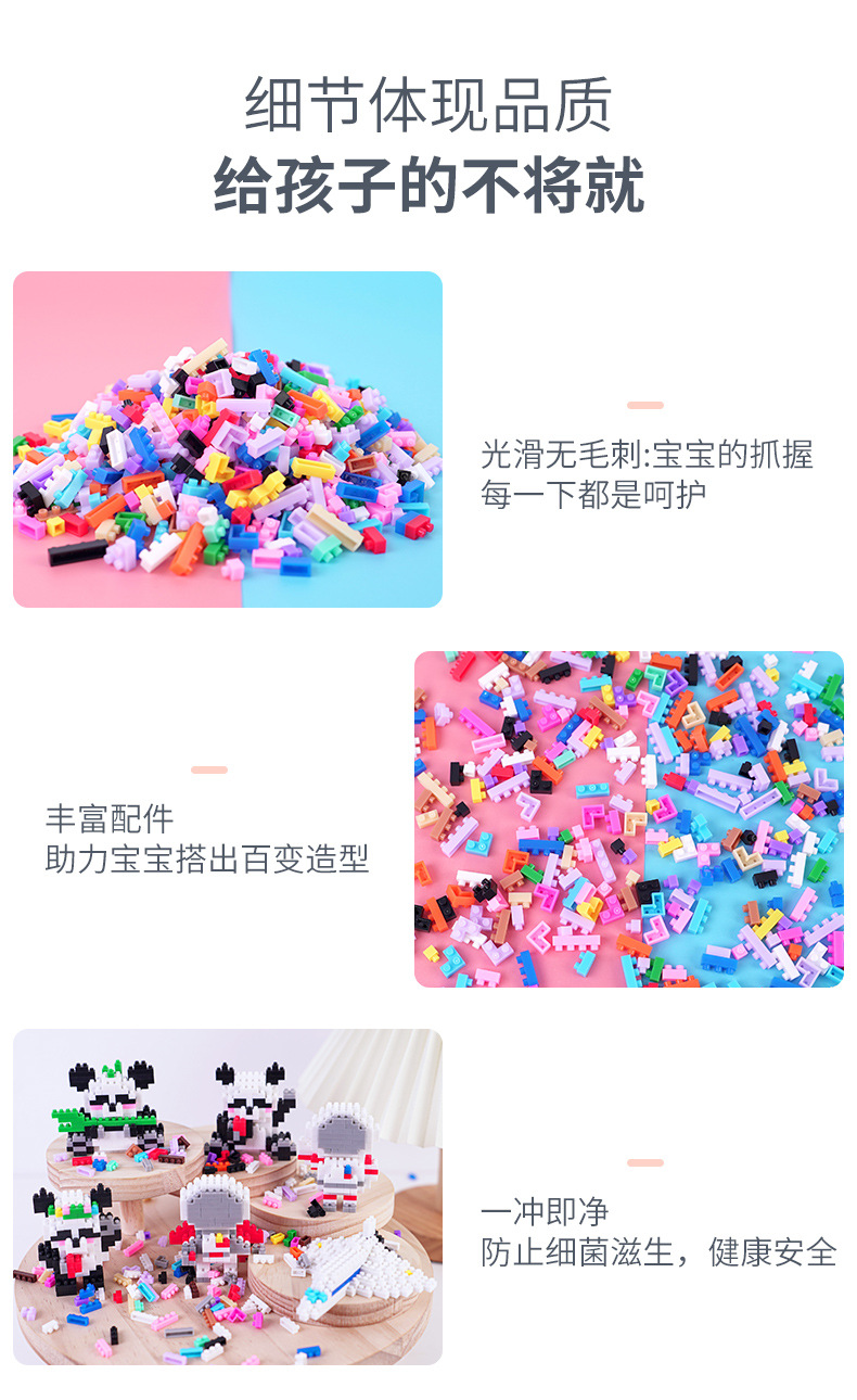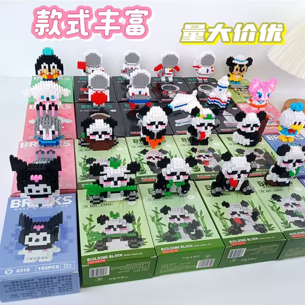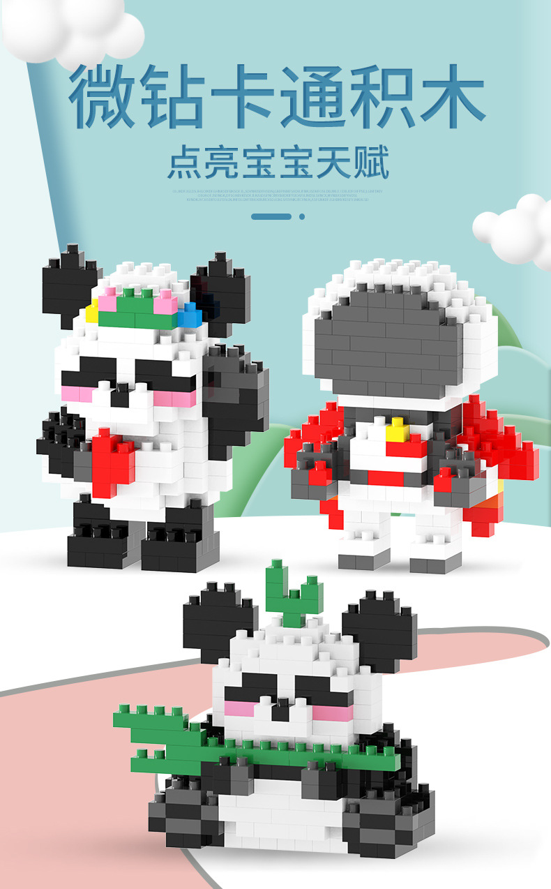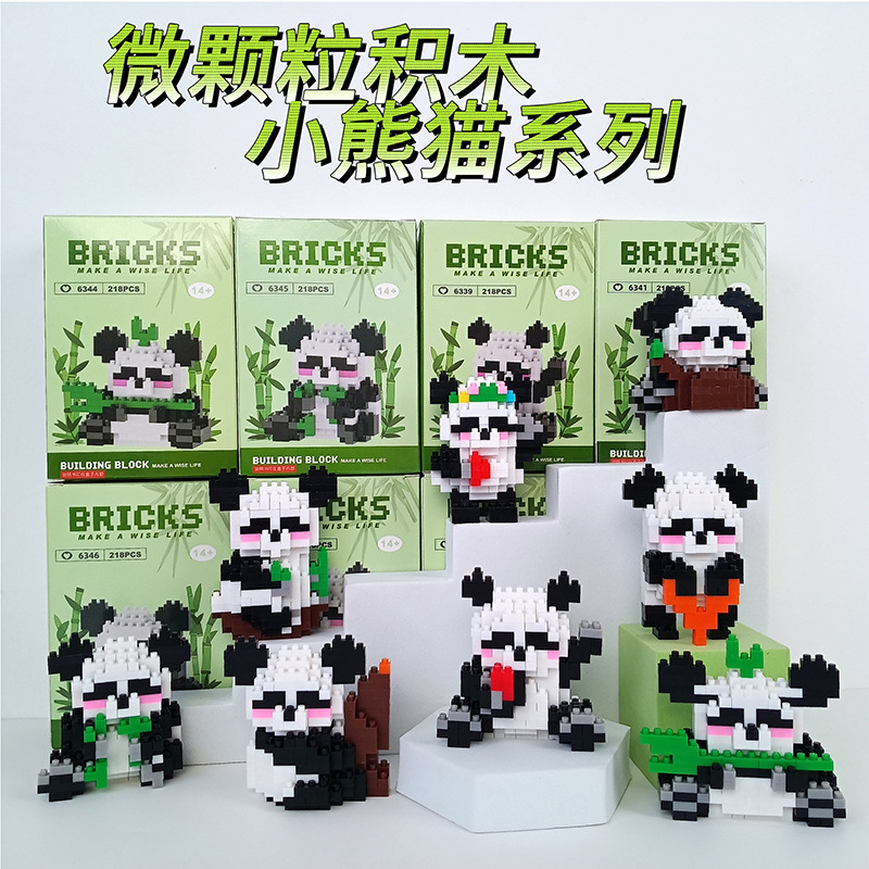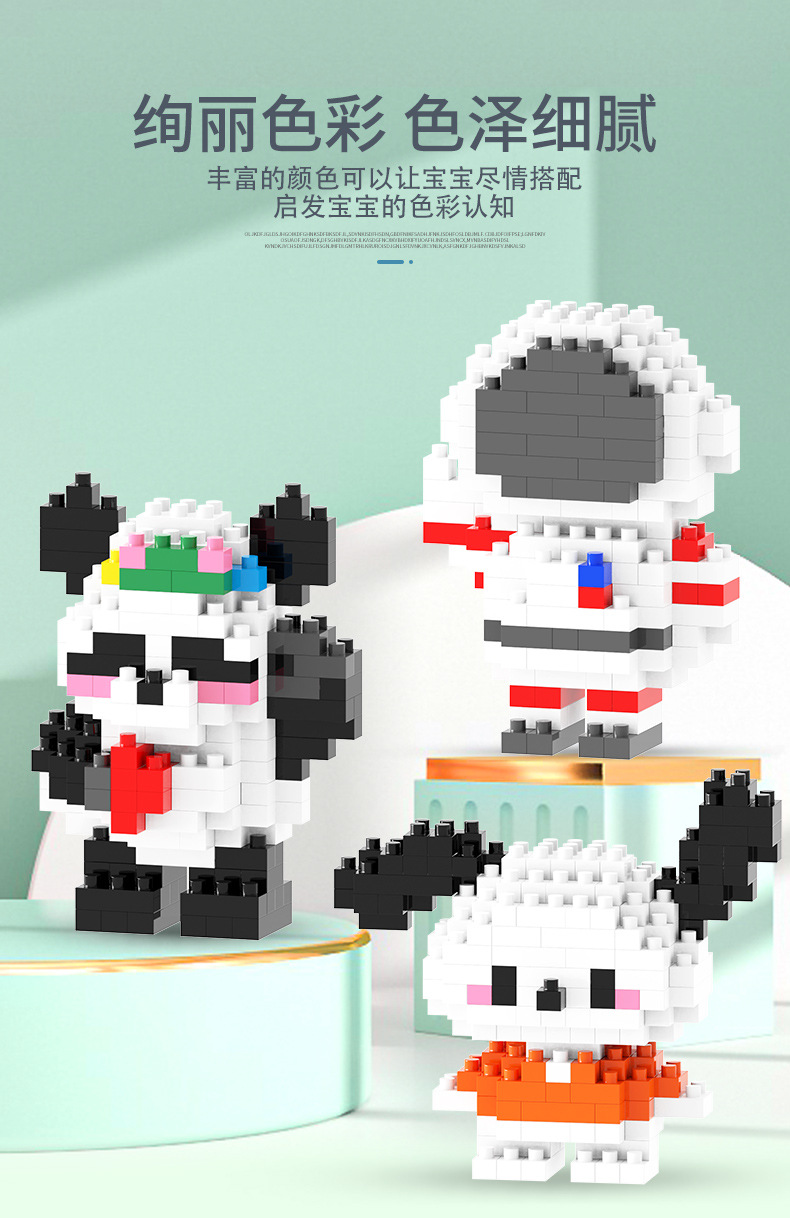 兼容乐高微颗粒积木卡通公仔小熊猫儿童益智拼装玩具跨境摆摊批发