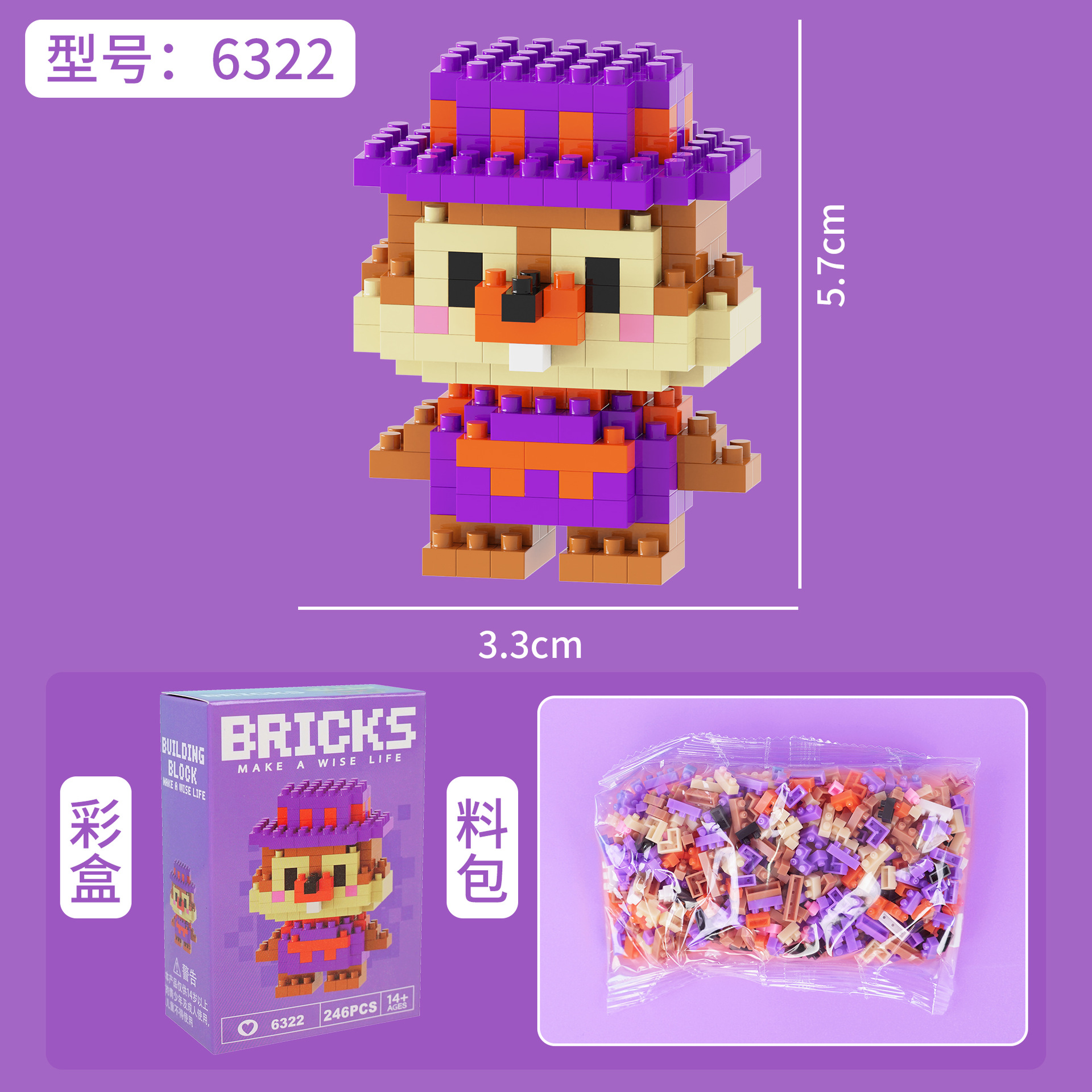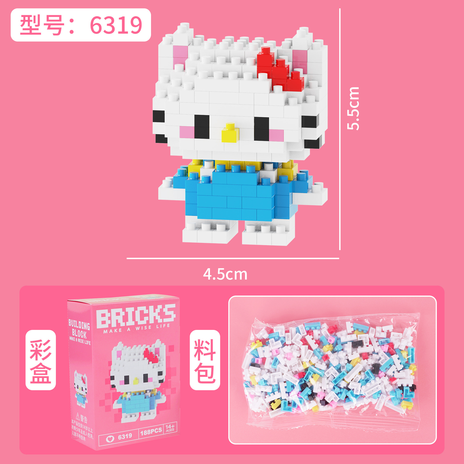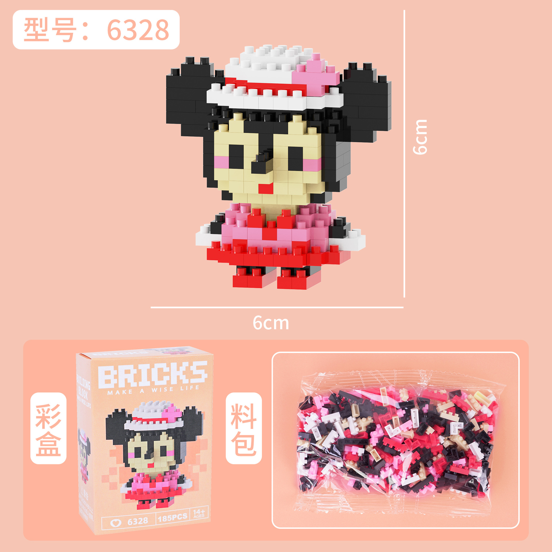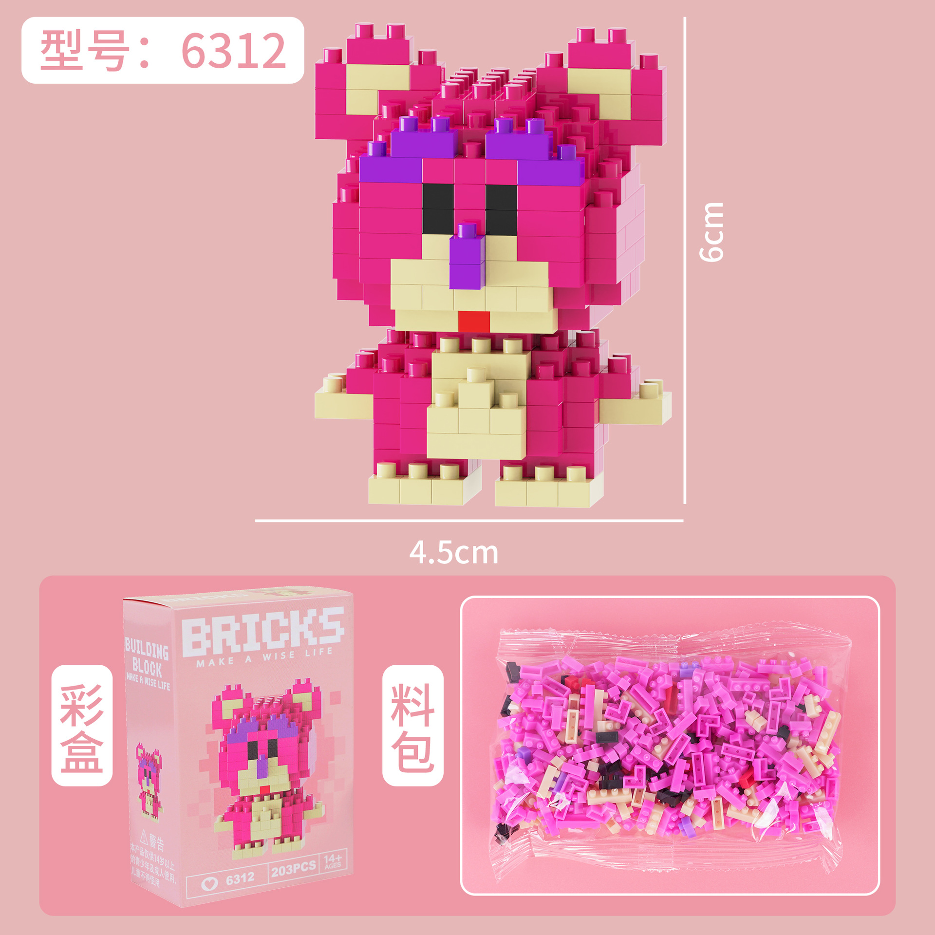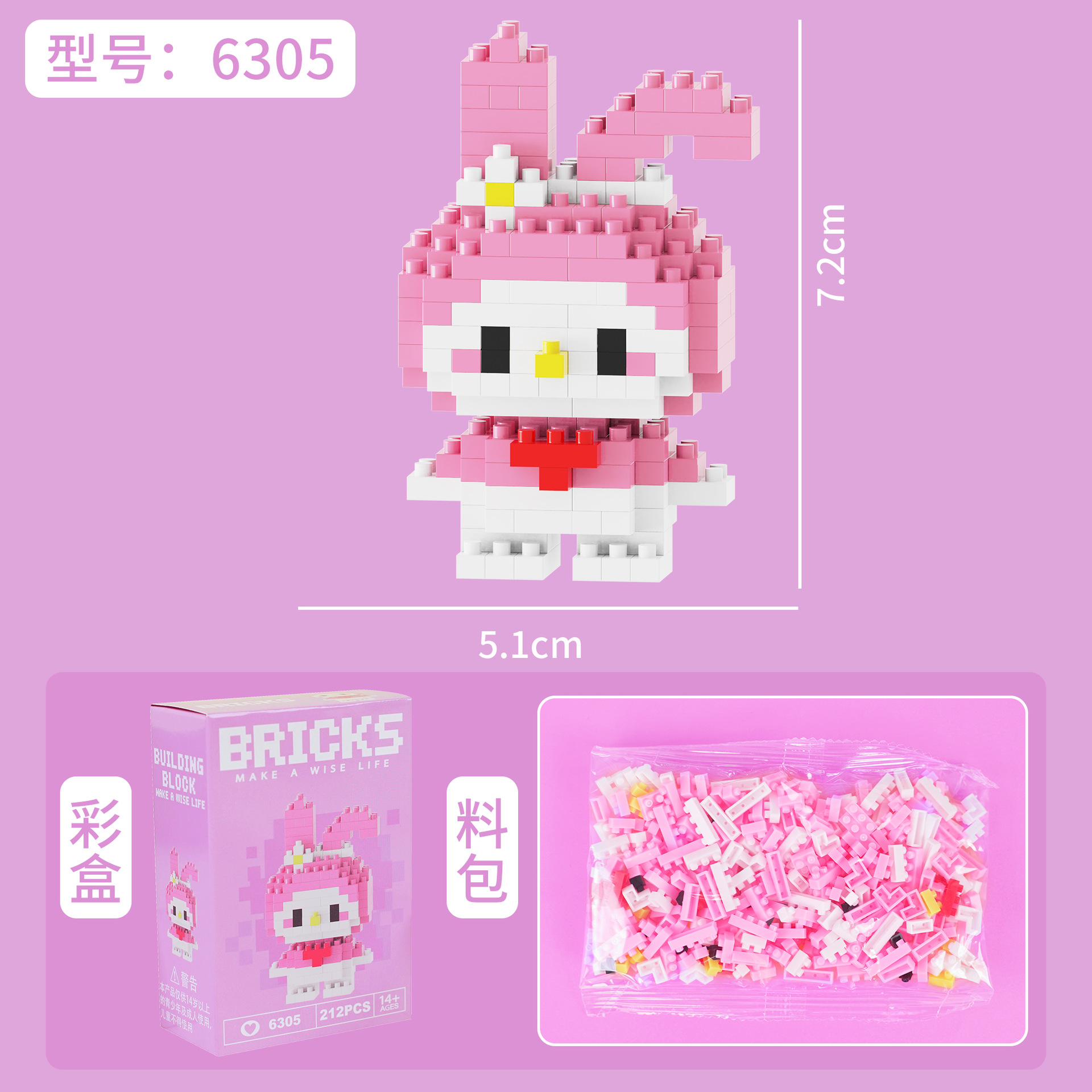 兼容乐高微颗粒积木卡通公仔小熊猫儿童益智拼装玩具跨境摆摊批发