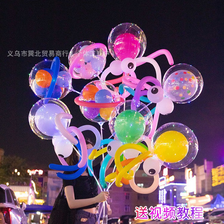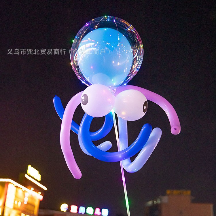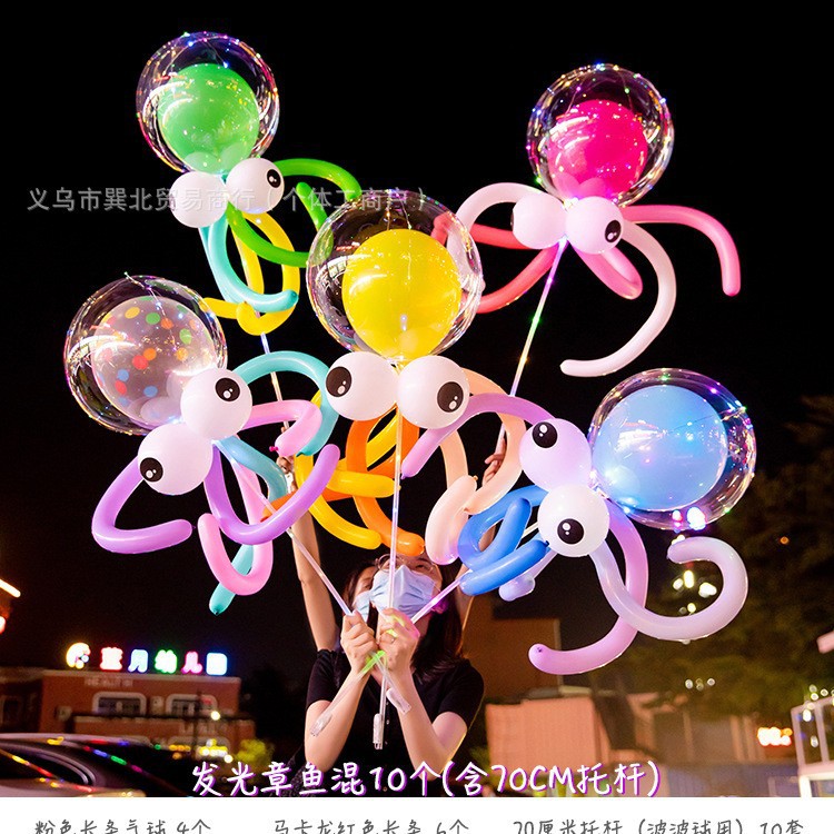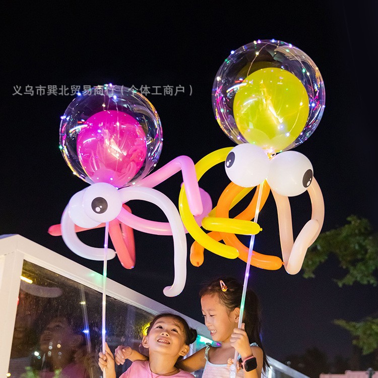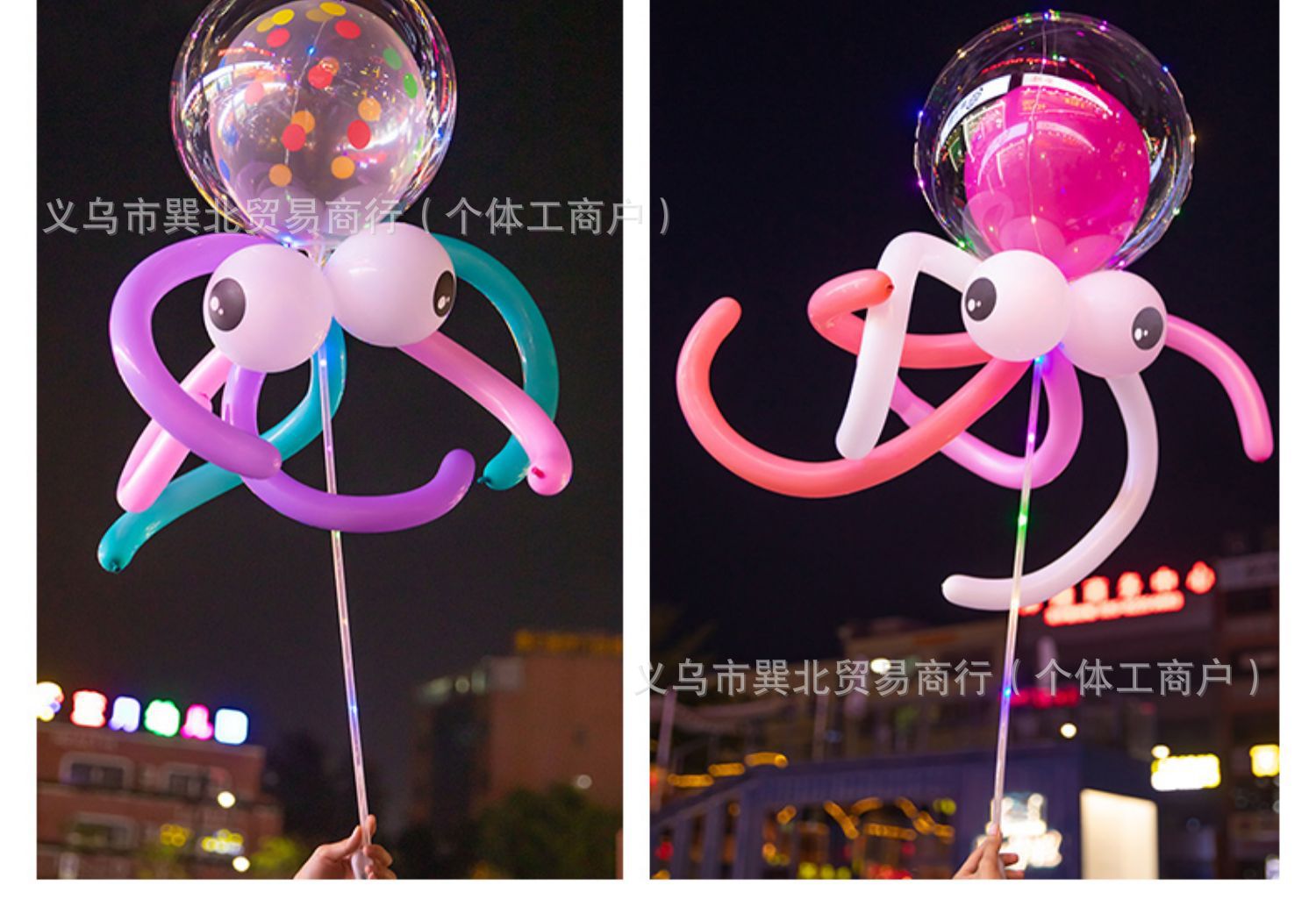 网红波波球新款章鱼带灯发光地推摆摊夜市儿童卡通气球材料包批发