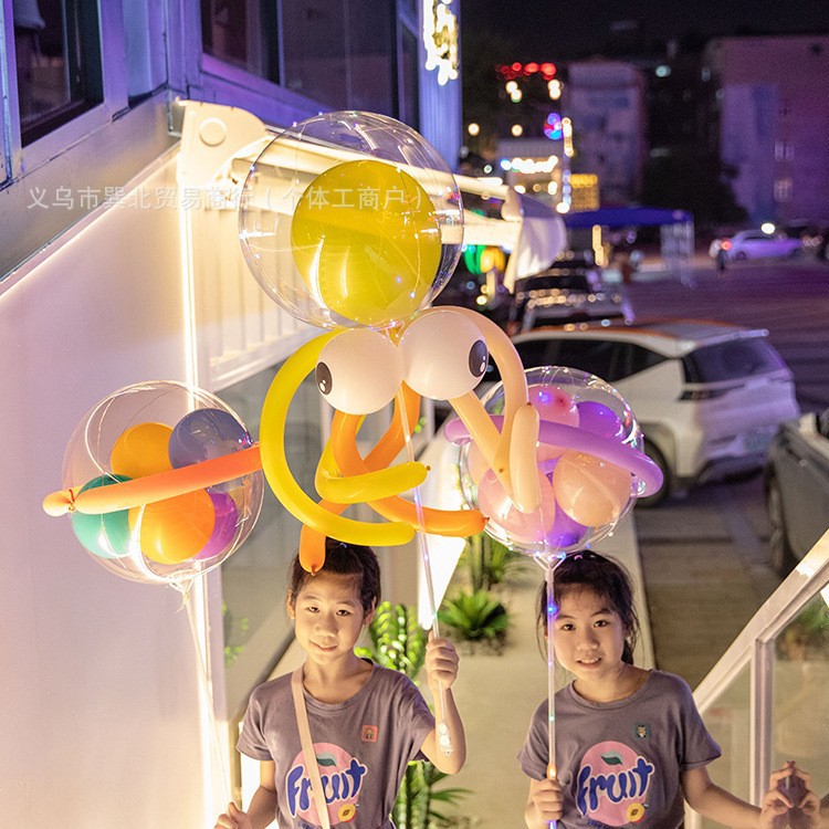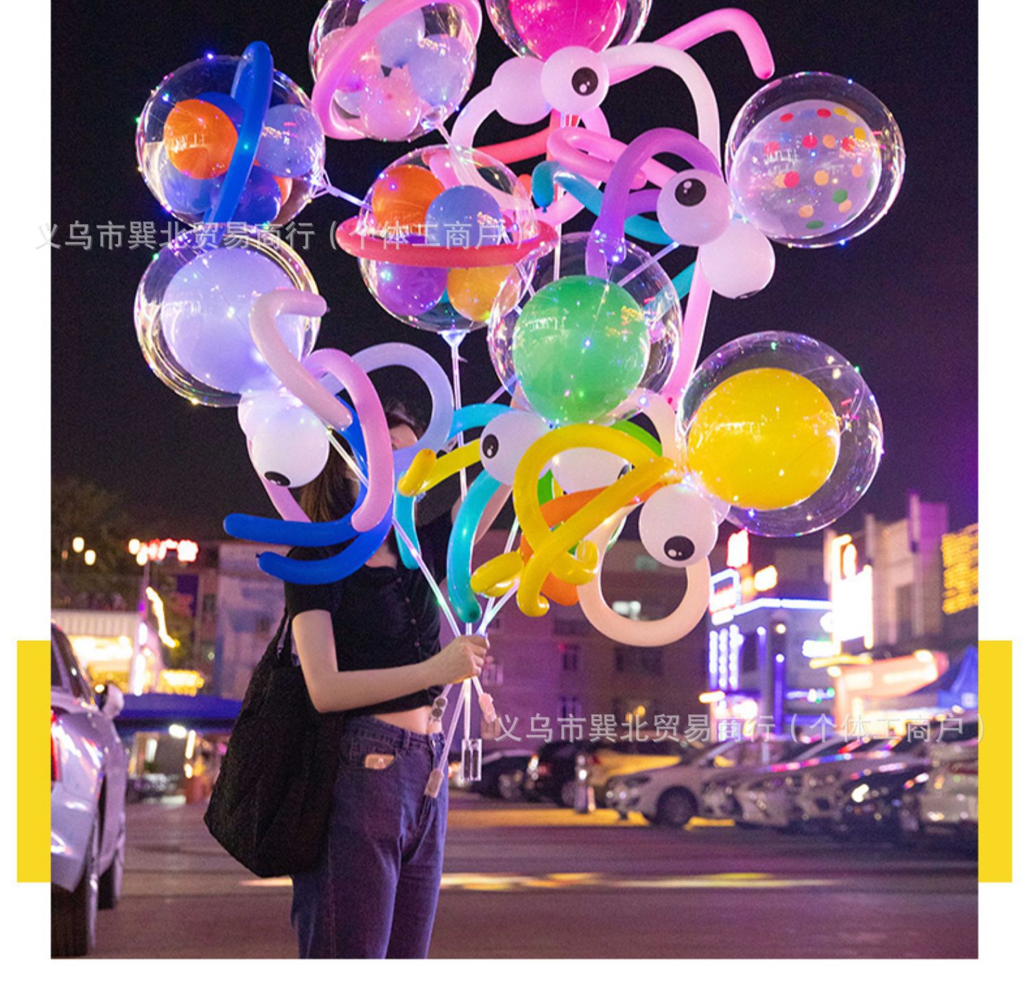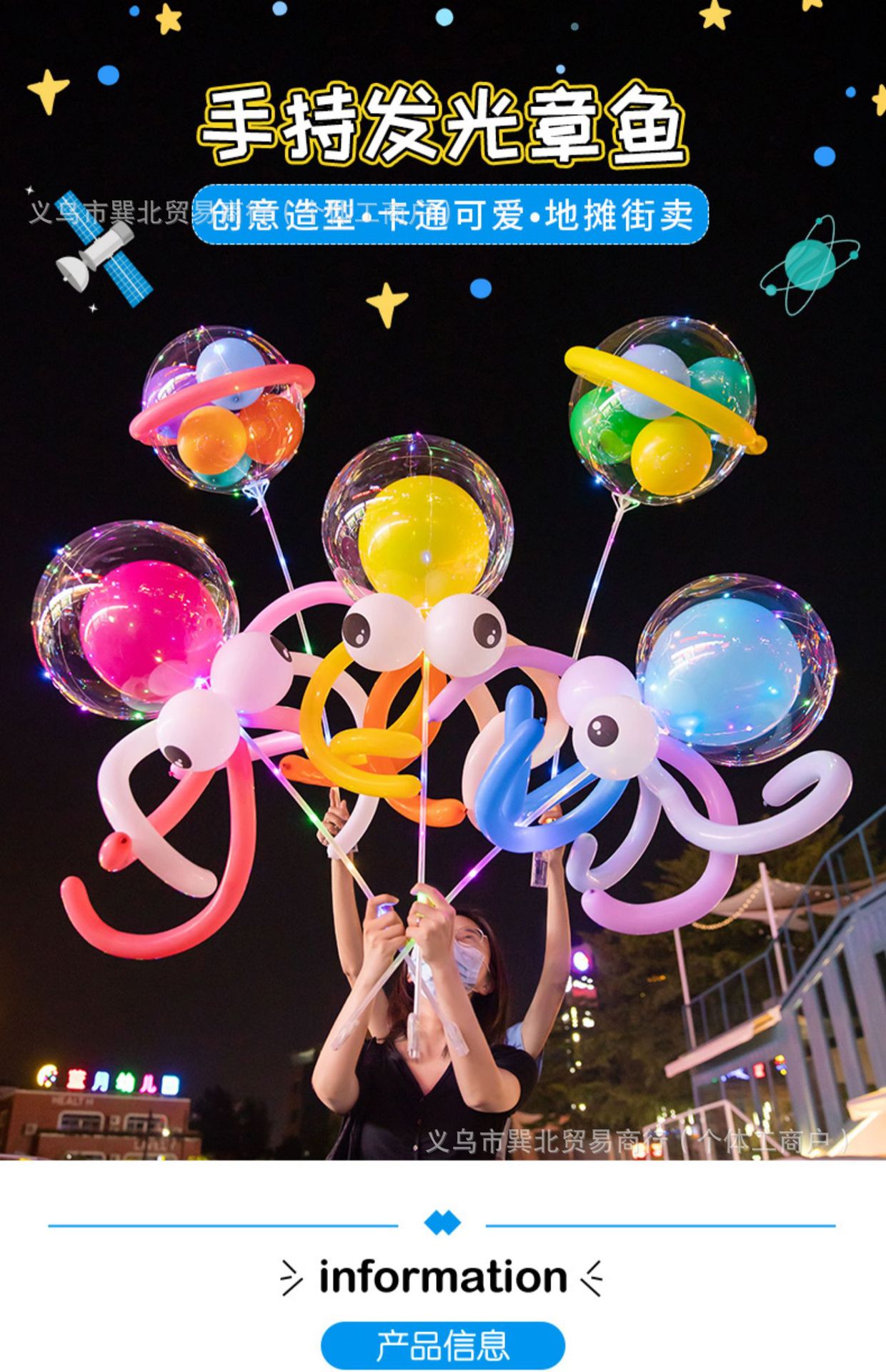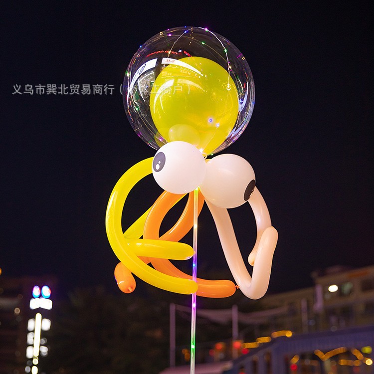 网红波波球新款章鱼带灯发光地推摆摊夜市儿童卡通气球材料包批发