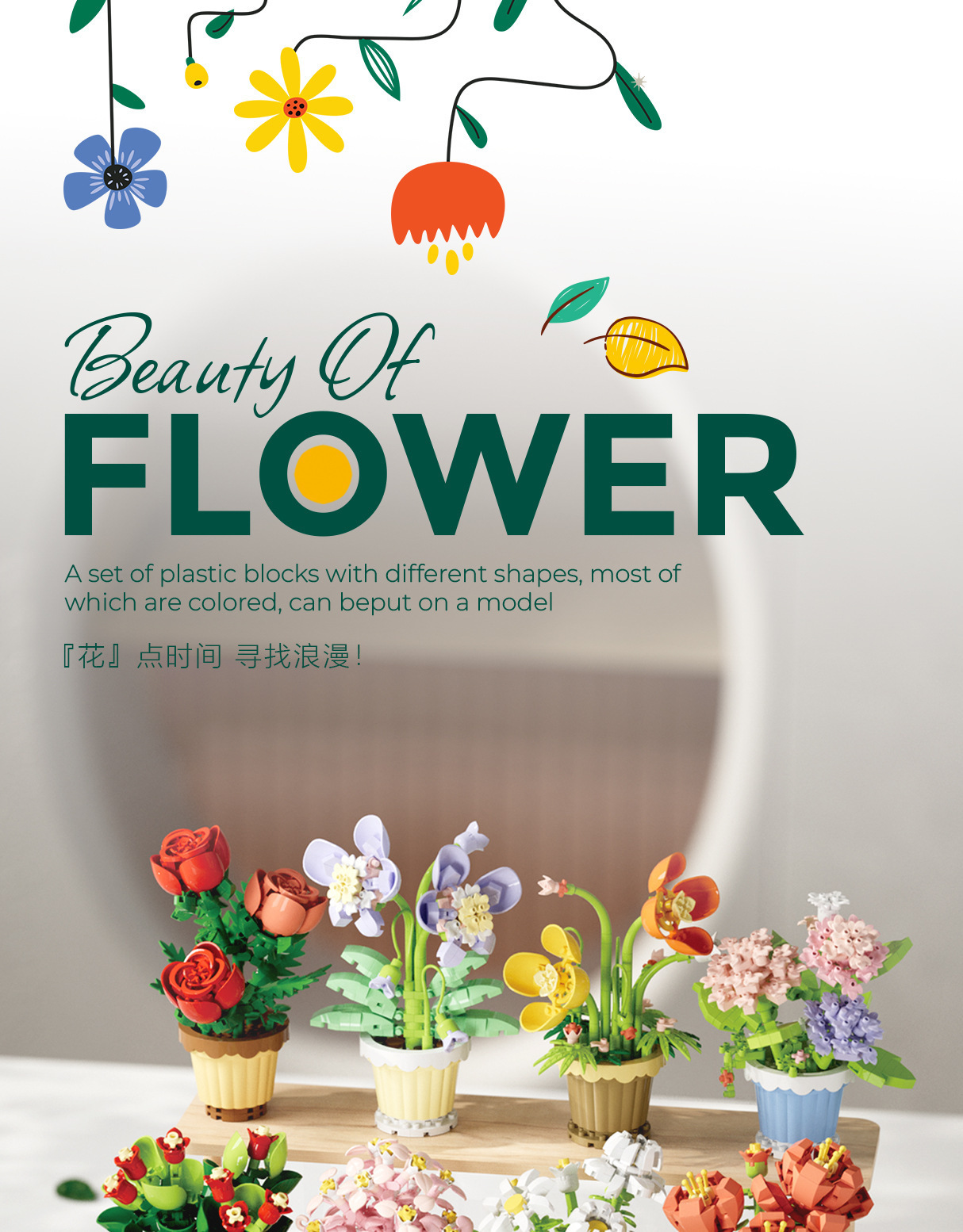 兼容乐高玫瑰向日葵盆栽拼装玩具积木花摆摊520情人节礼物批发