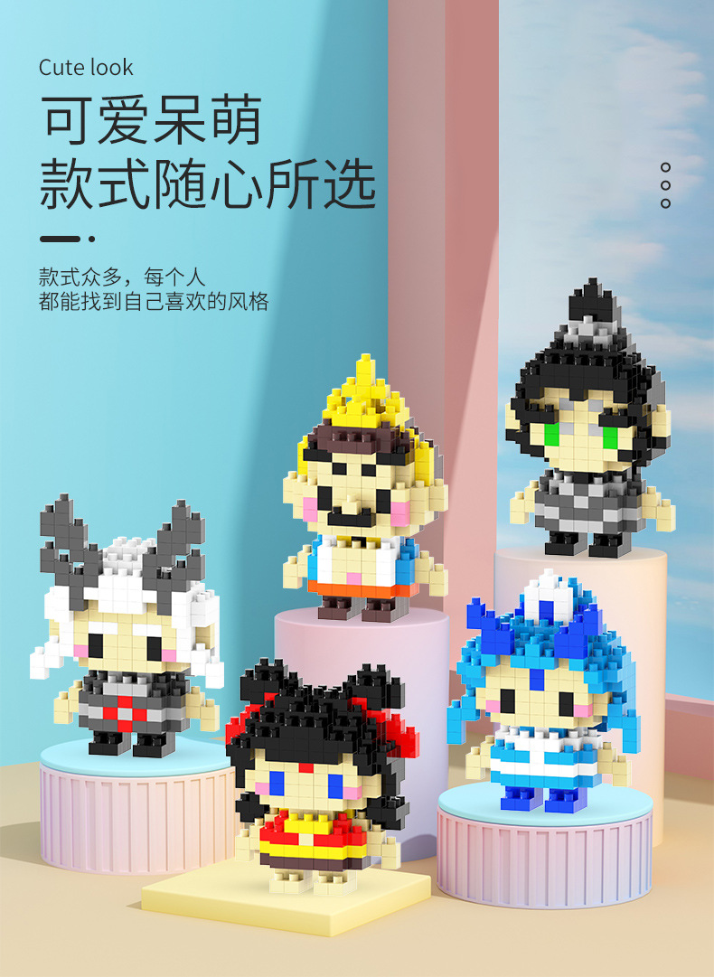 兼容乐高微颗粒积木小盒卡通公仔拼装益智玩具儿童男女孩摆摊批发