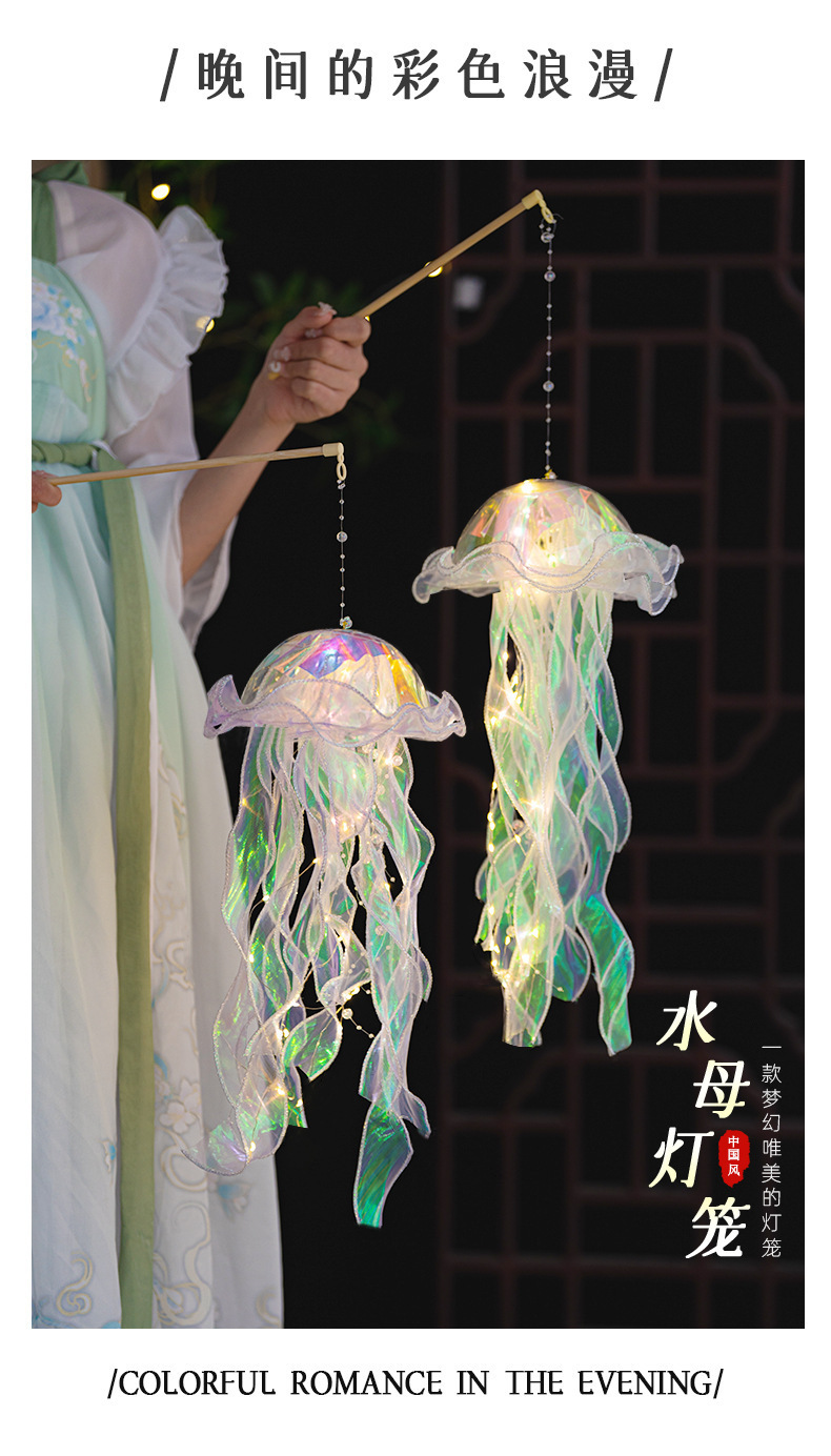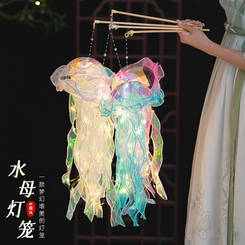 地摊爆款手提发光水母灯笼装饰挂件水母灯夜市爆款水母灯网红灯笼