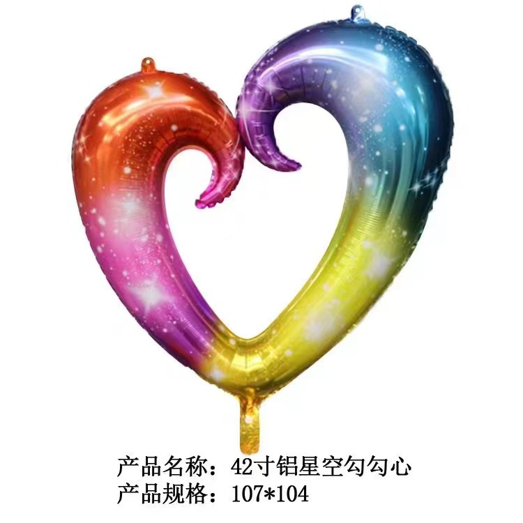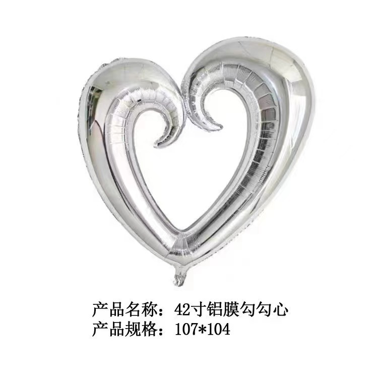 42寸勾勾心铝膜气球爱心气球地摊热销情人节爆款气球自封口铝膜