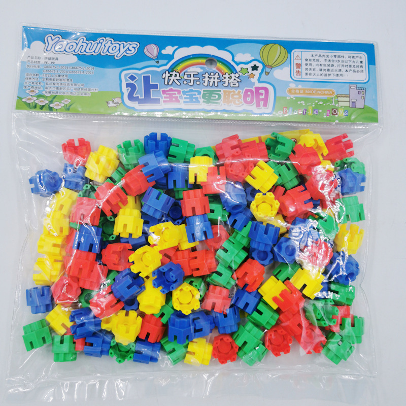 跨境批发幼儿园雪花片积木拼插地摊玩具桌面散装斤称益智车轮管道