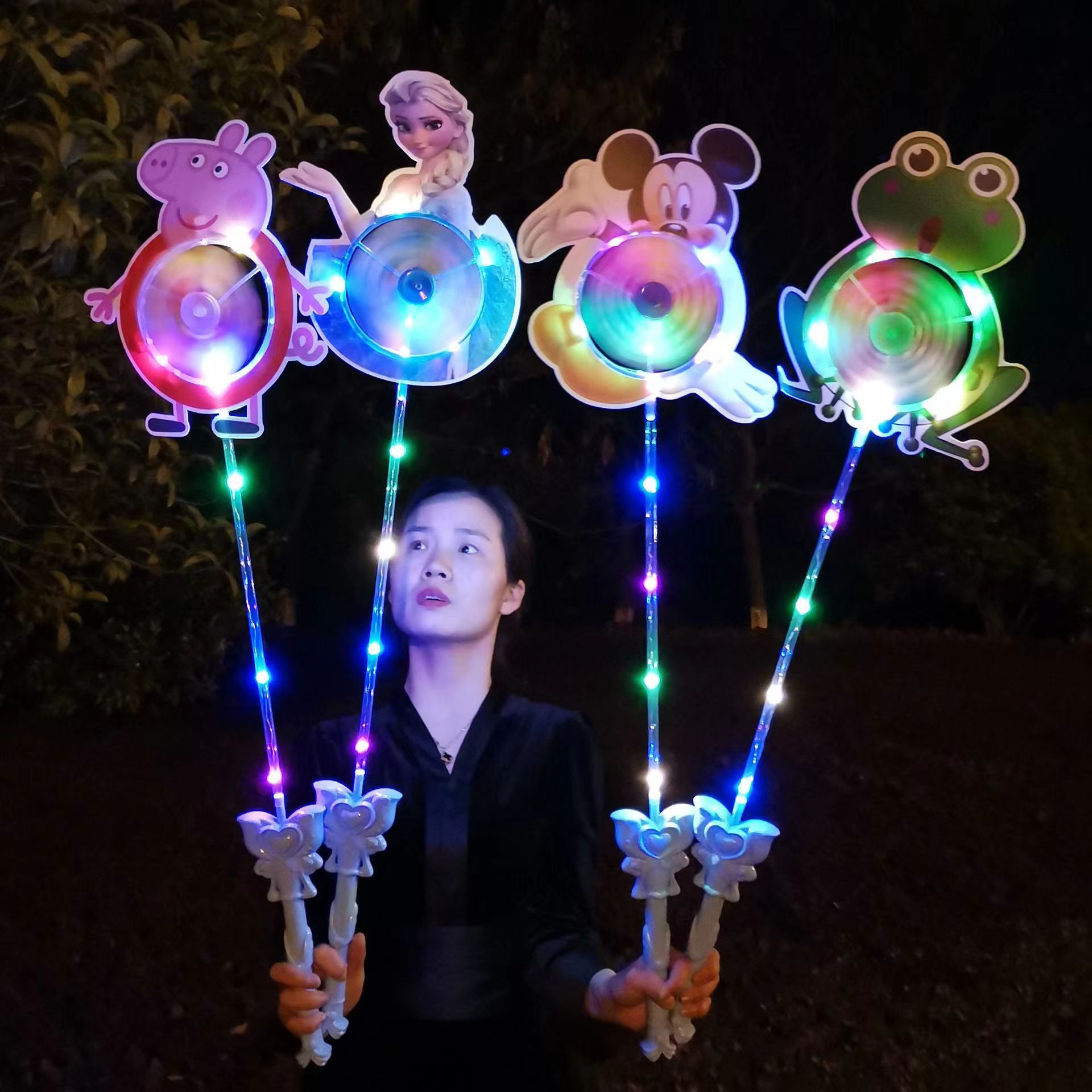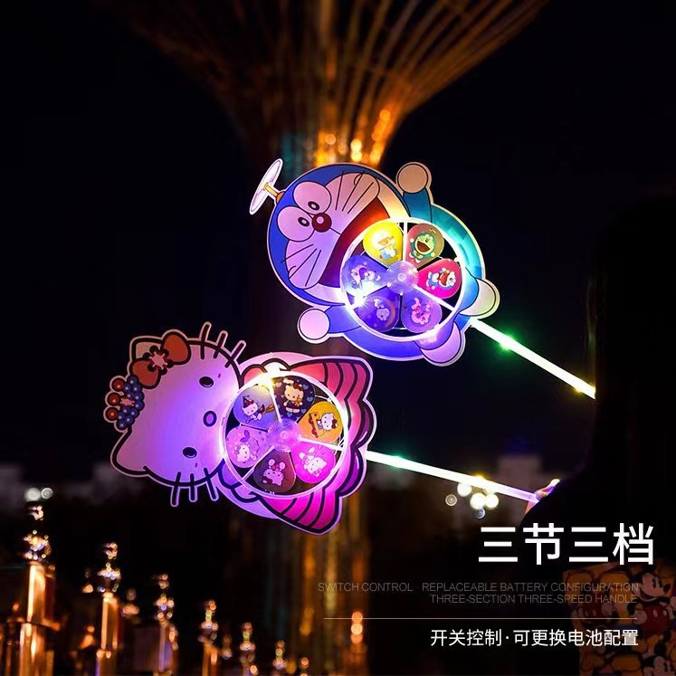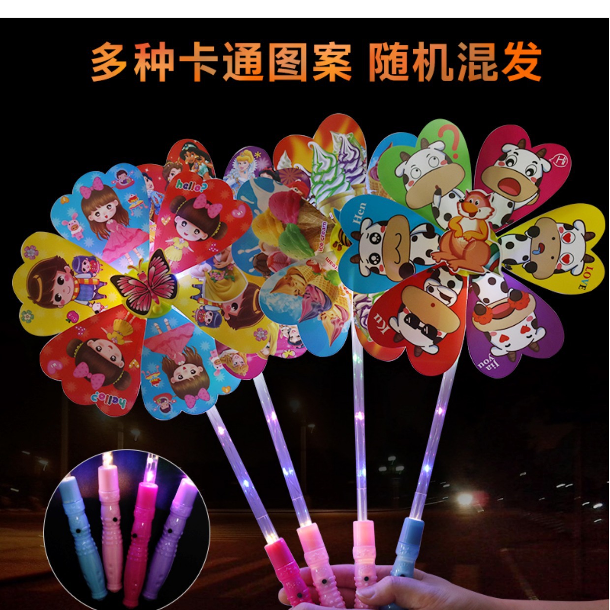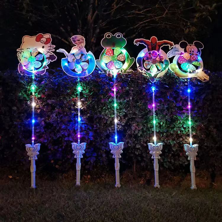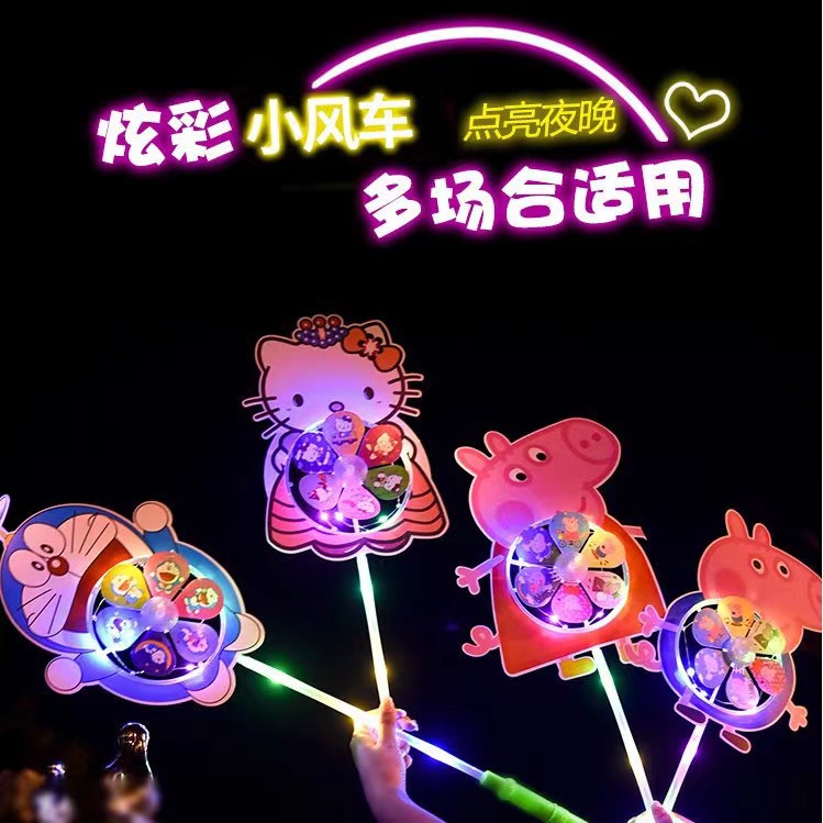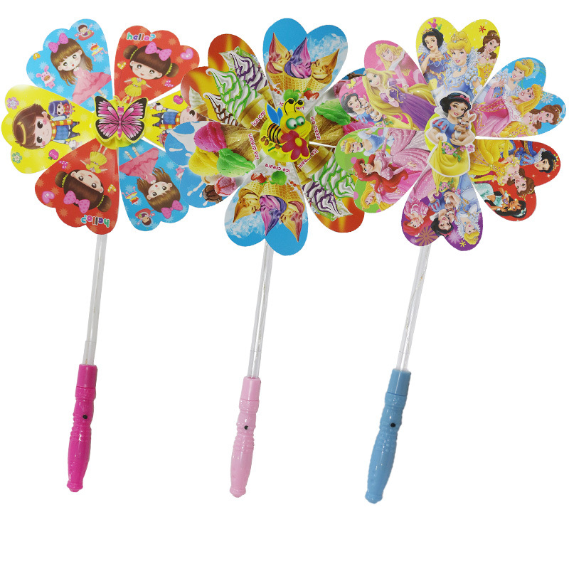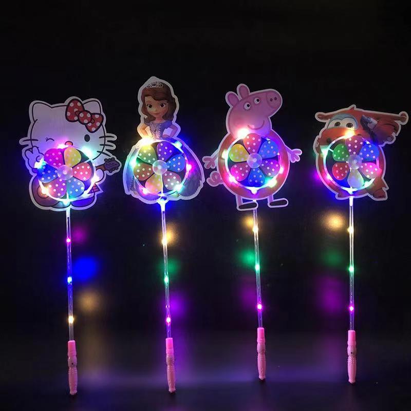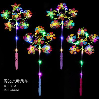儿童卡通风车六叶闪光发光卡通风车带炫彩地摊广场热卖夜儿童玩具