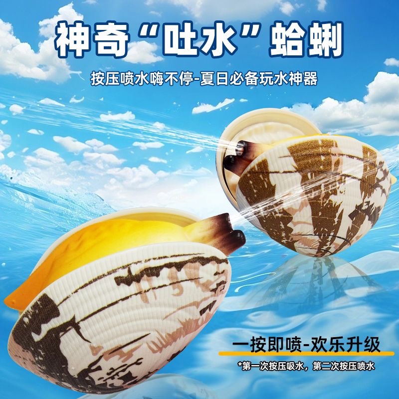喷水蛤蜊玩具整蛊恶搞吸水按压仿真贝壳类儿童迷你滋水枪戏水男孩