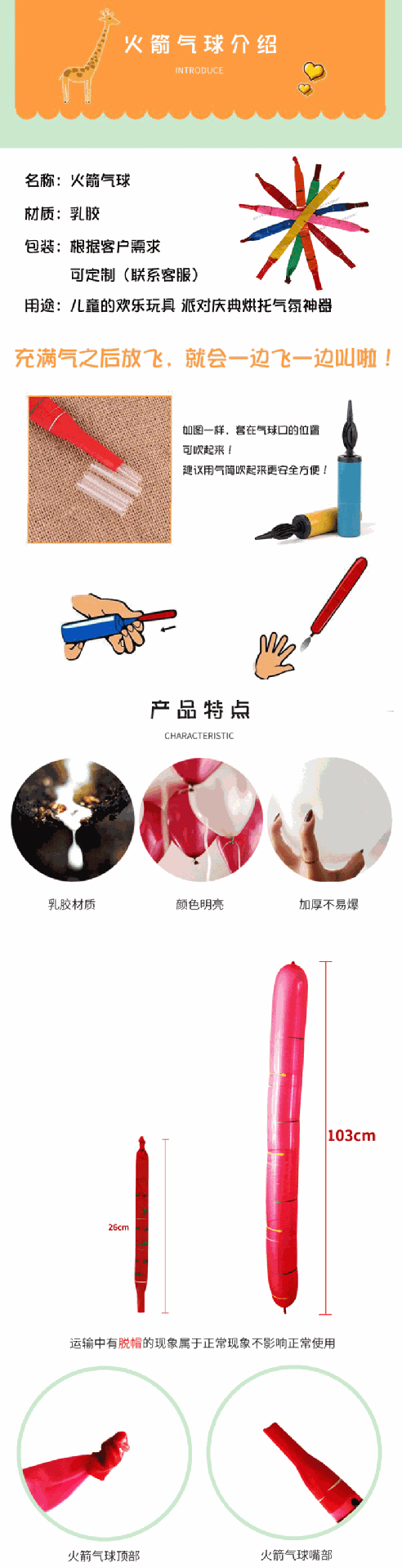 | 1.3g rocket balloon mixed color 100 (thin) general(1.3g火箭气球混色100根(偏薄)一般) | USD $1.35 | 927443 pack available |