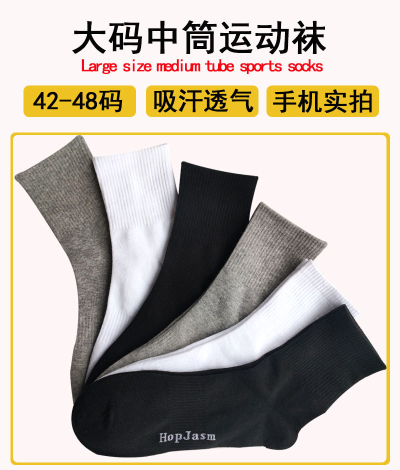 42-48大码袜子男袜46码纯色棉袜运动袜47大号胖脚吸汗透气中筒袜