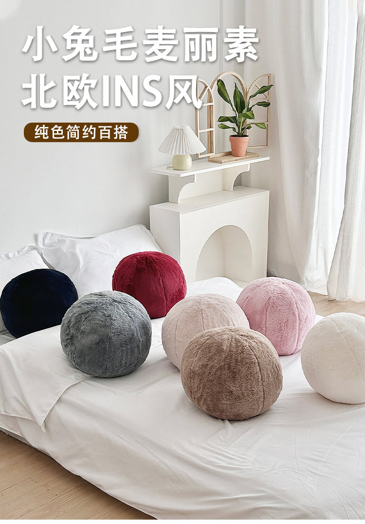 北欧ins风兔毛麦丽素圆形抱枕民宿装饰沙发抱枕卧室椅子靠垫腰枕