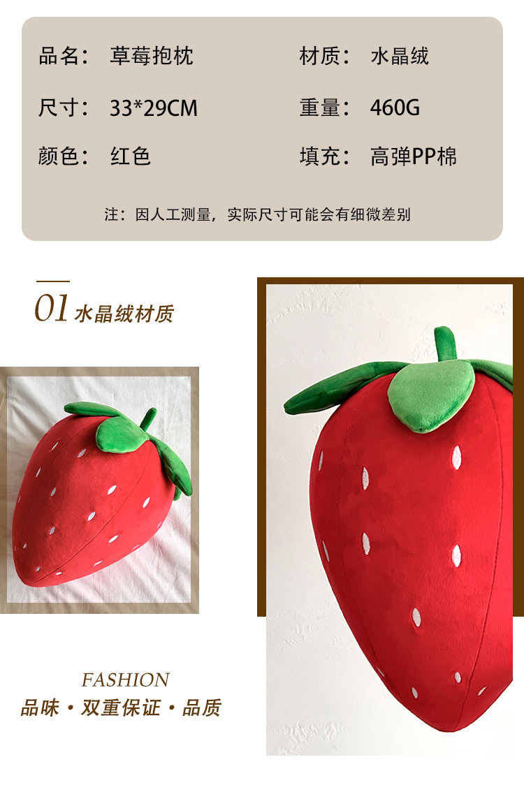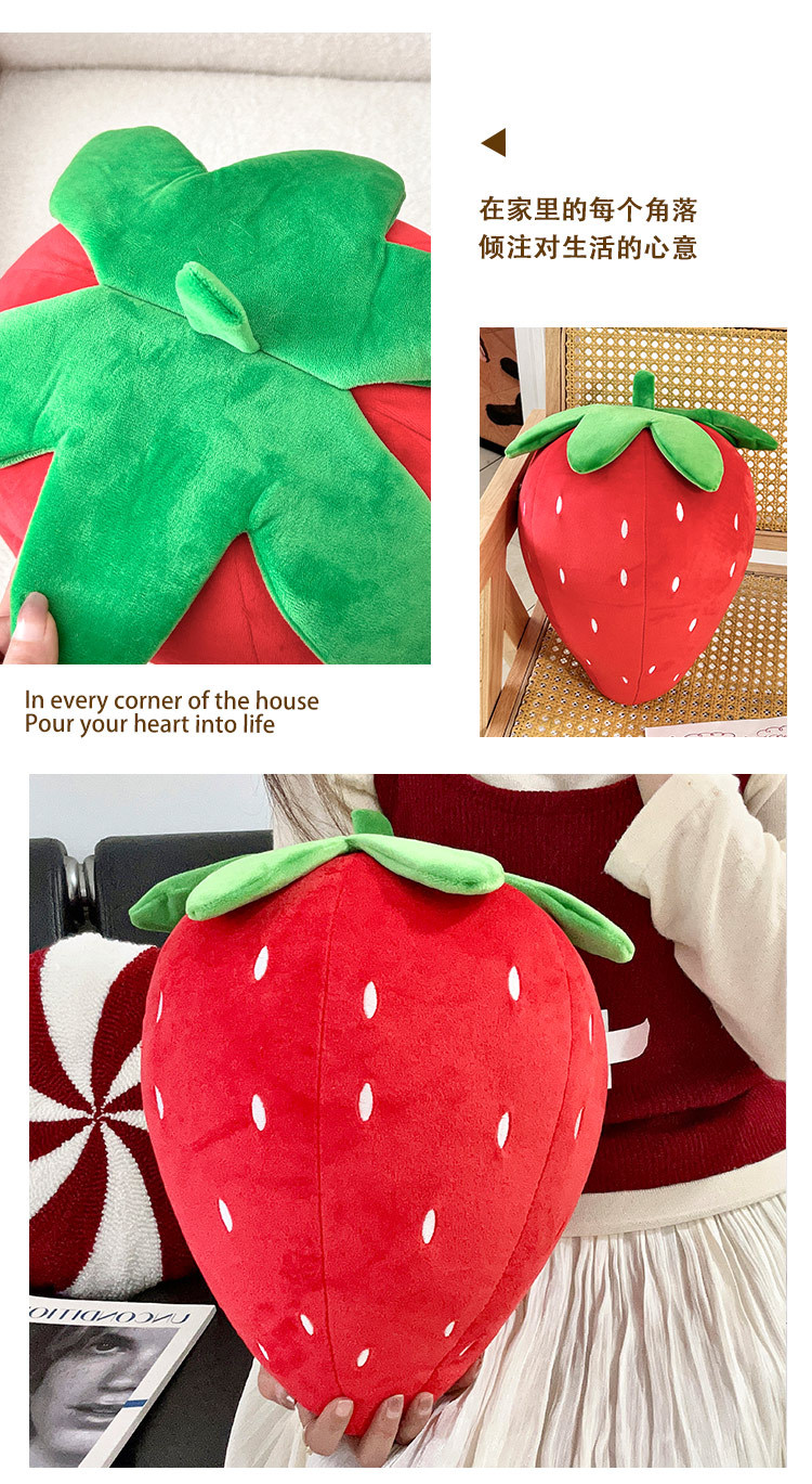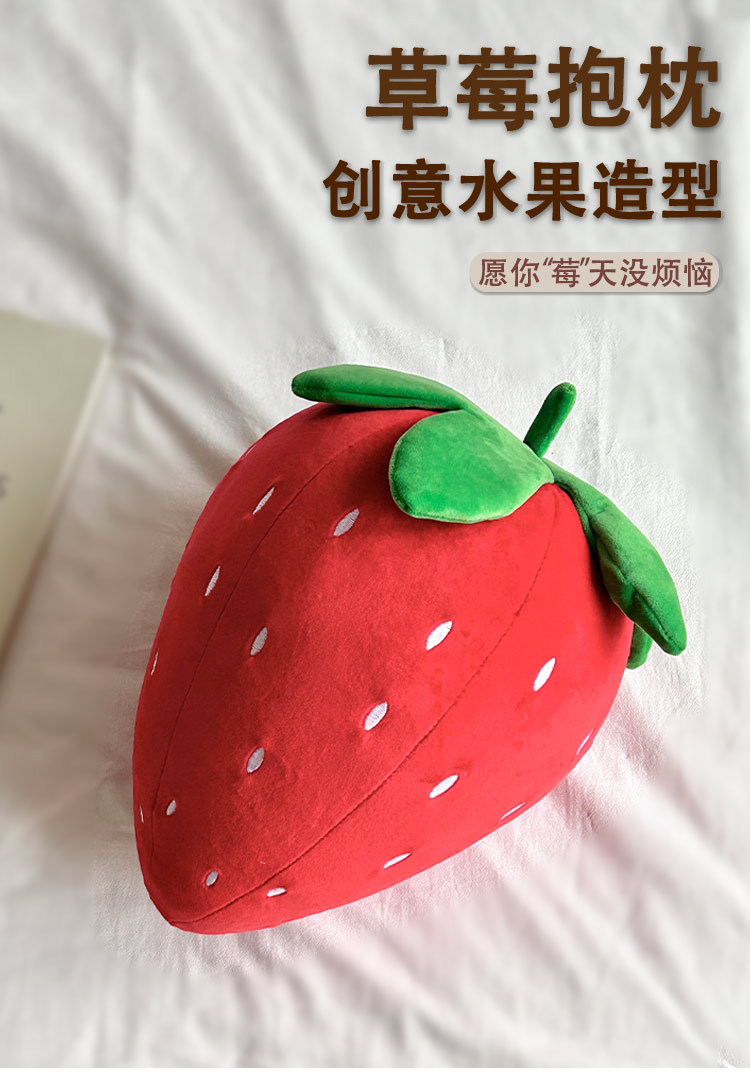 跨境创意仿真草莓毛绒玩具靠垫儿童抱枕靠枕水果毛绒公仔送女孩