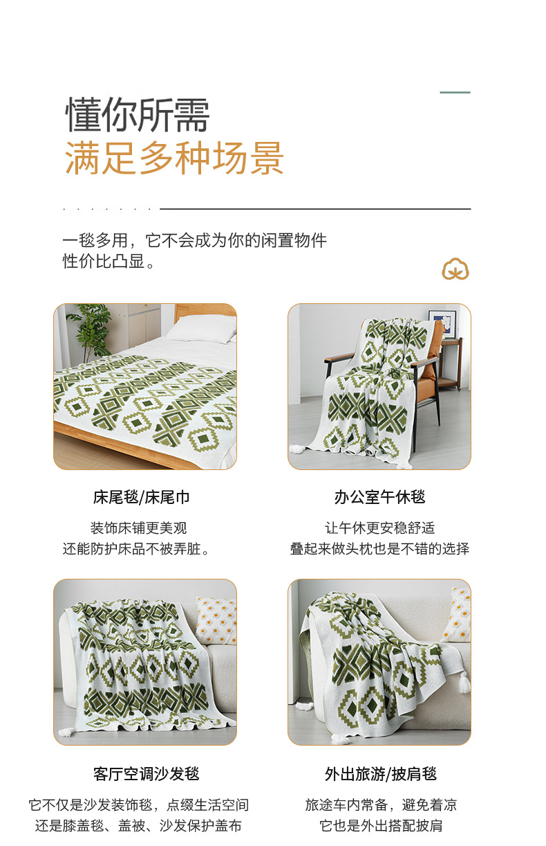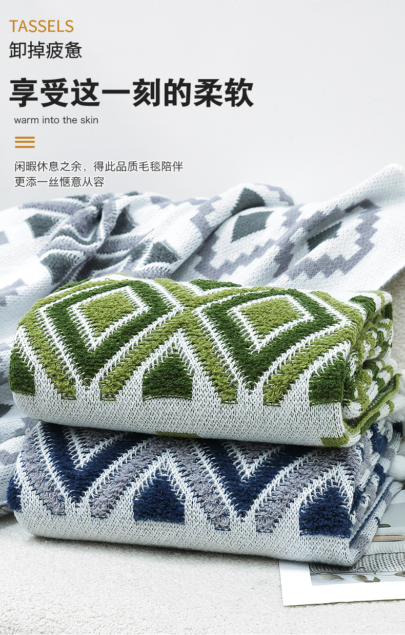 波西米亚针织盖毯沙发午睡毯办公室披肩空调小毯子毛毯飞机旅行毯