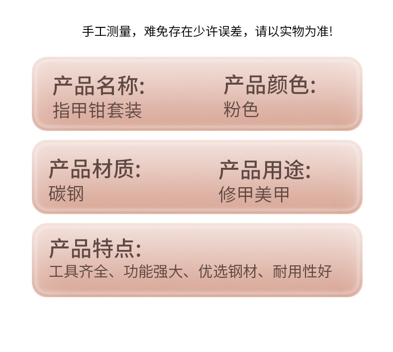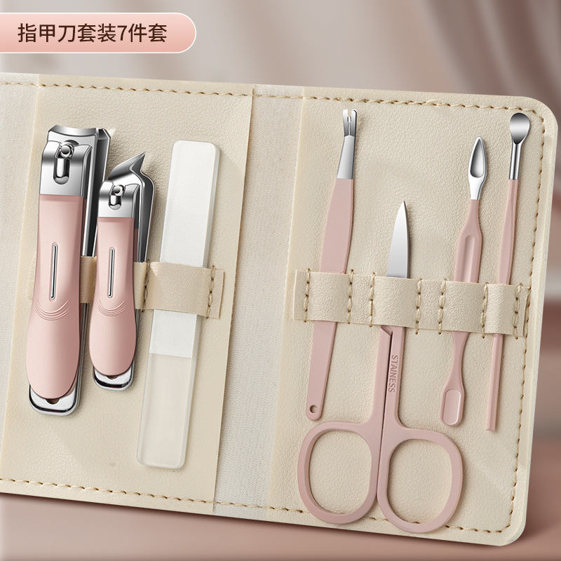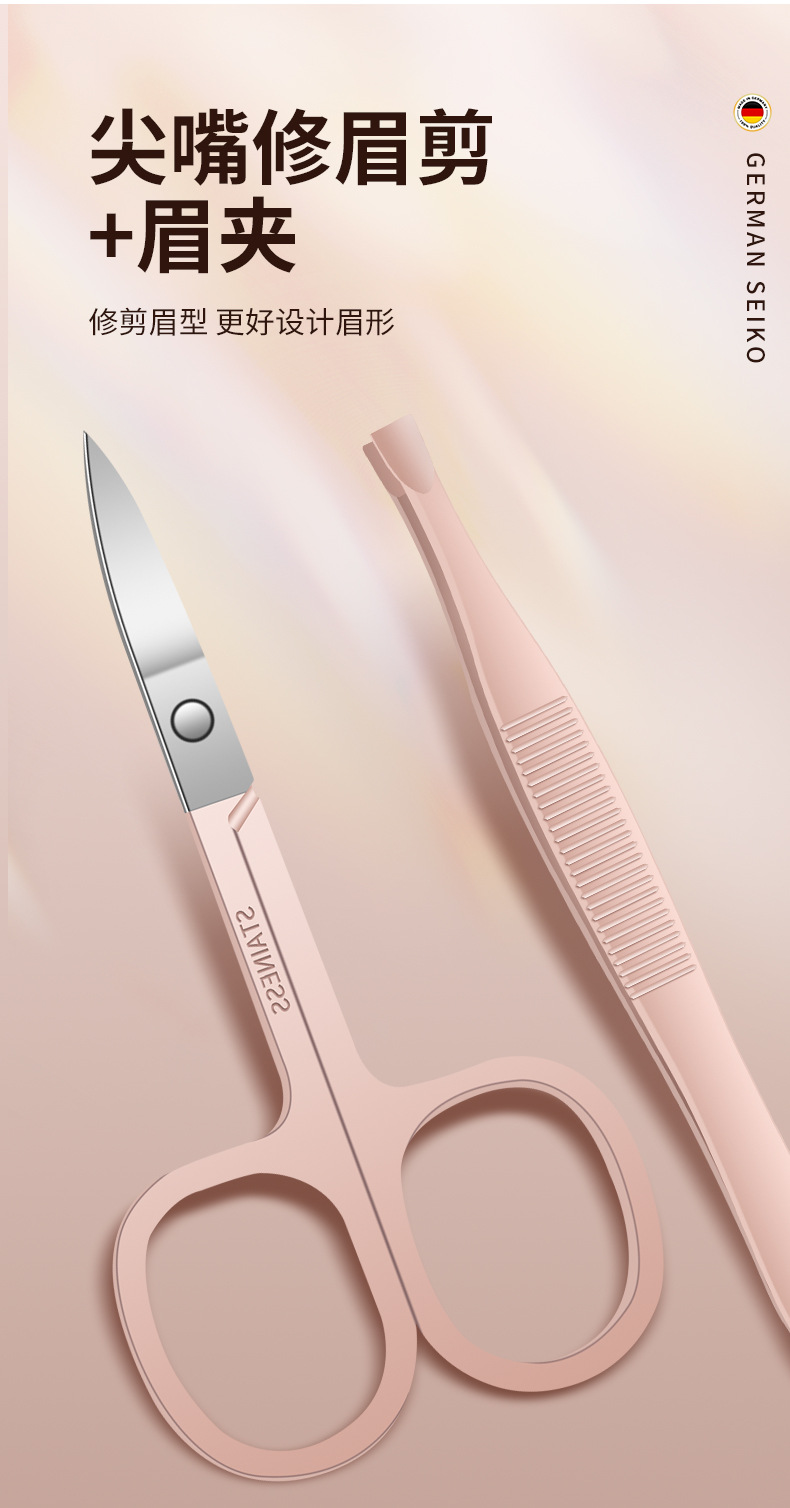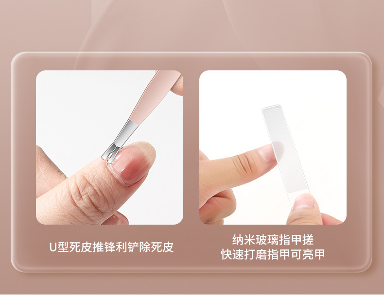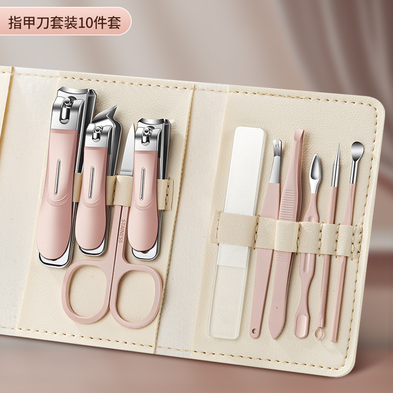 跨境指甲剪套装不锈钢款粉色10件套指甲刀全套甲沟钳平口剪指甲钳
