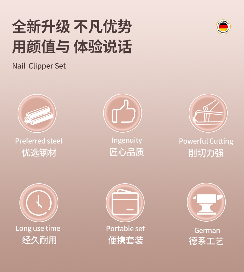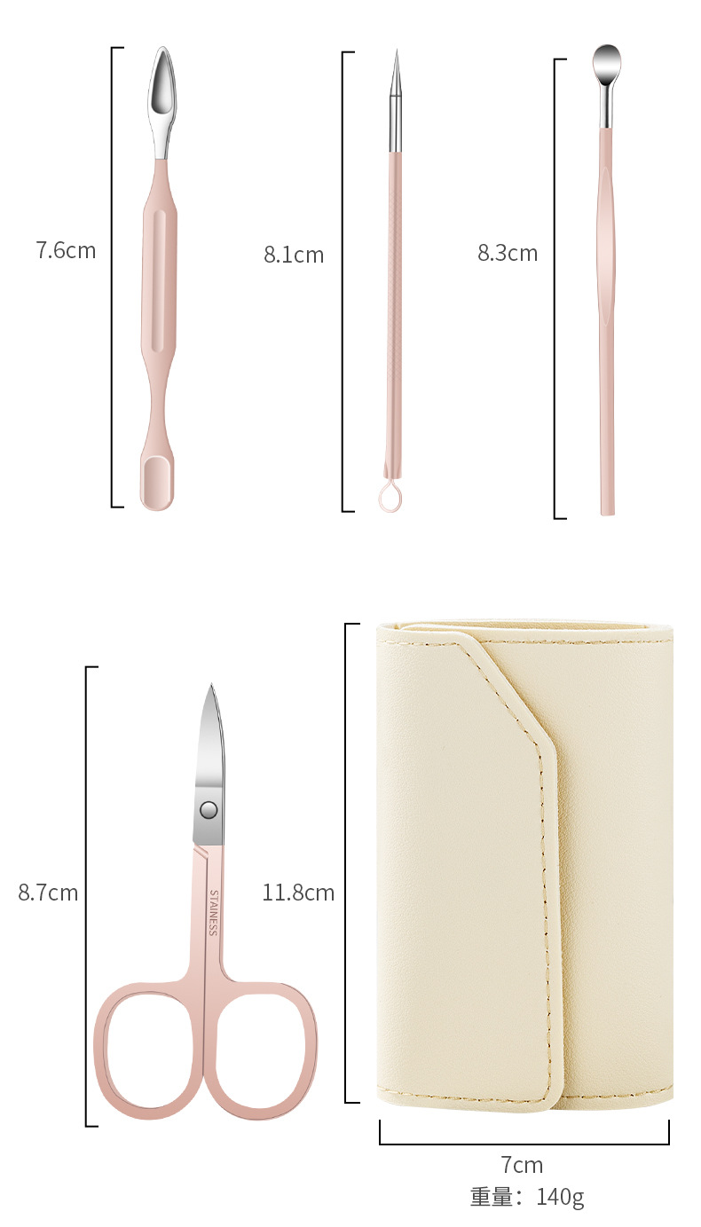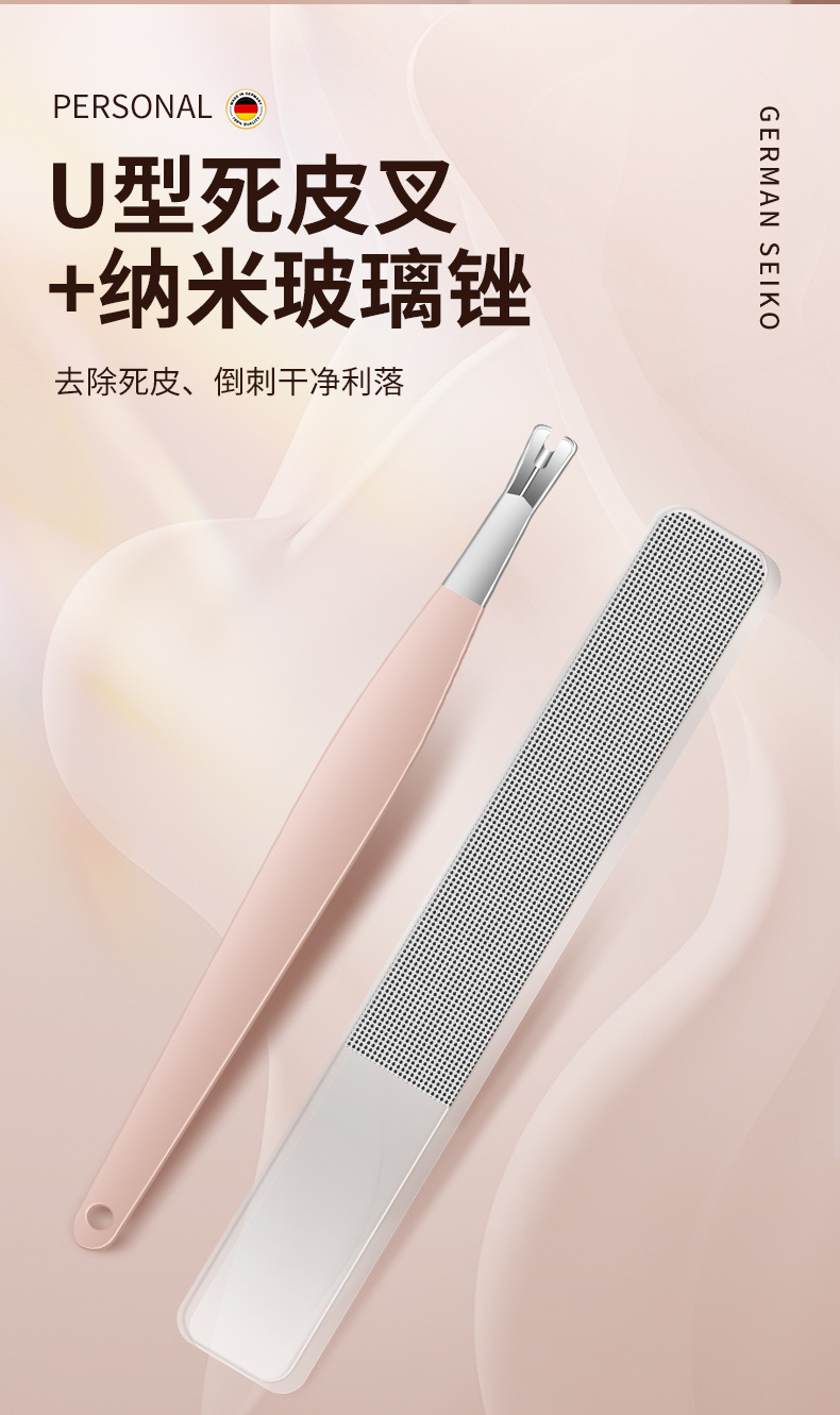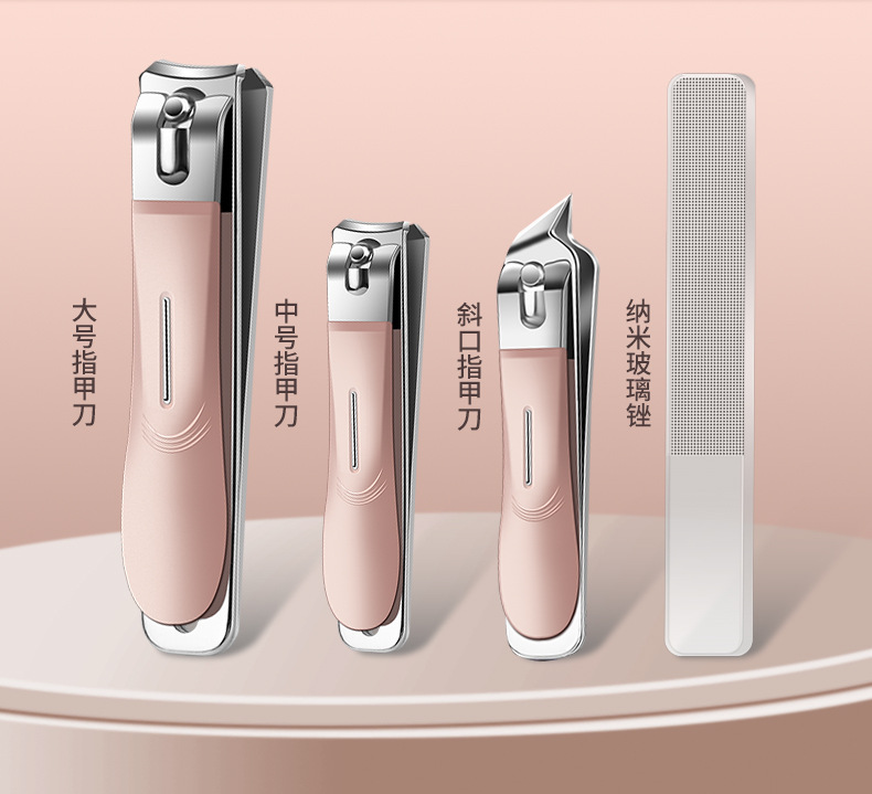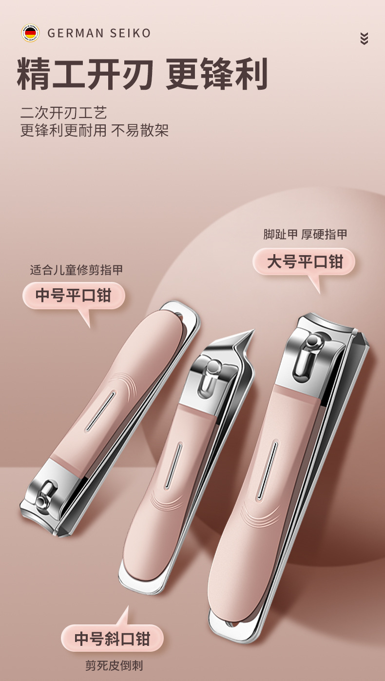 跨境指甲剪套装不锈钢款粉色10件套指甲刀全套甲沟钳平口剪指甲钳