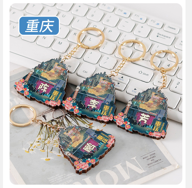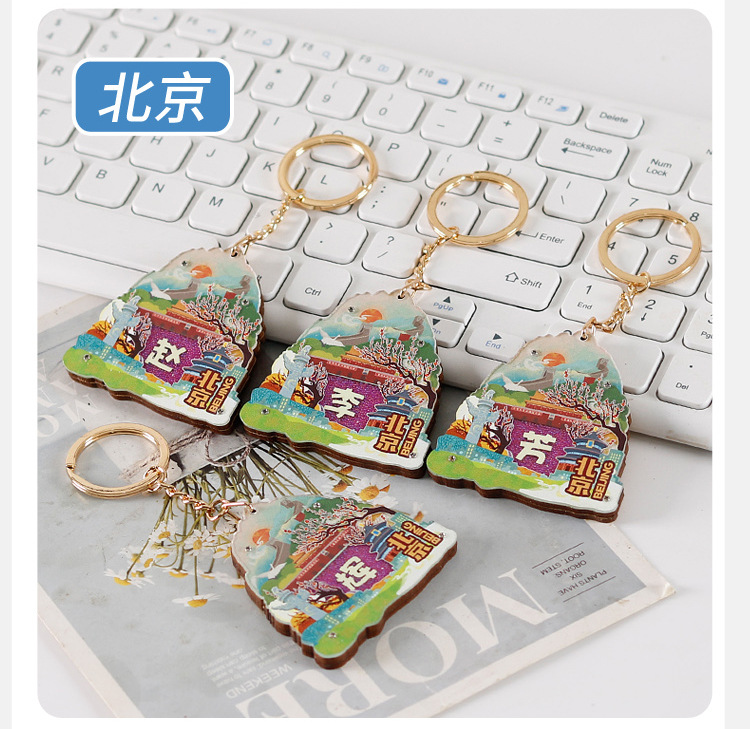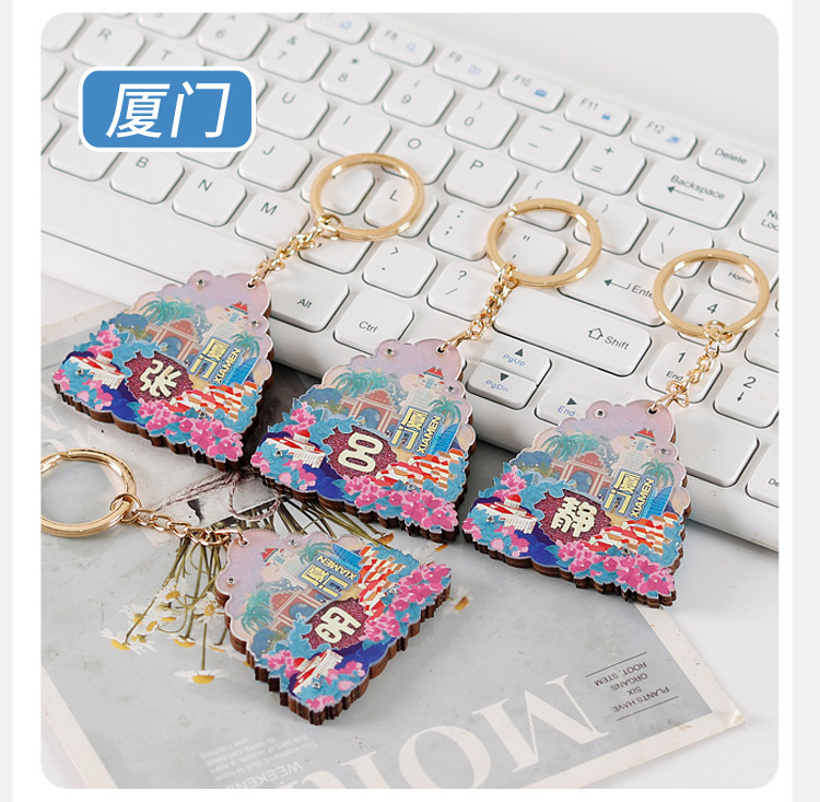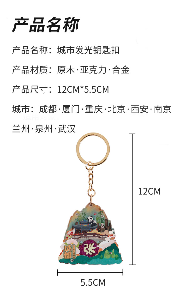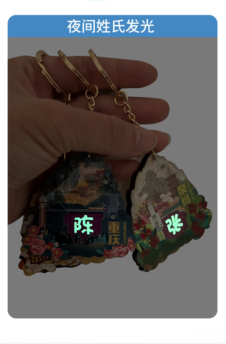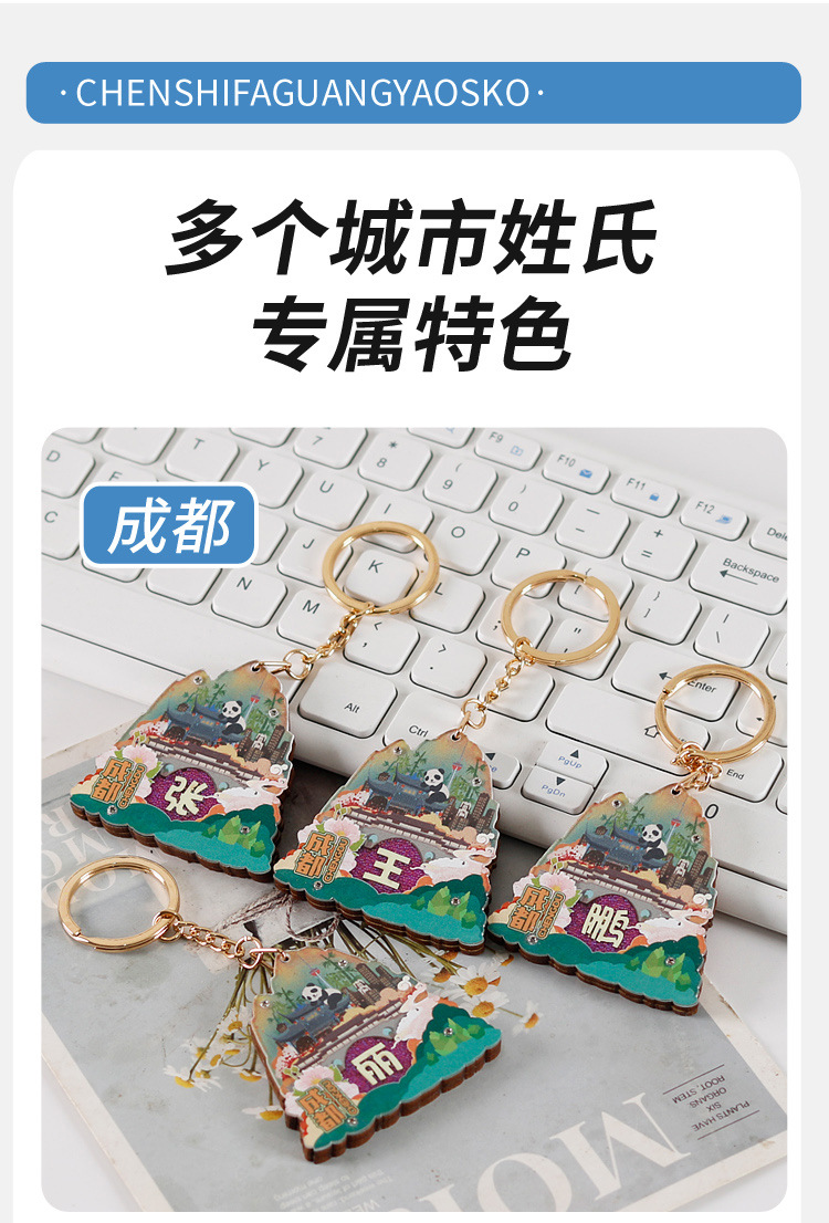 定制木质夜光城市钥匙扣姓氏百家姓名字日期旅游纪念挂件文创礼物