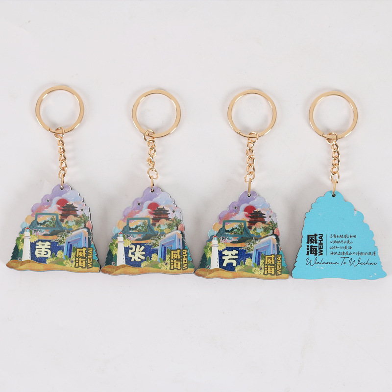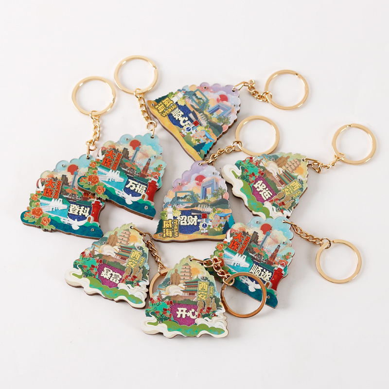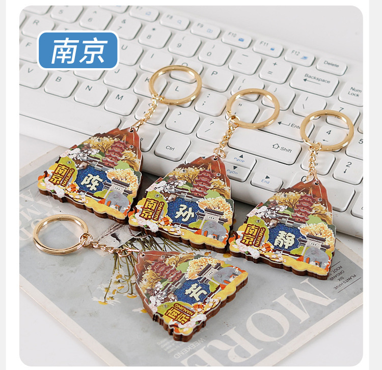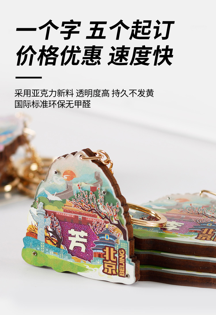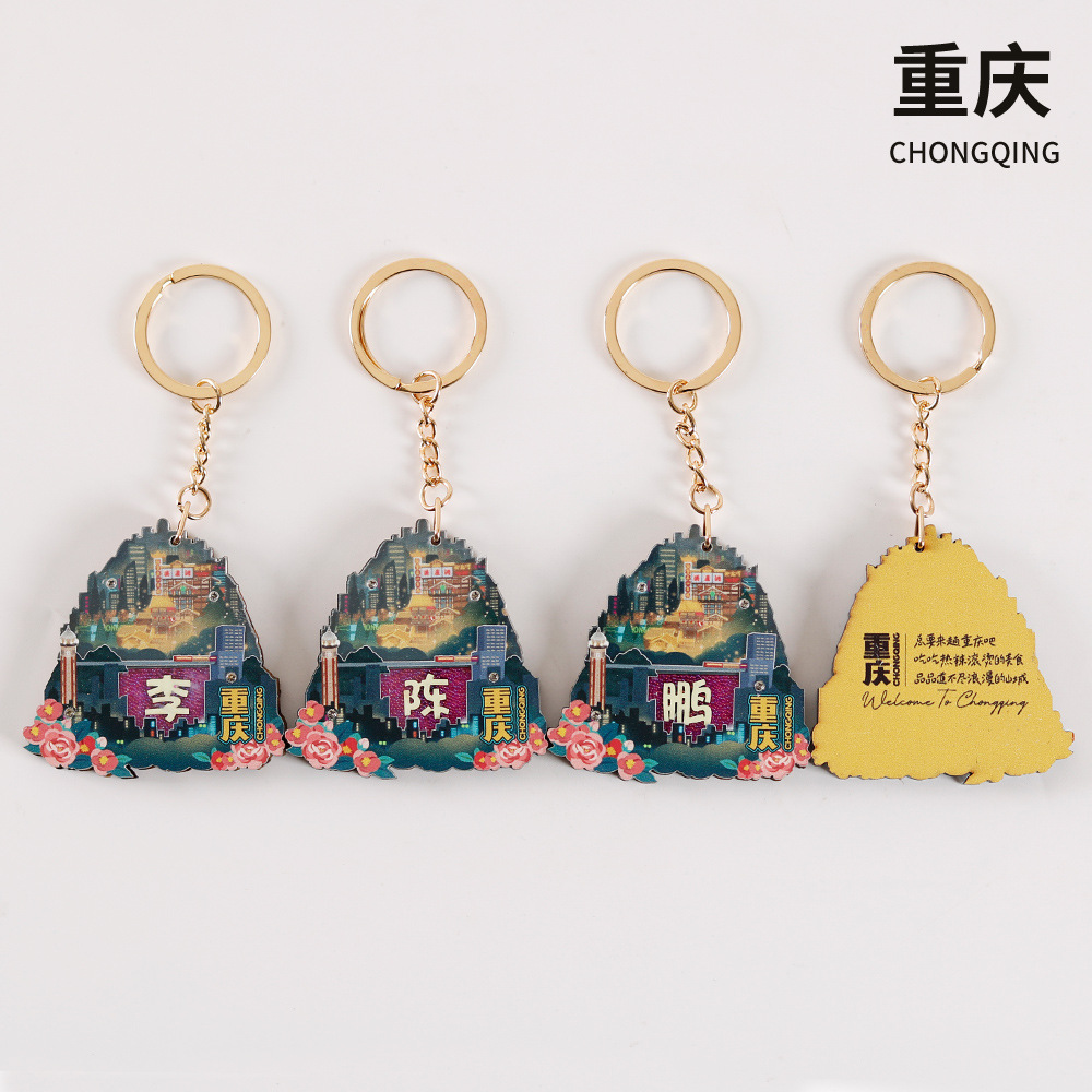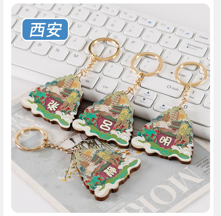 定制木质夜光城市钥匙扣姓氏百家姓名字日期旅游纪念挂件文创礼物