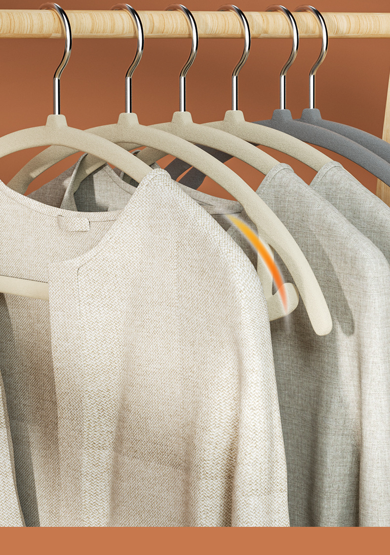 亿标秋冬季新款半圆植绒衣架整理师推荐家用收纳加粗防滑无痕衣架