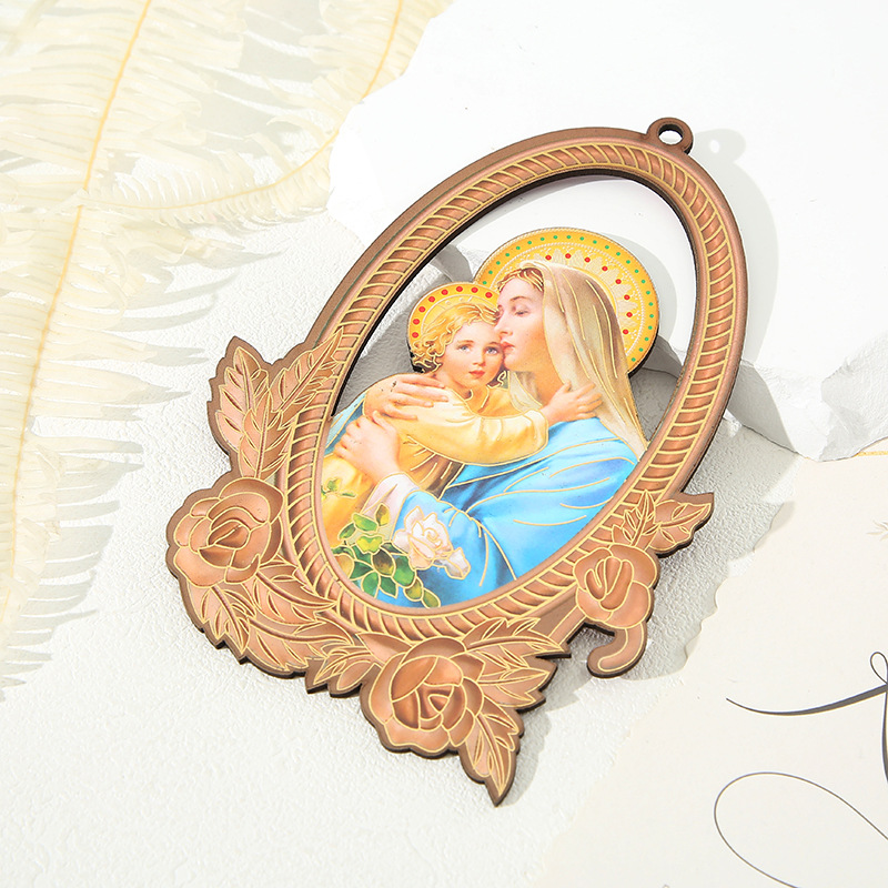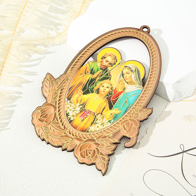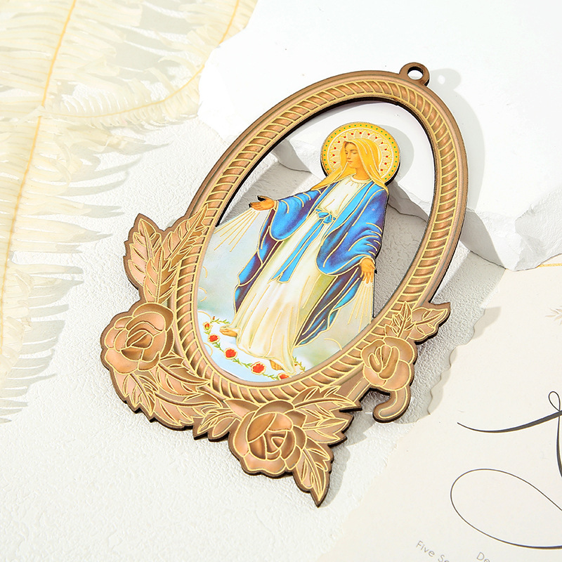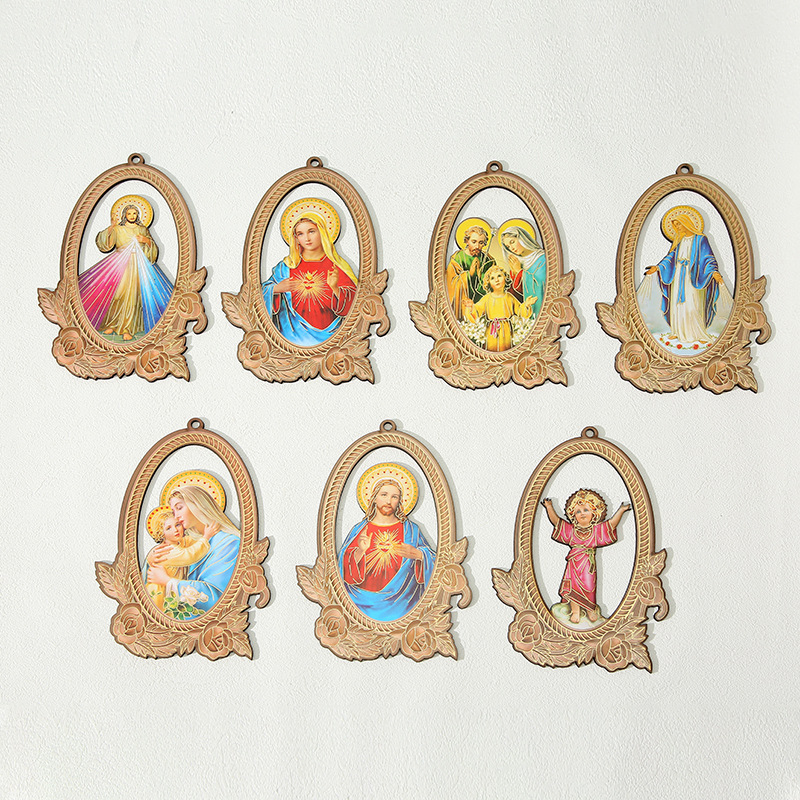 欧美跨境复古木制圣母圣像人物雕花装饰摆件居家装饰批发