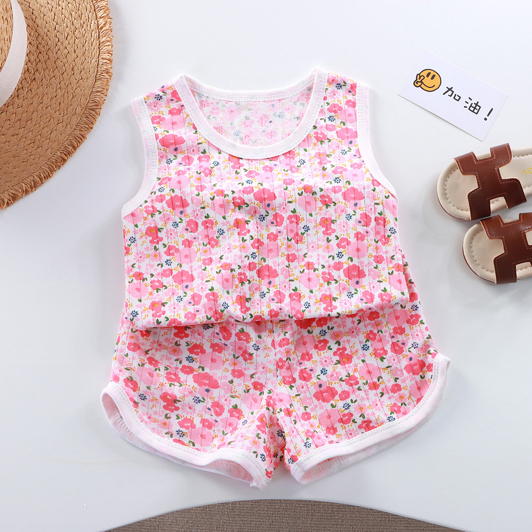 儿童背心套装纯棉无袖女童夏装韩版童装新款夏季男童两件套批发