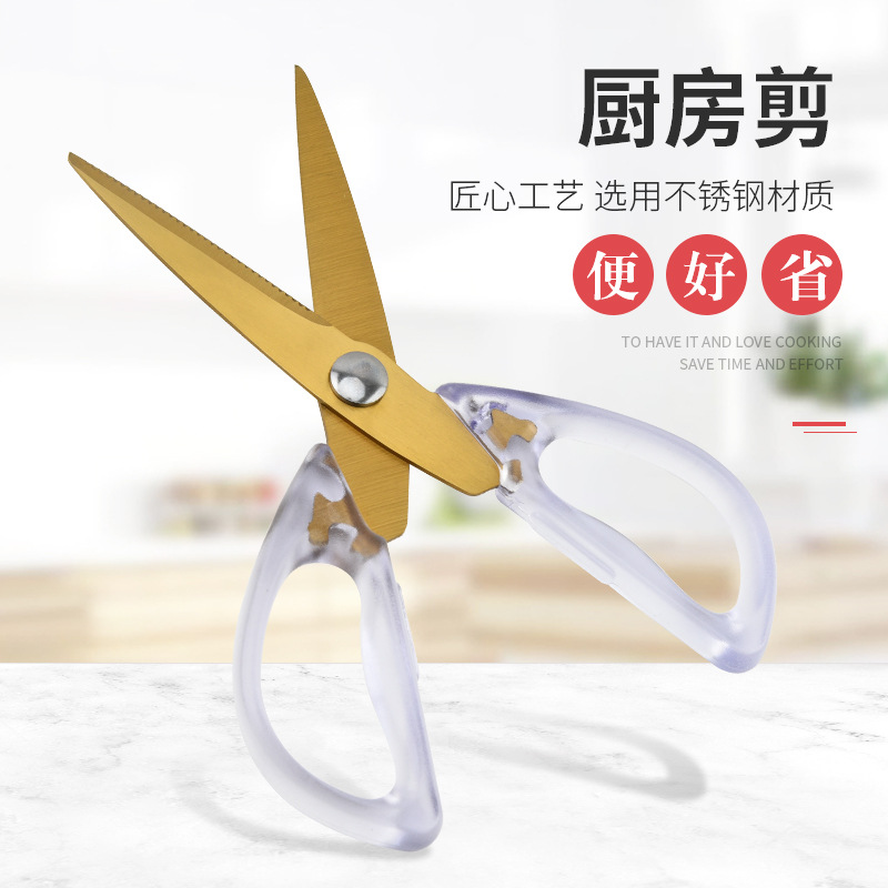 不锈钢厨房剪刀透明手柄剖鱼剪蔬菜辅食剪刀家用烤肉鸡骨剪刀批发