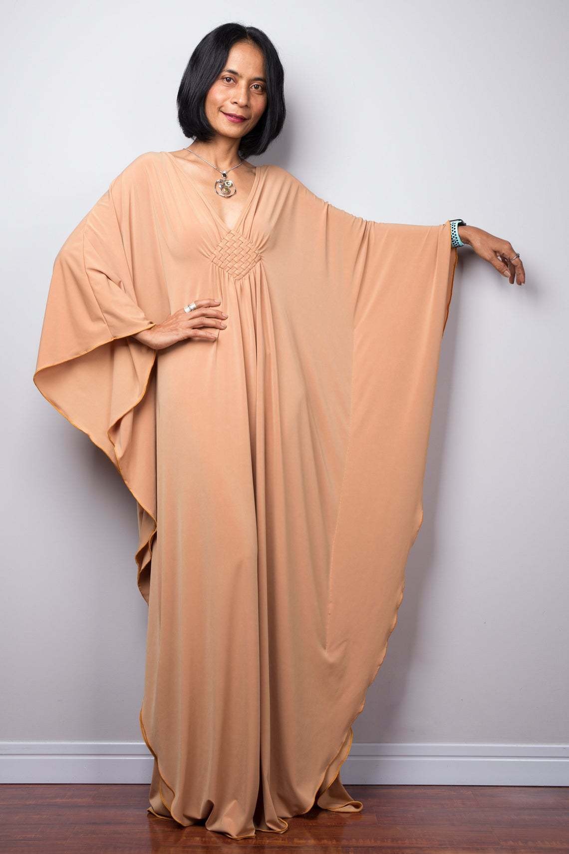 单色编织沙滩罩衫大码度假长袍蝙蝠袖比基尼防晒衫连衣裙亚马逊
