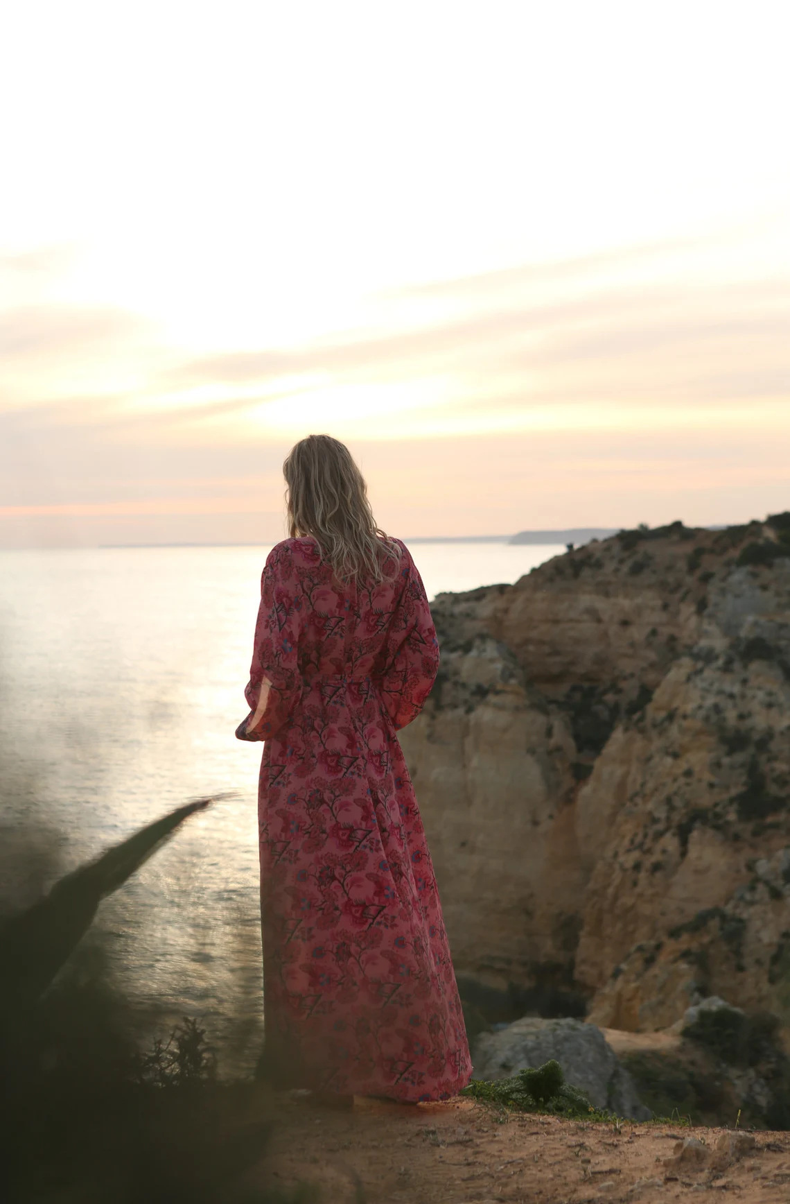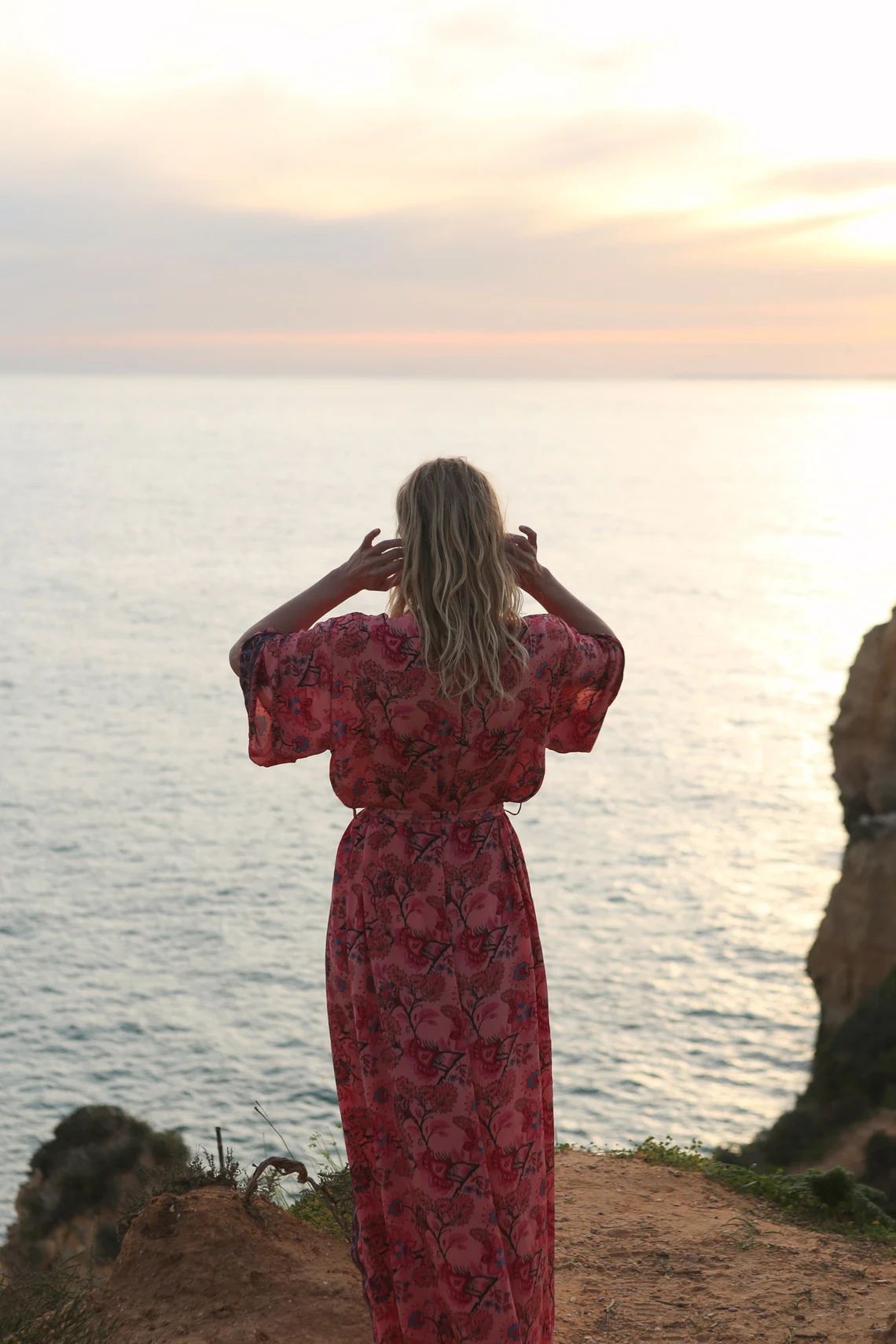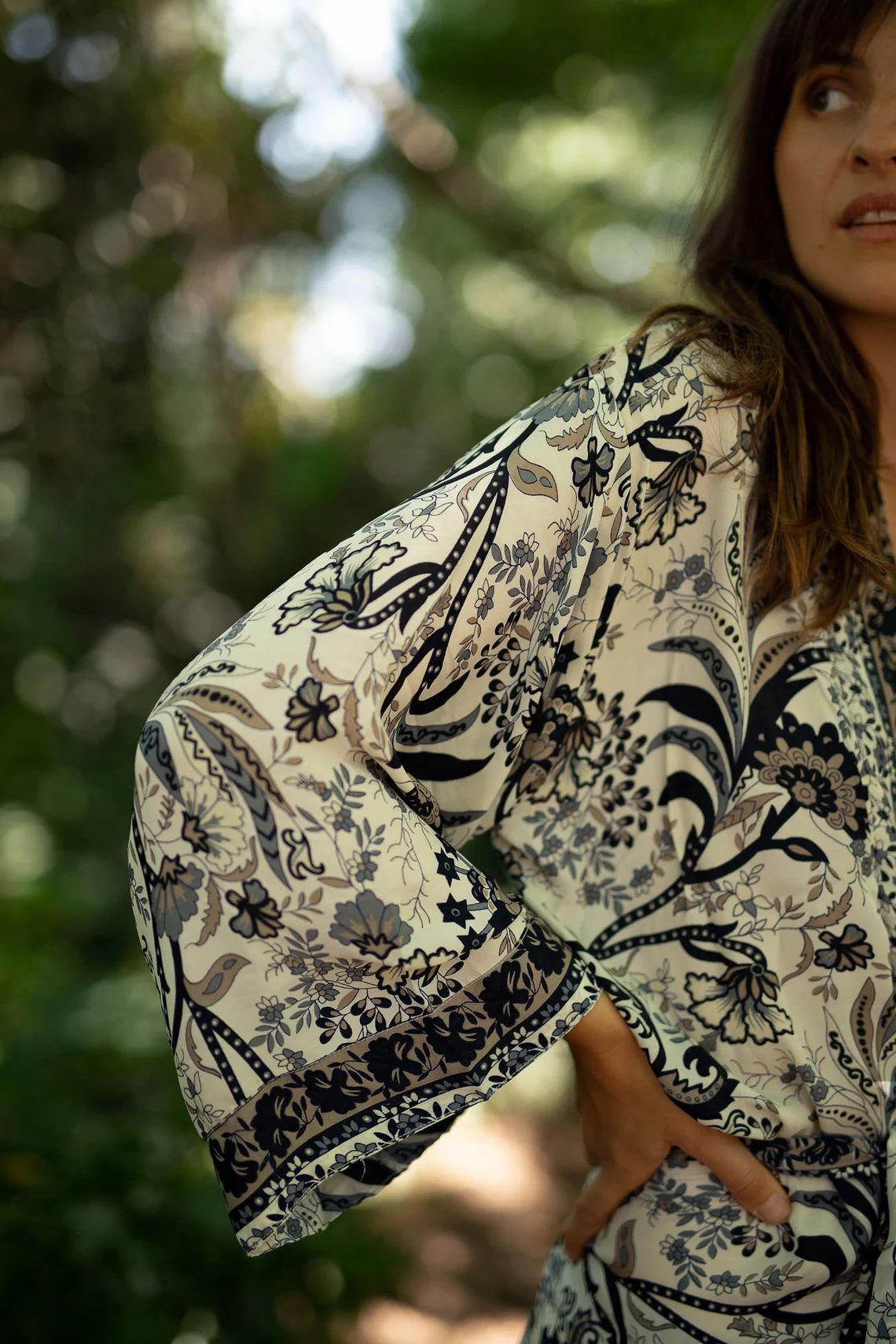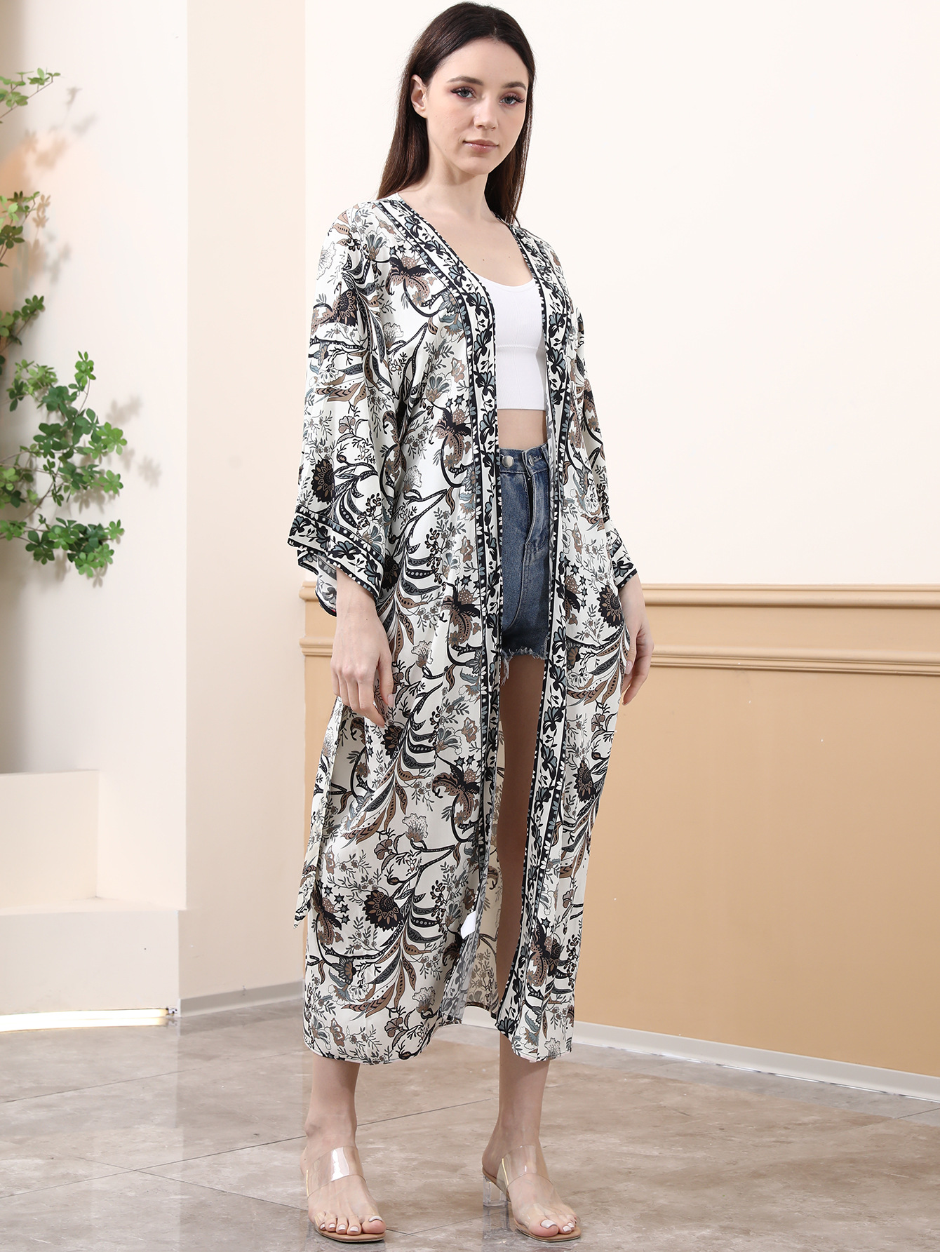 欧美度假KIMONO沙滩罩衫人棉印花防晒开衫比基尼外罩衫跨境亚马逊