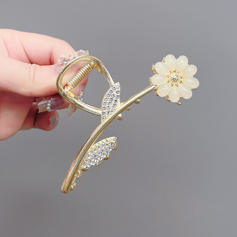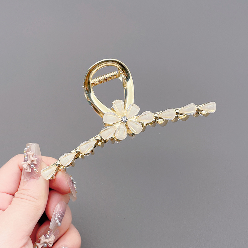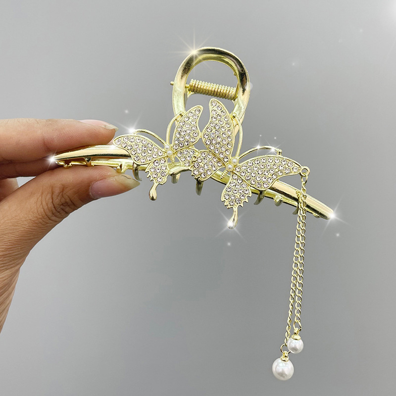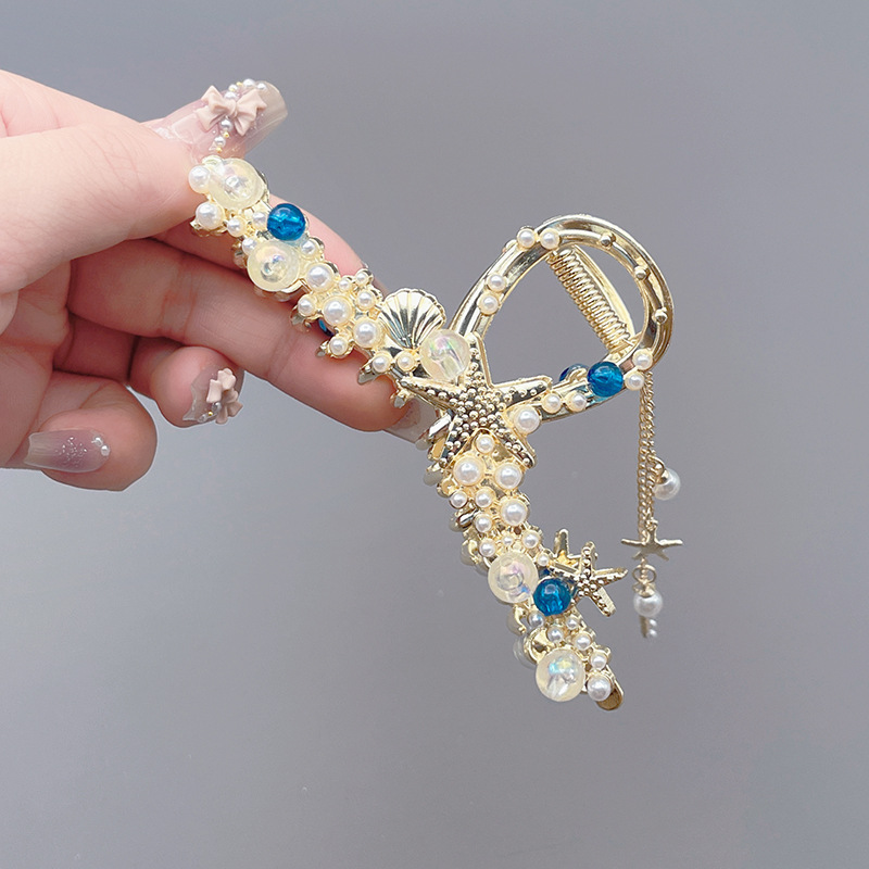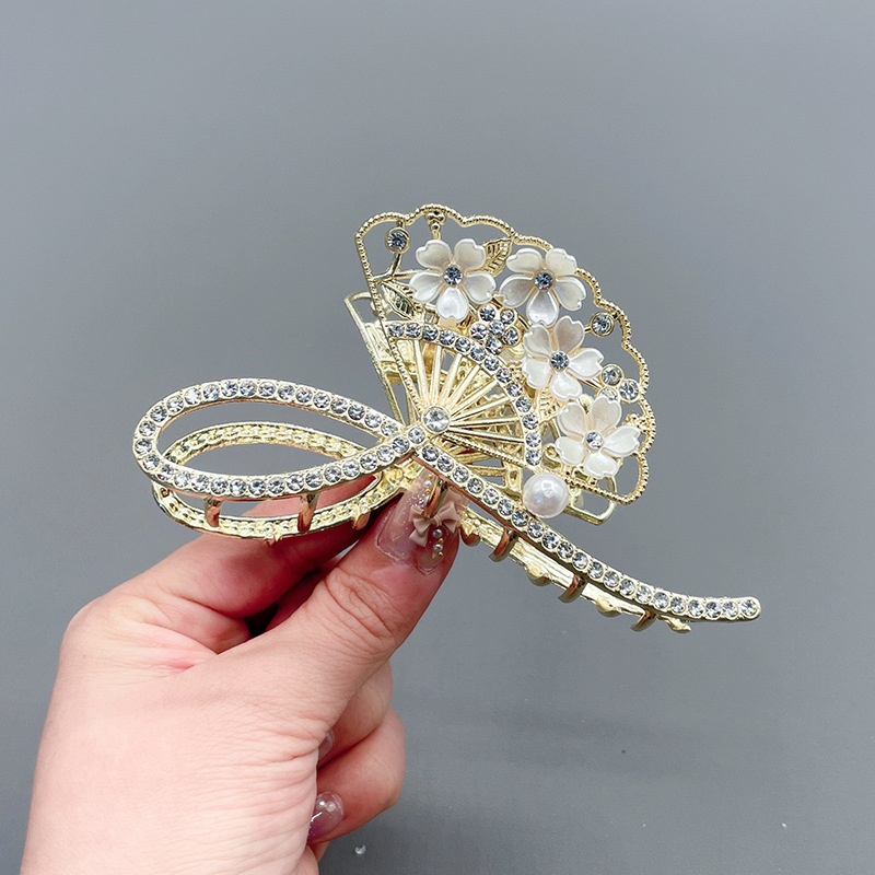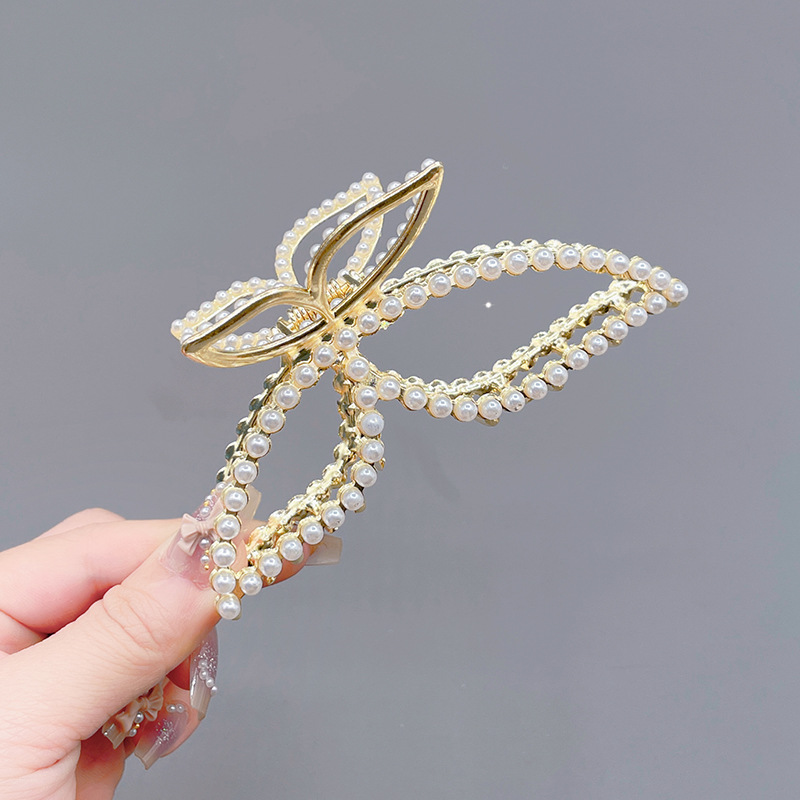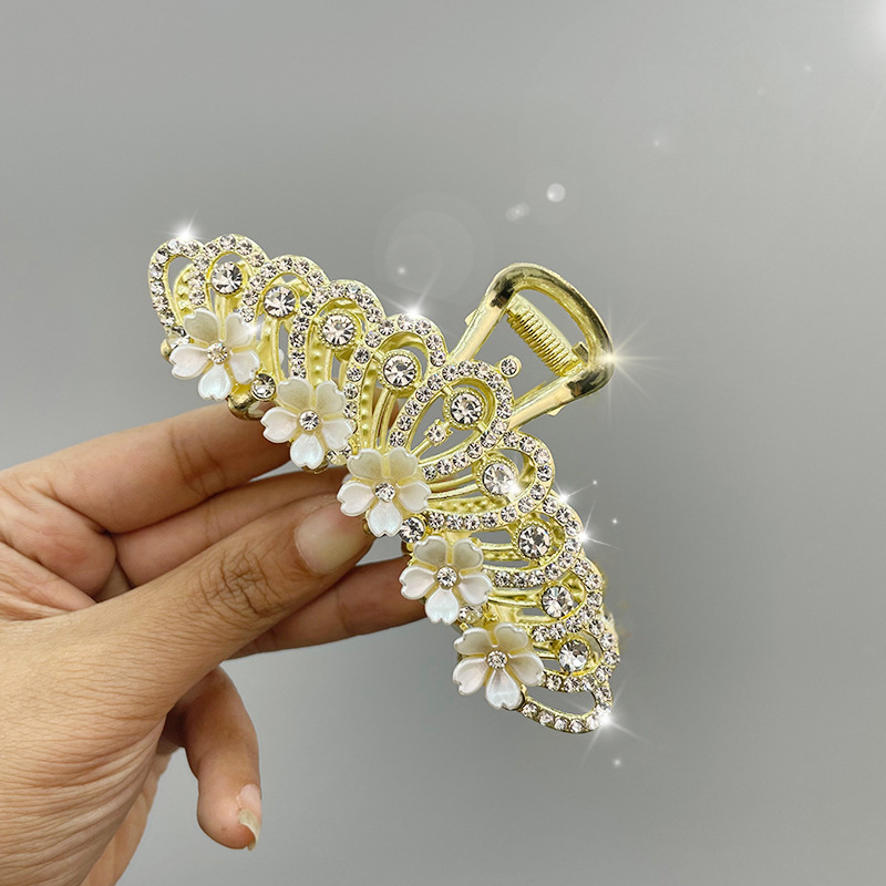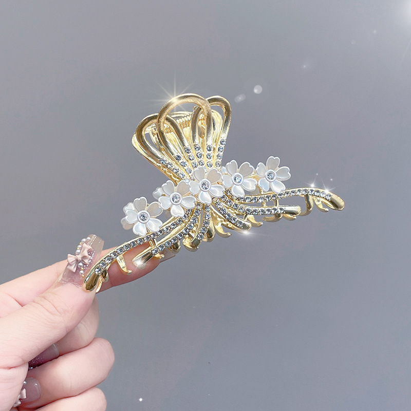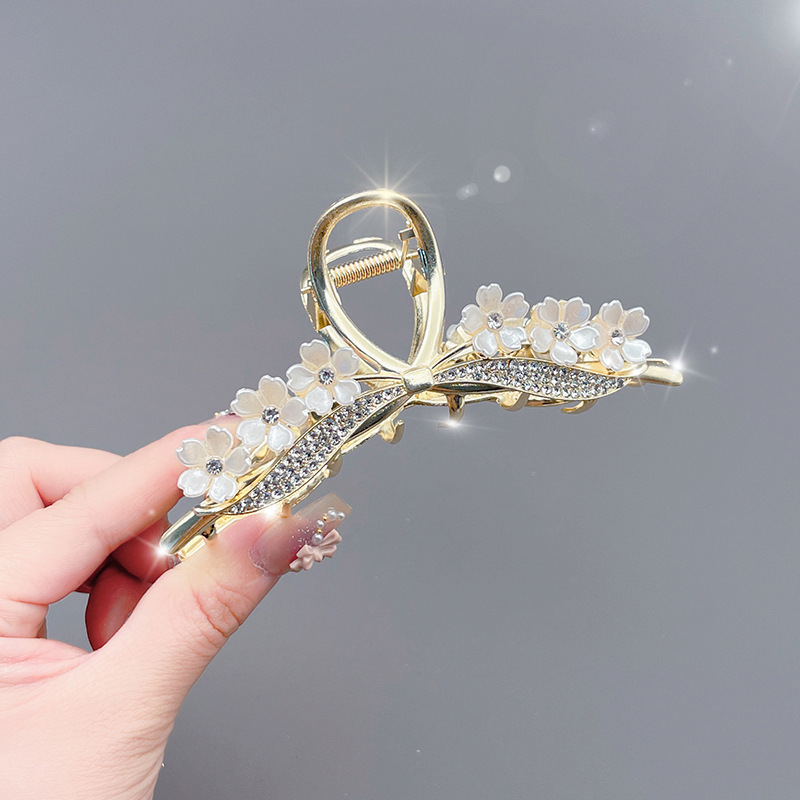 珍珠水钻铃兰花金属大号抓夹珍珠流苏盘发麦穗发夹气质盘发鲨鱼夹