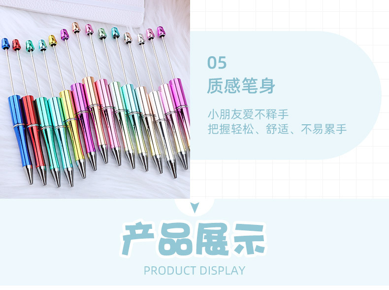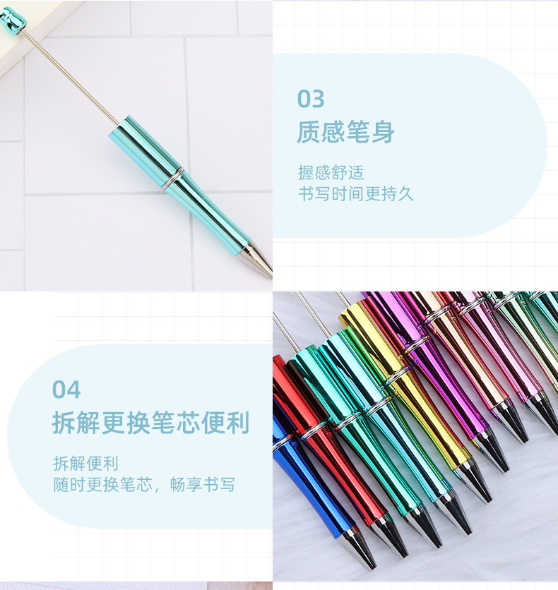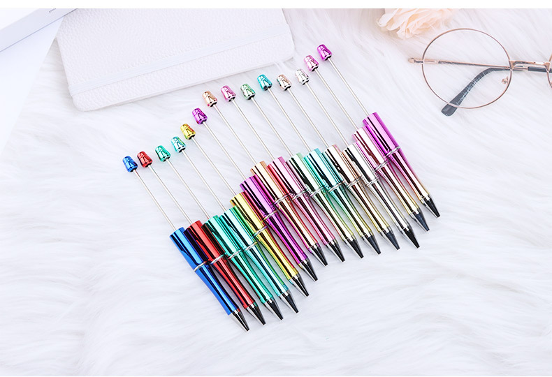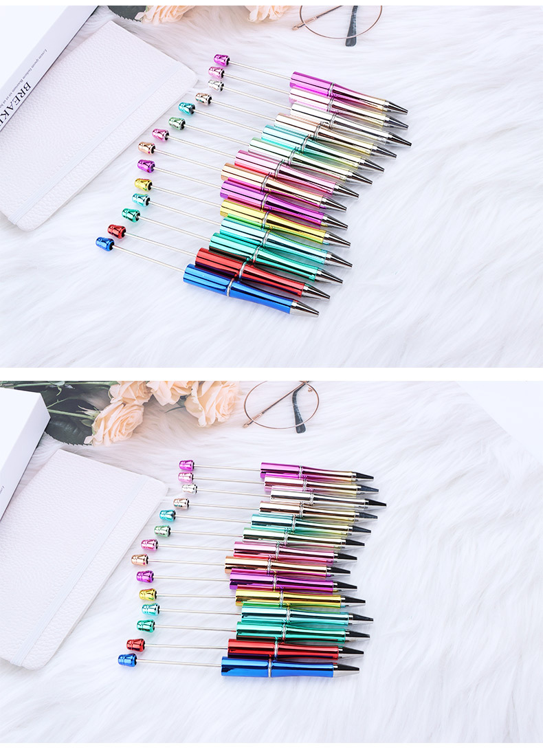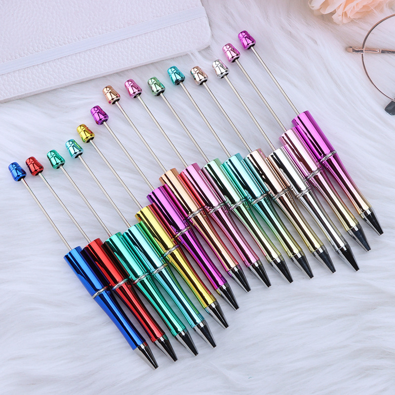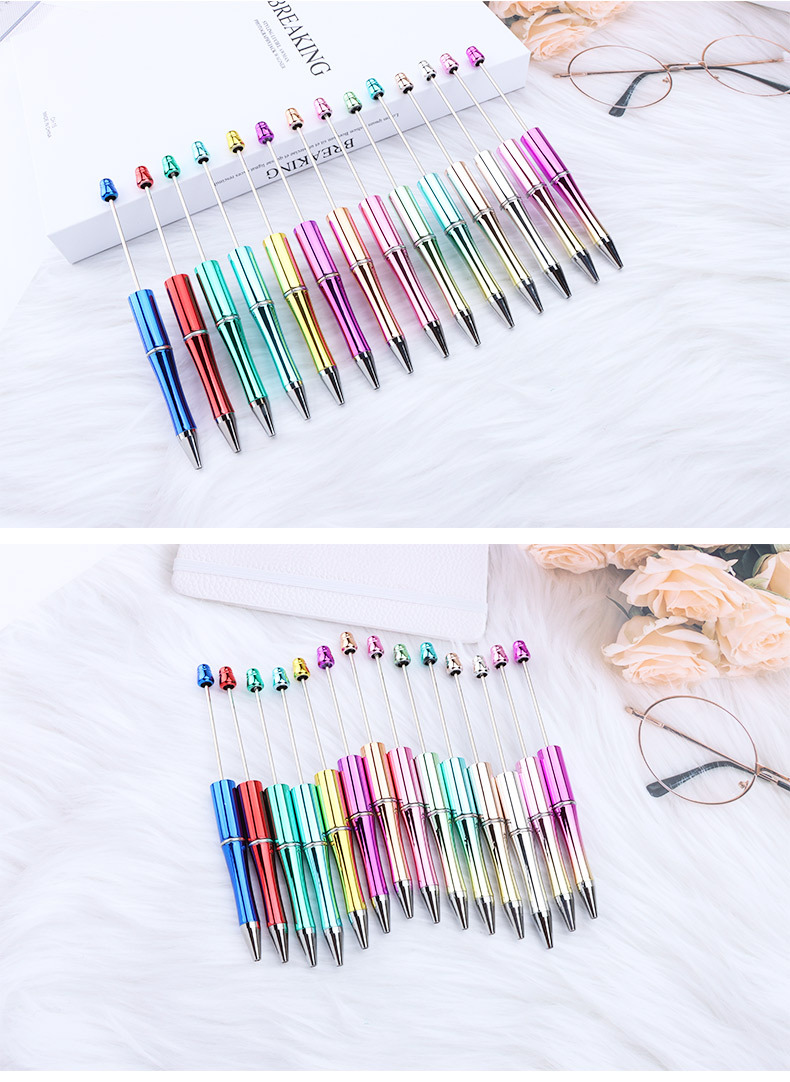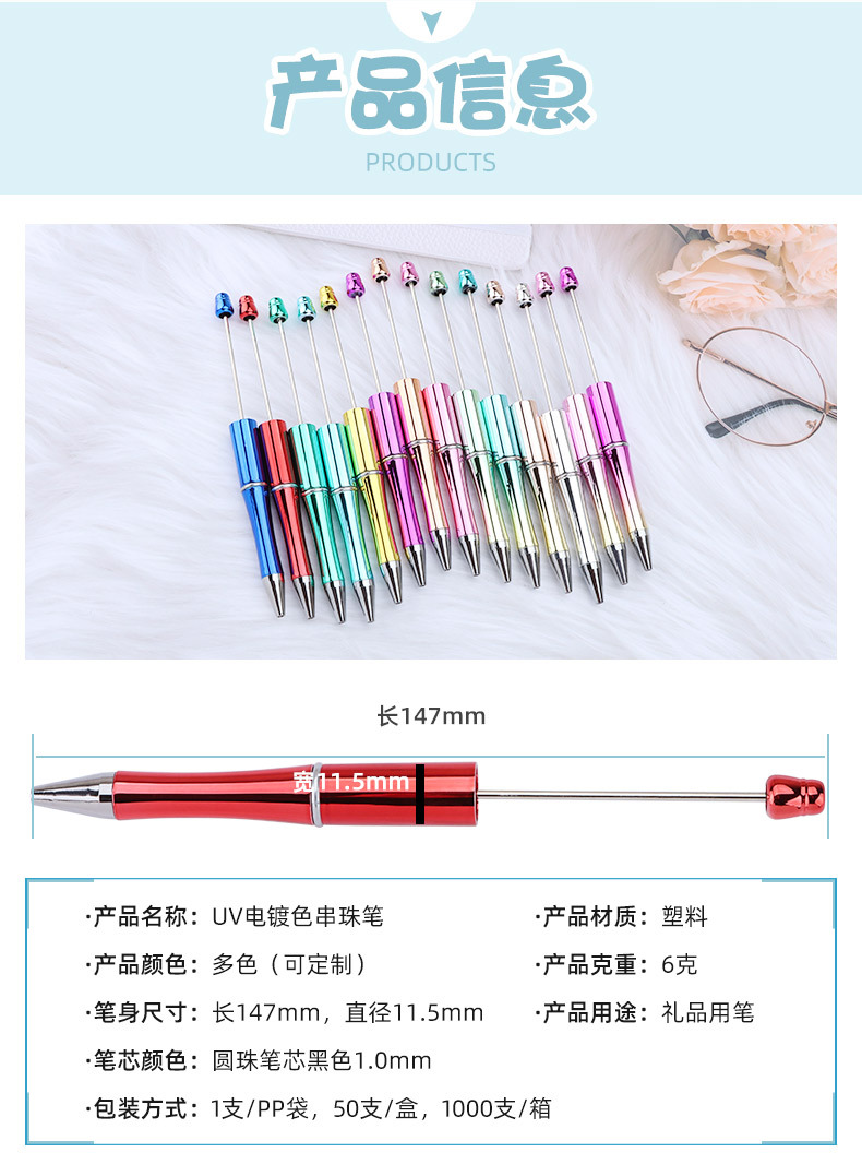 DIY串珠笔跨境爆款UV电镀塑料串珠圆珠笔电镀笔杆渐变色现货批发
