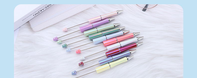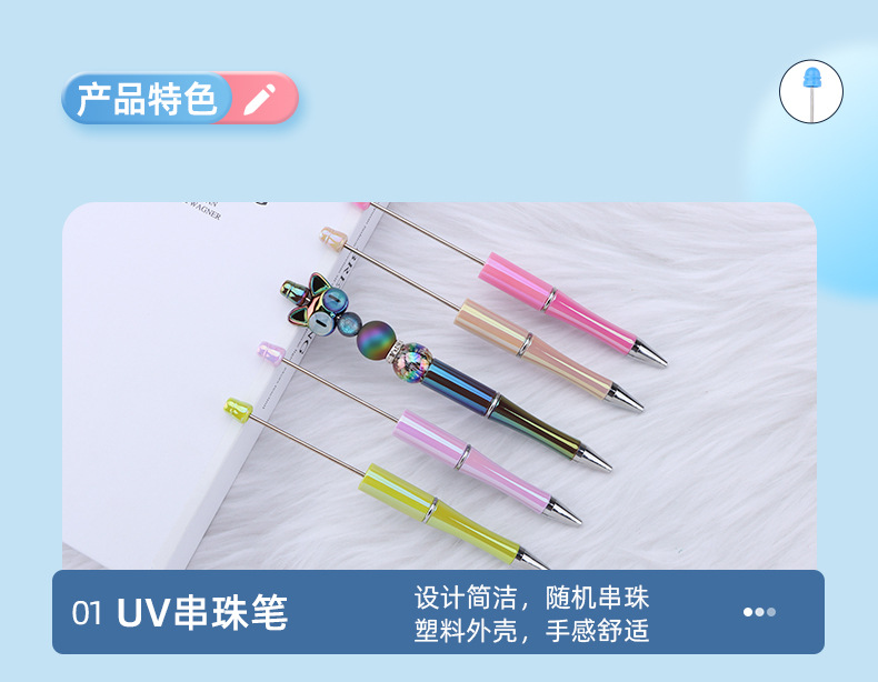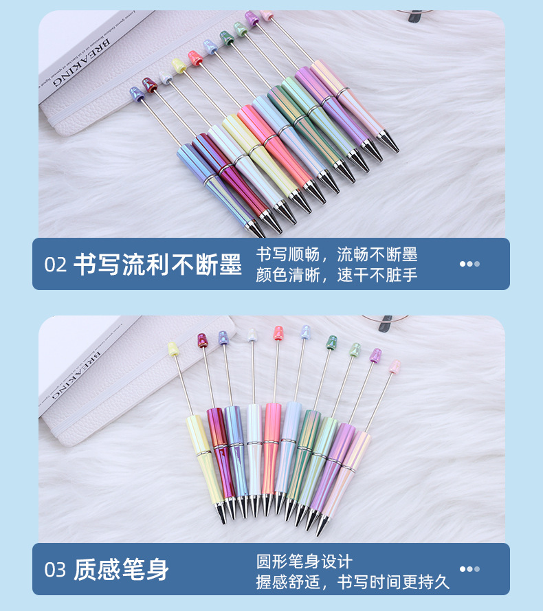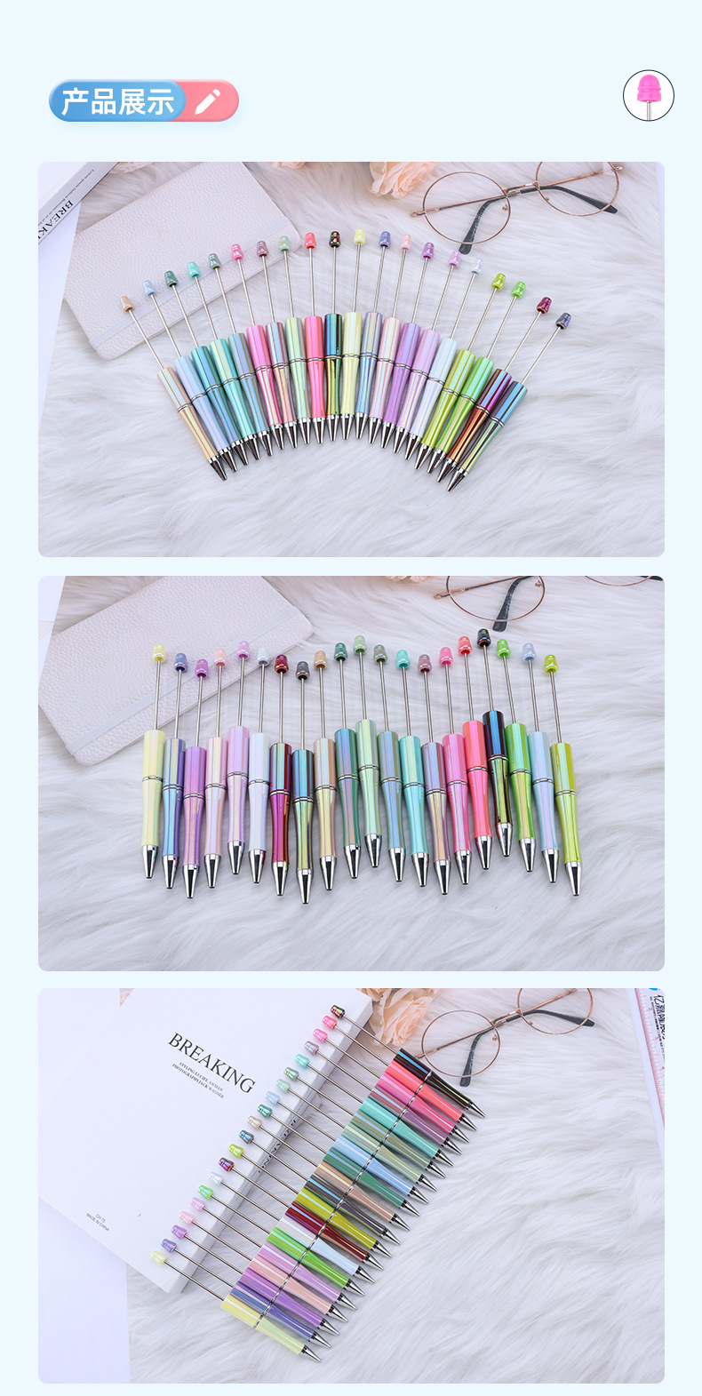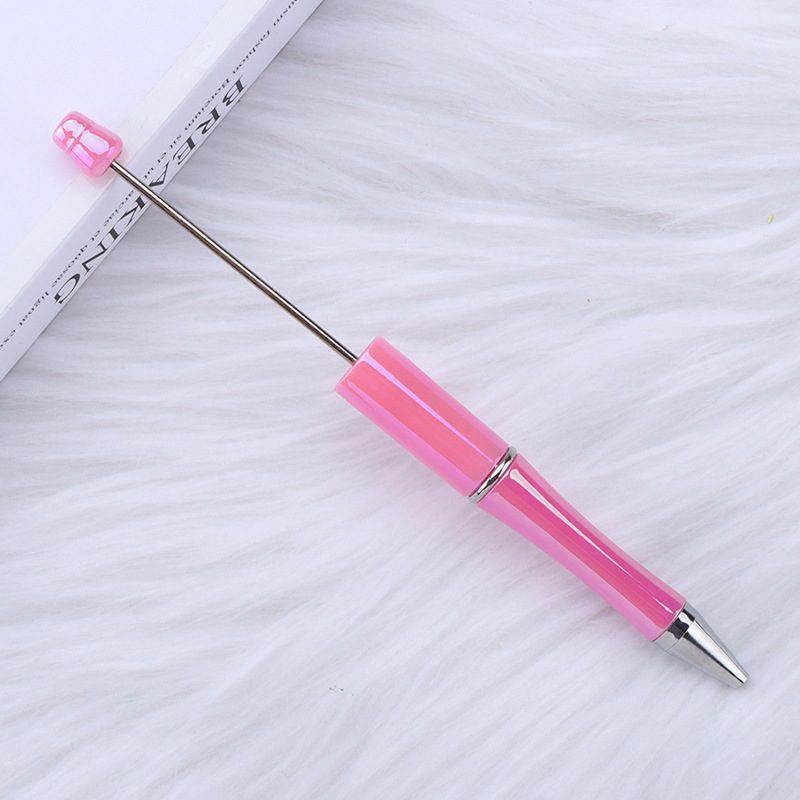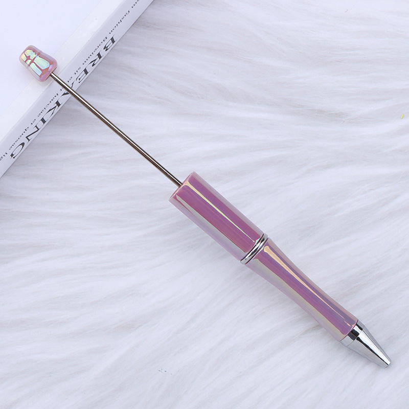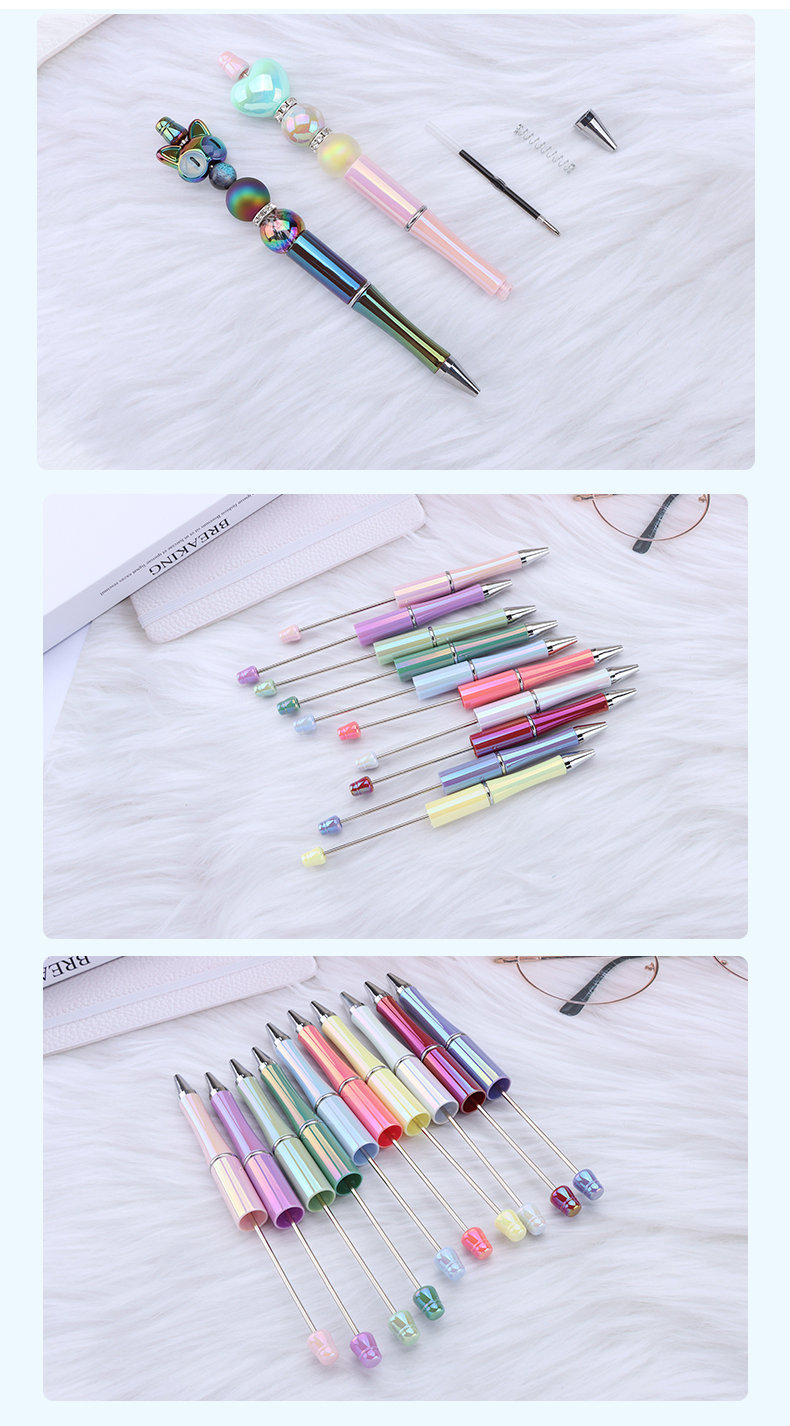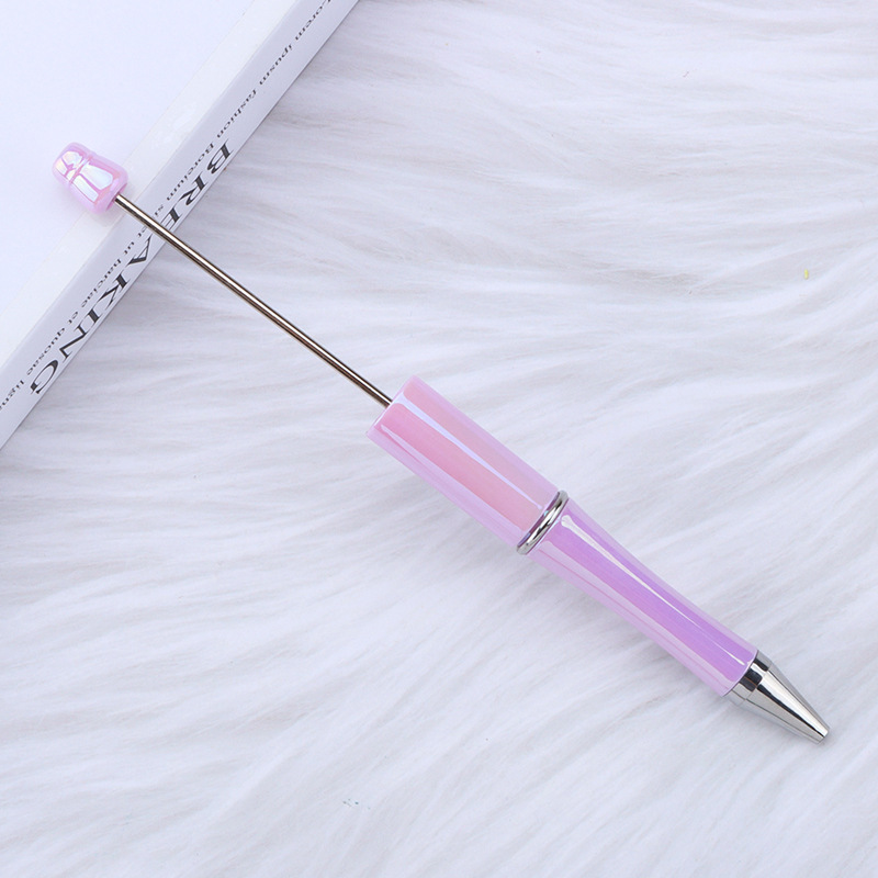 现货批发DIY七彩串珠笔 UV炫彩串珠笔圆珠笔电镀笔杆渐变色串珠笔