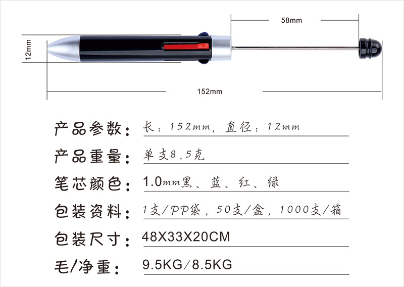 DIY创意迷你商务四色串珠笔现货速发可爱益智多色饰品串珠圆珠笔